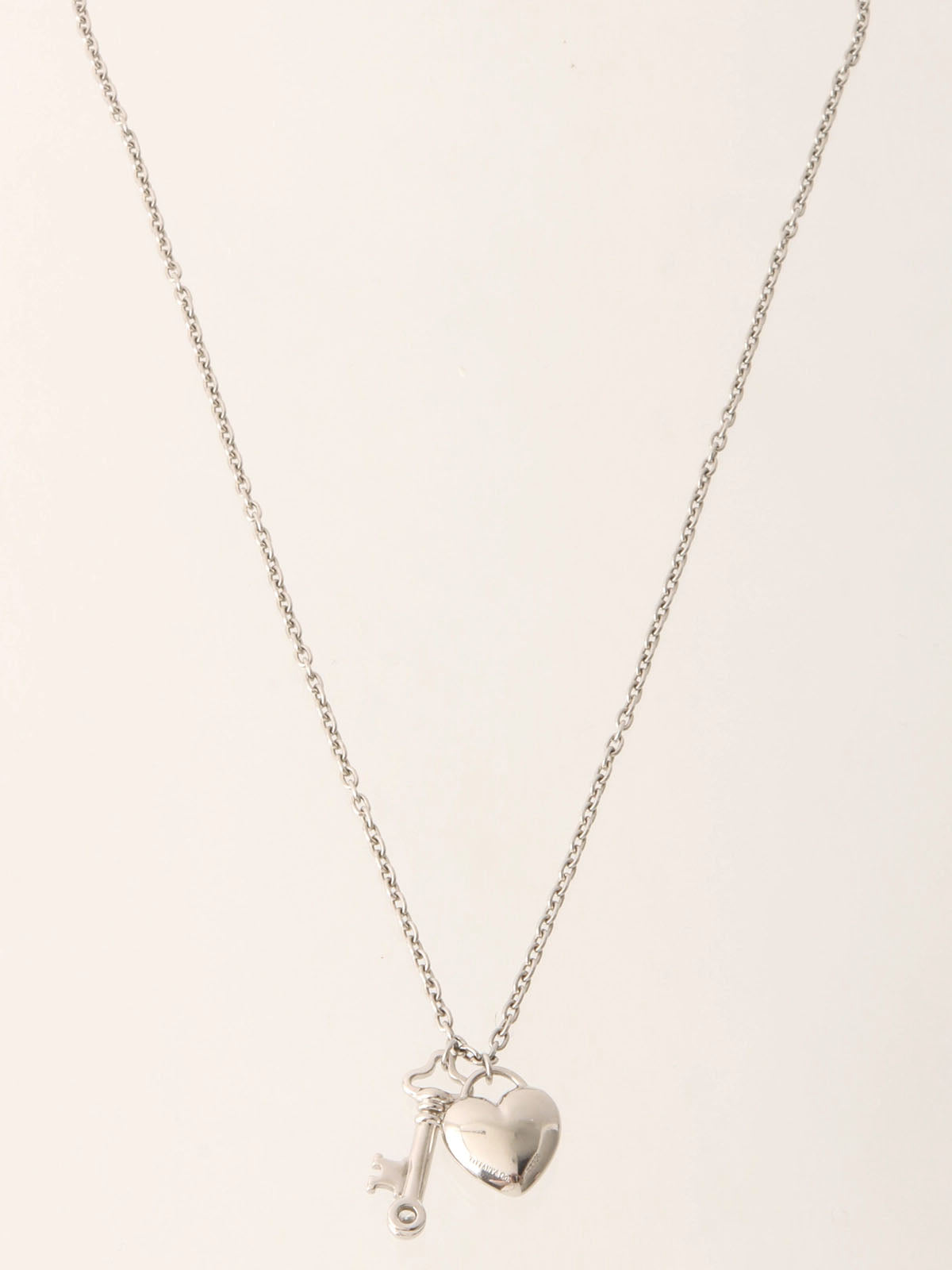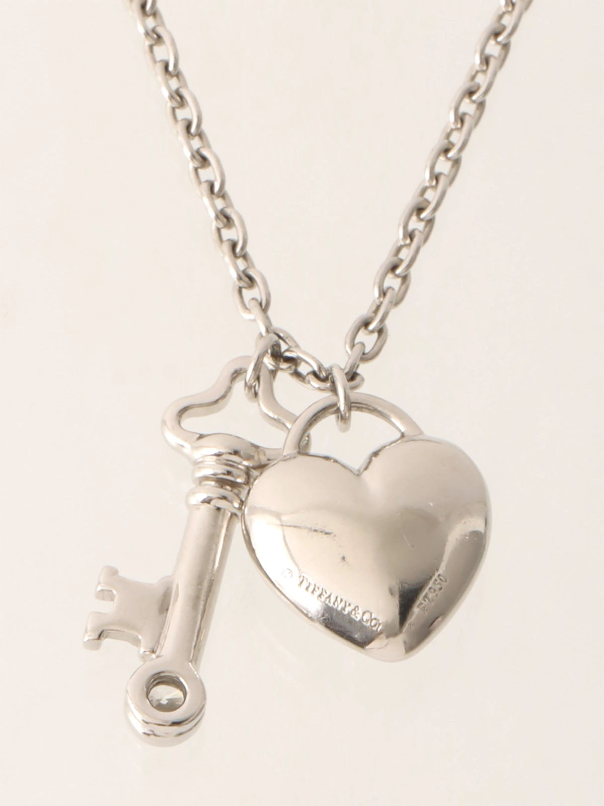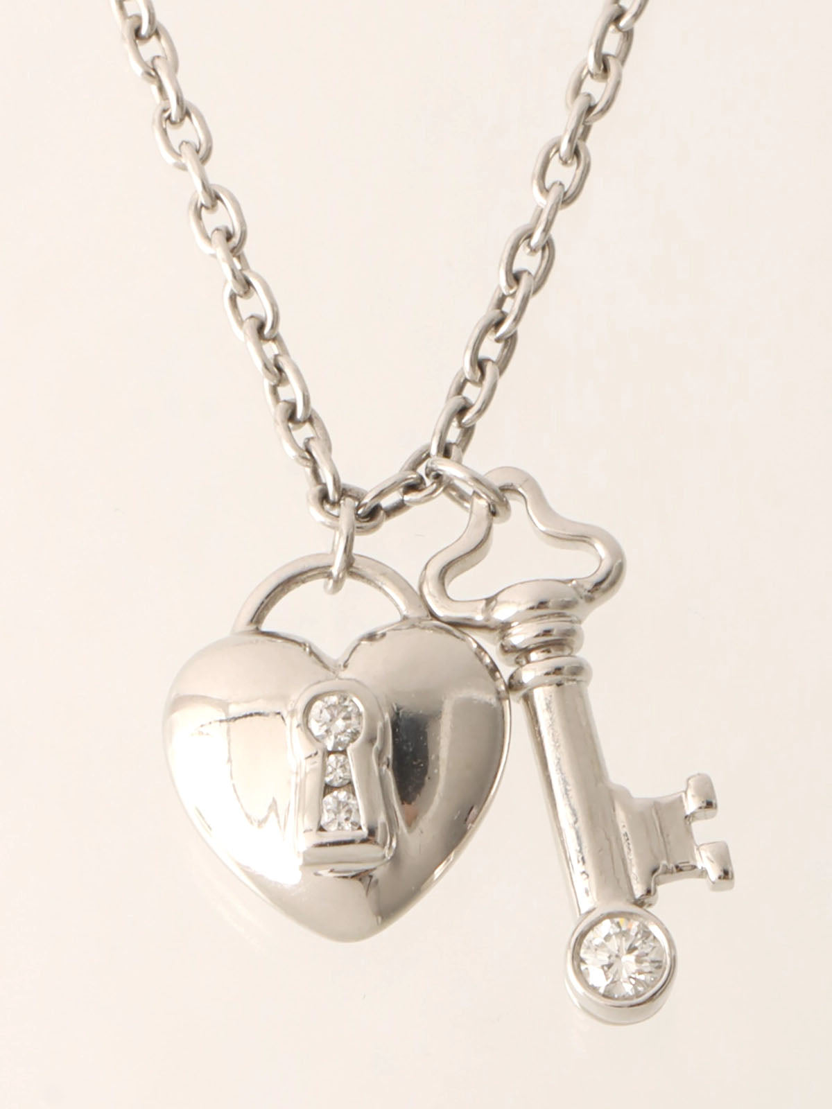 プラチナダイヤモンドハートロックキーネックレス シルバー