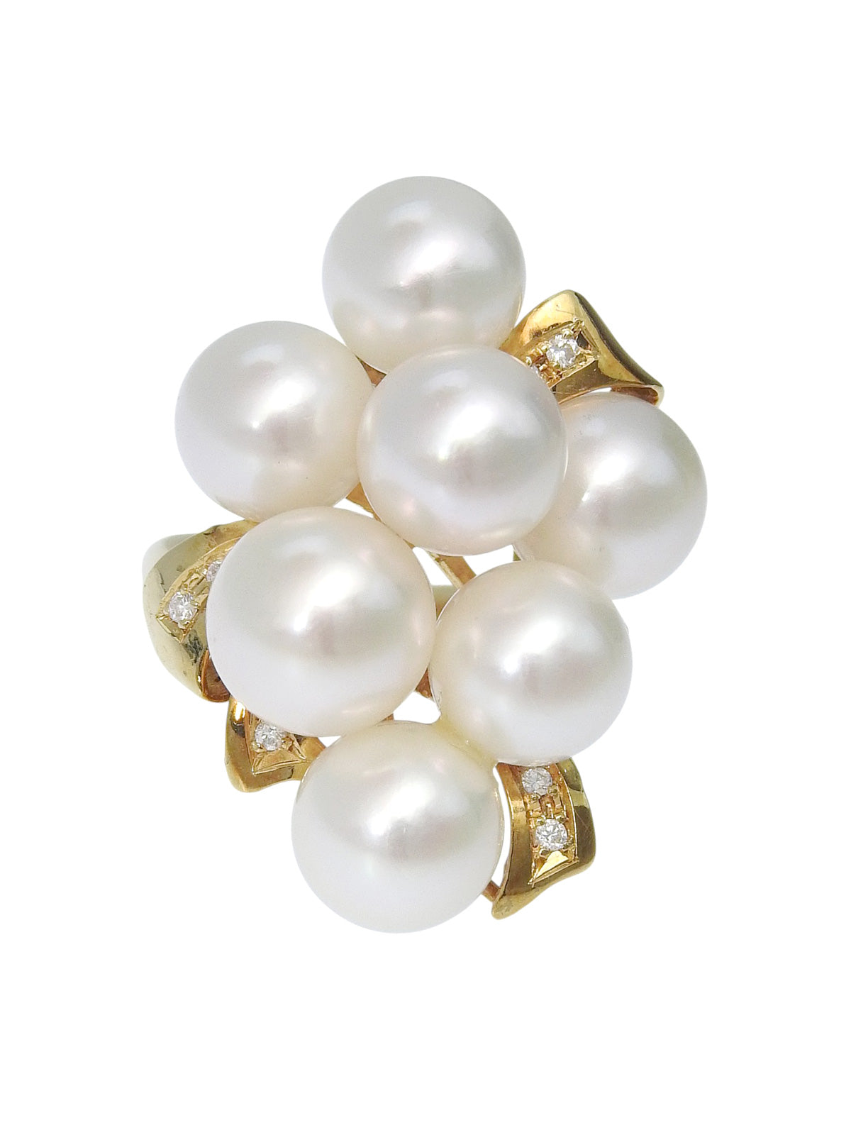 18Kアコヤパールダイヤモンデザインリング ゴールド