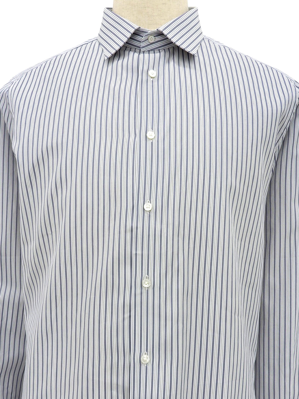 ストライプパターンロゴボタンシャツ ホワイト/ブルー