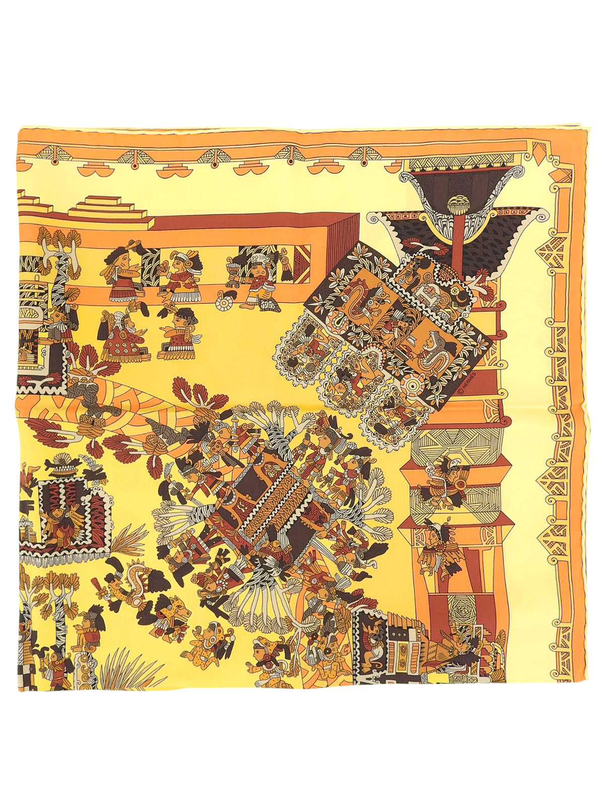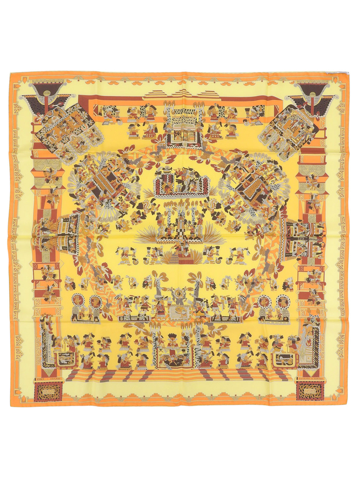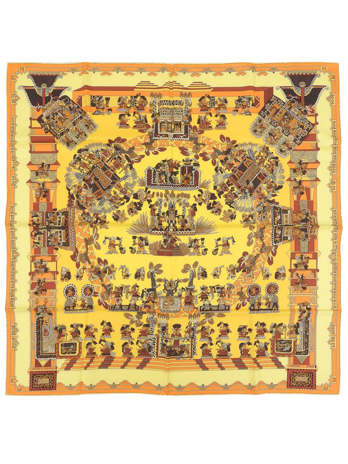 カレ90 Astres Et Soleilsパターンスカーフ イエロー/マルチ