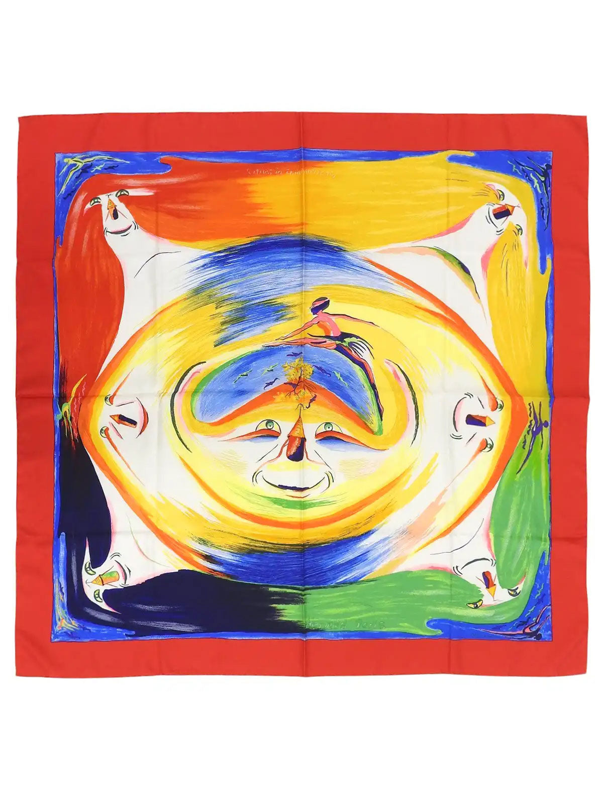 カレ90 Smiles In Third Millenaryパターンスカーフ レッド/マルチ