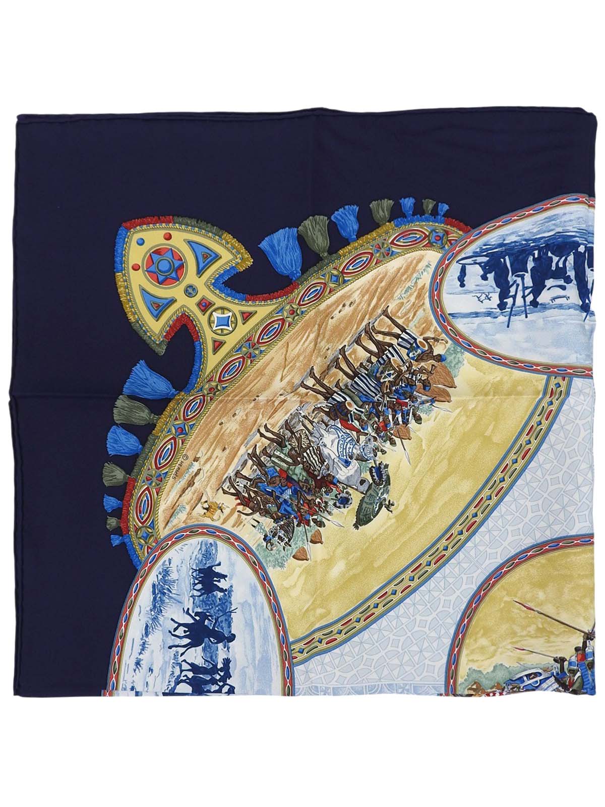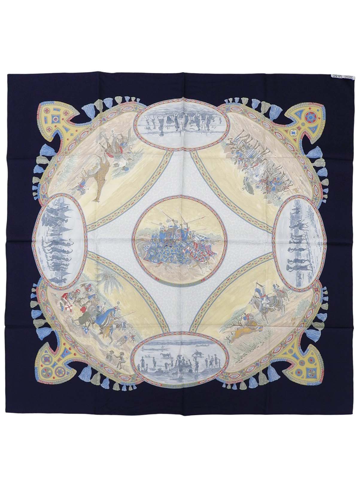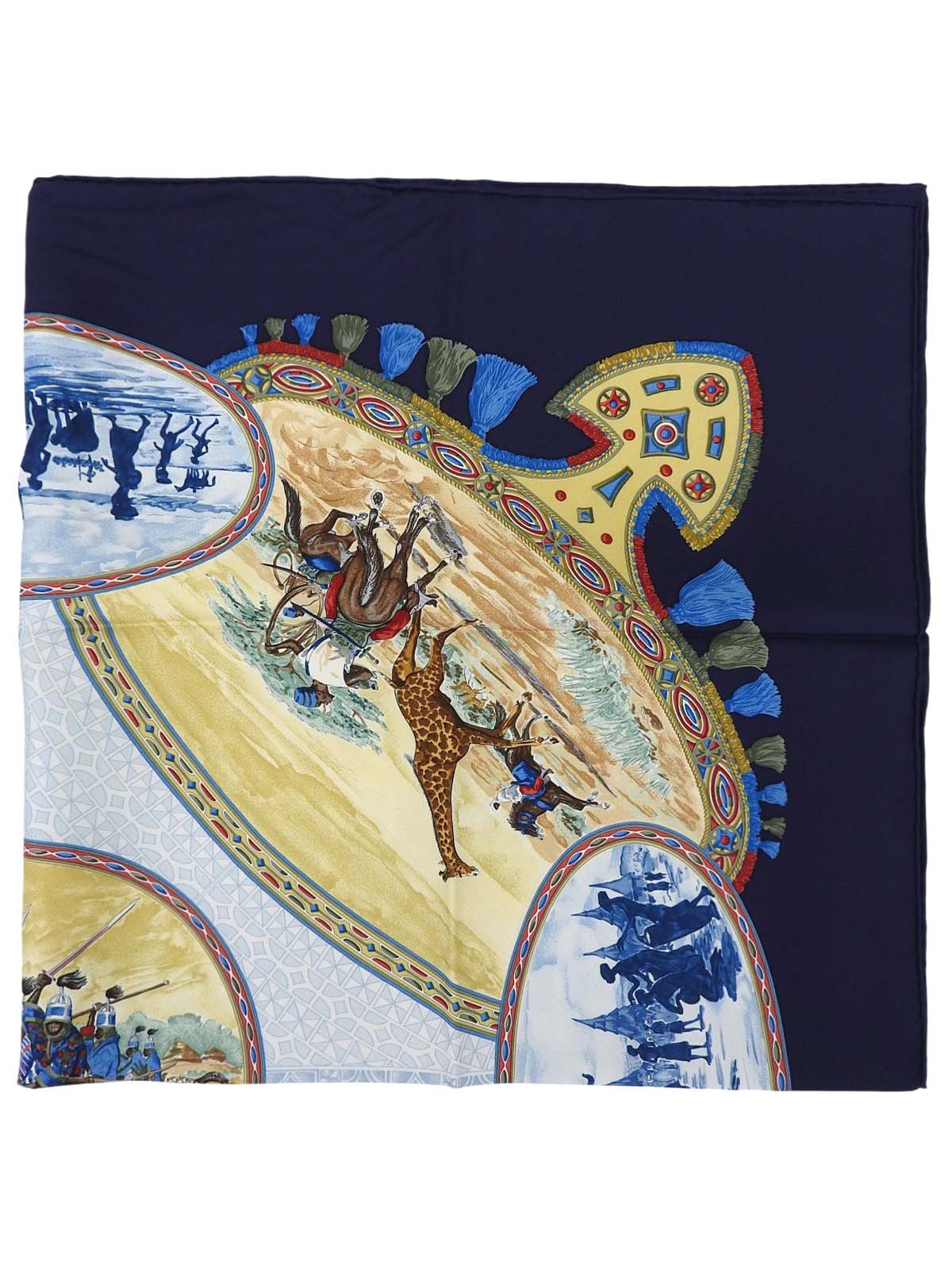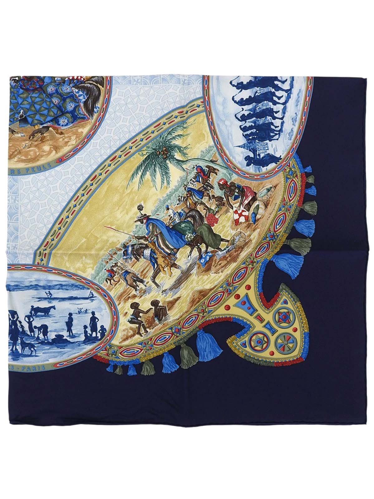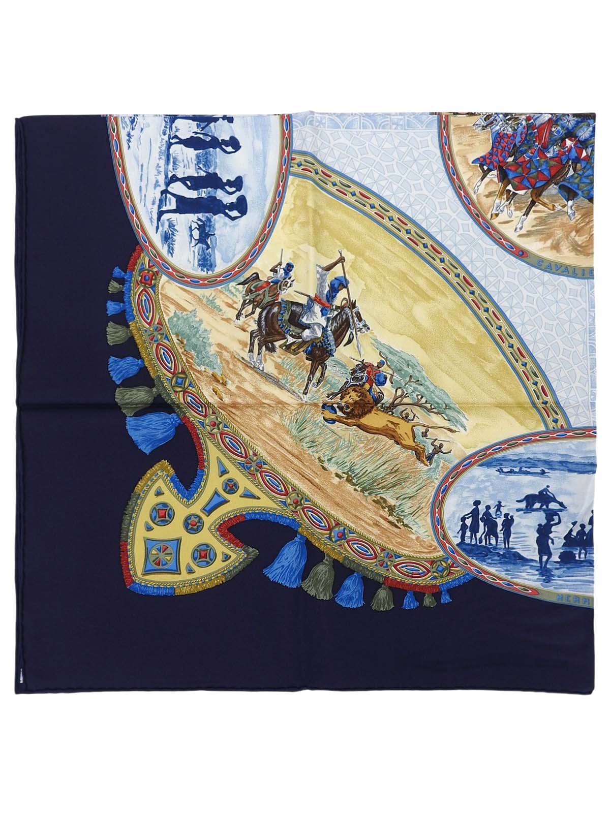 カレ90 cavaliers peulsパターンスカーフ ネイビー