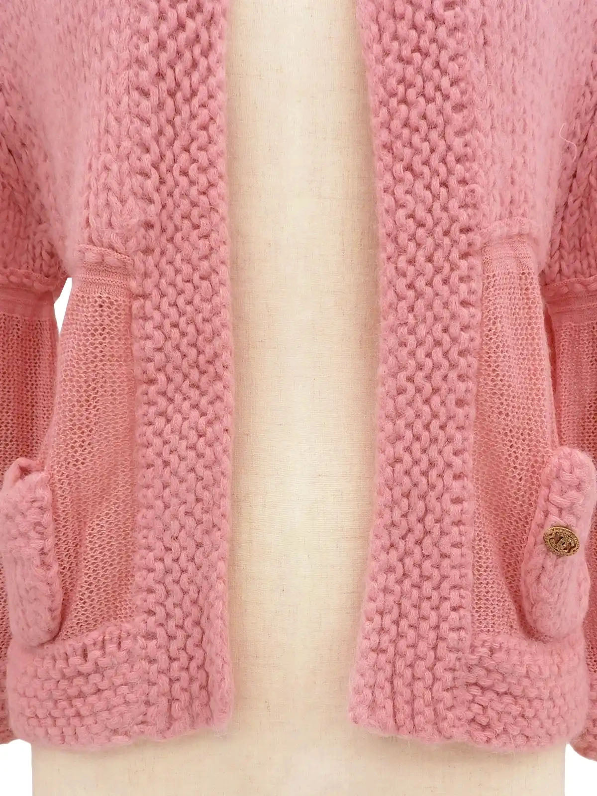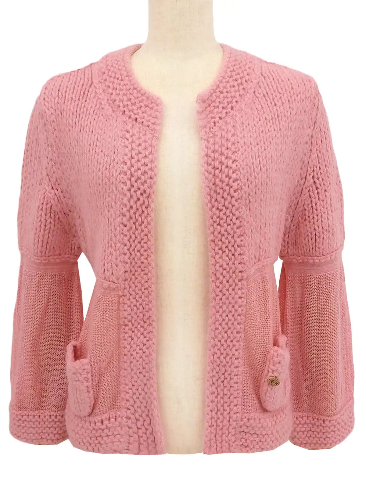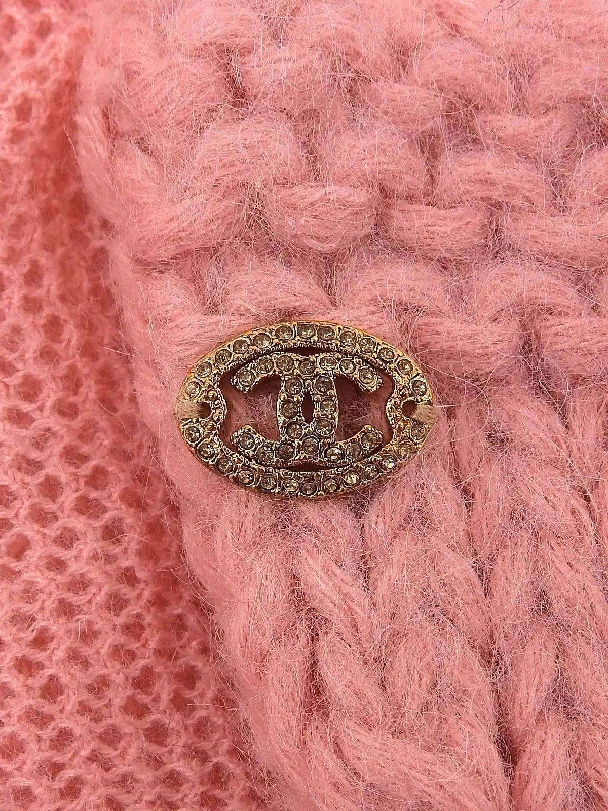 2007年製 アルパカラインストーンCCマークプレートニットカーディガン ピンク