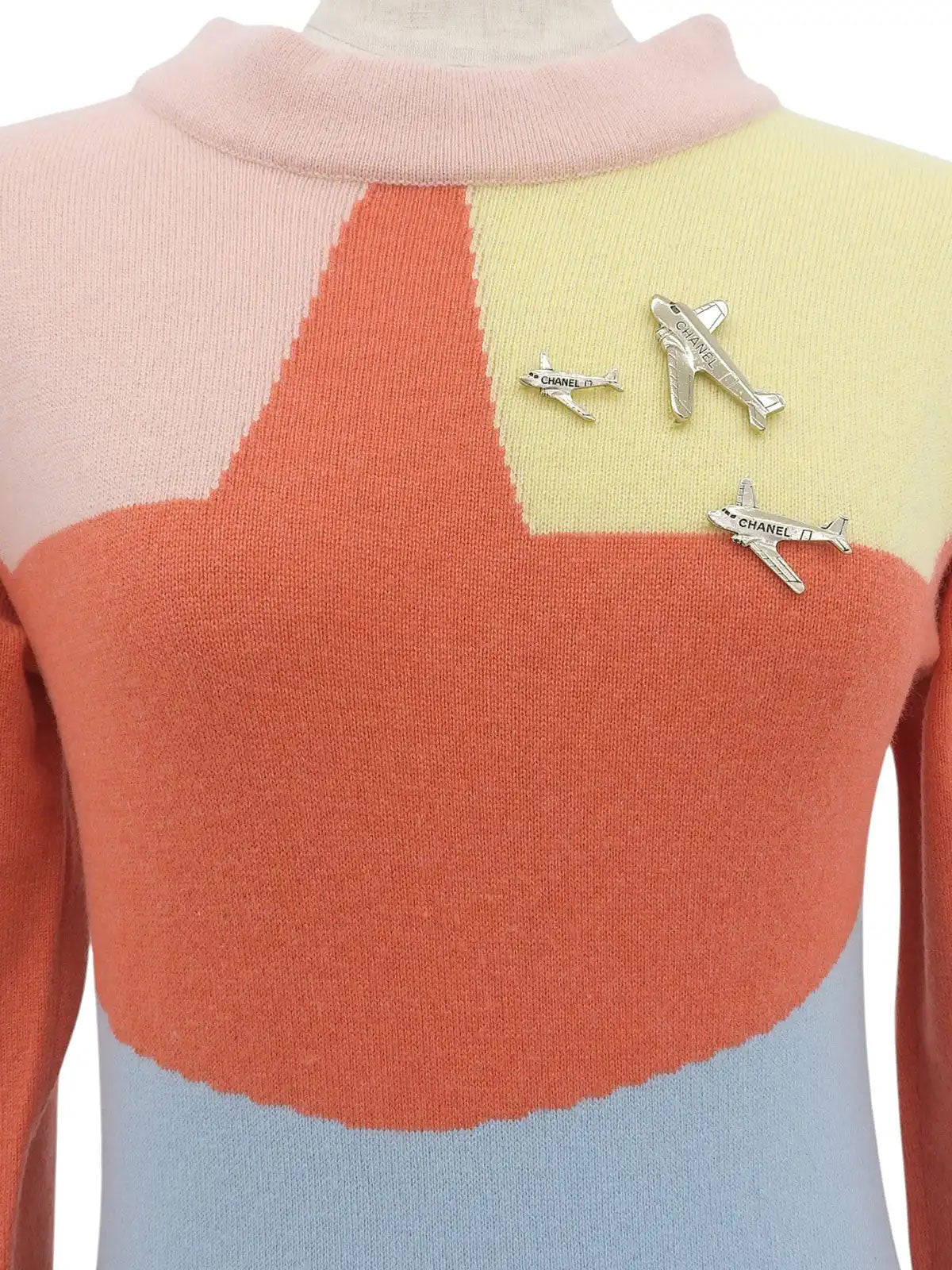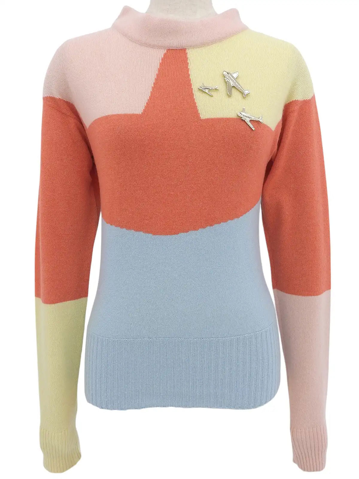 2008年製 カシミアカラーブロックエアプレーンチャームニット マルチ