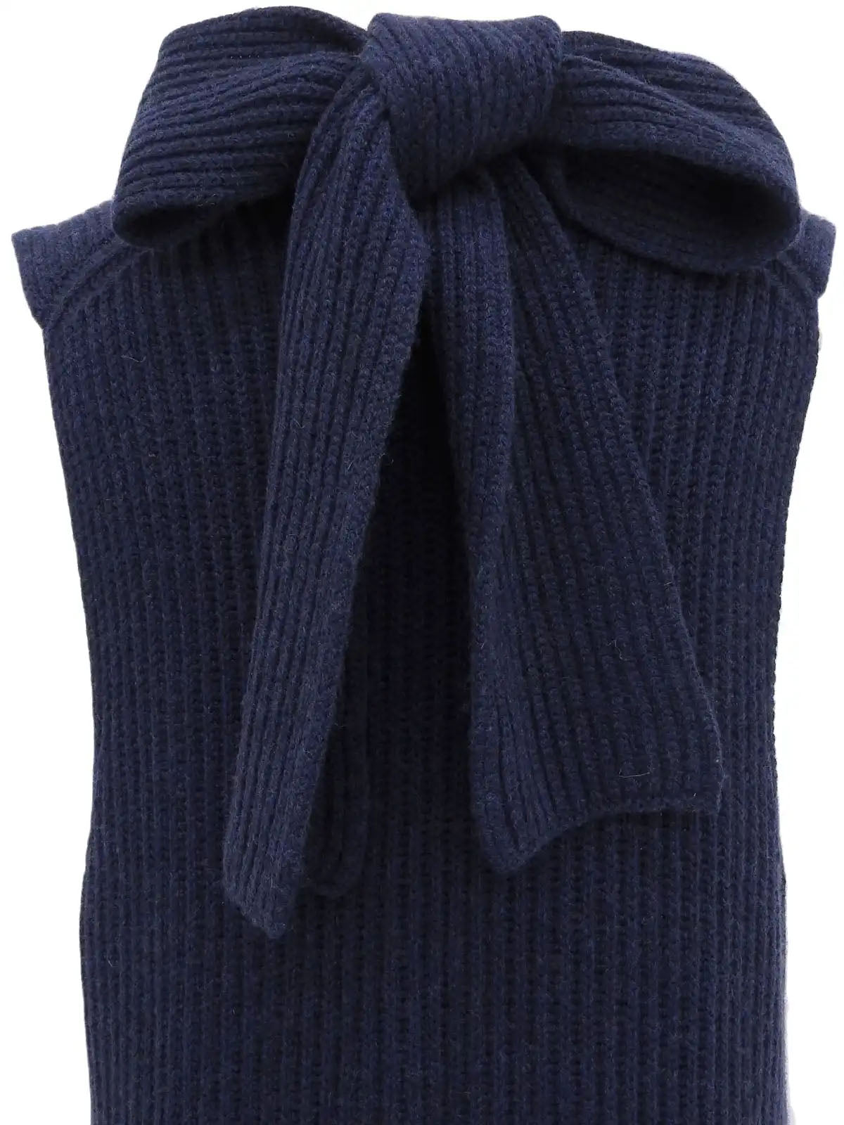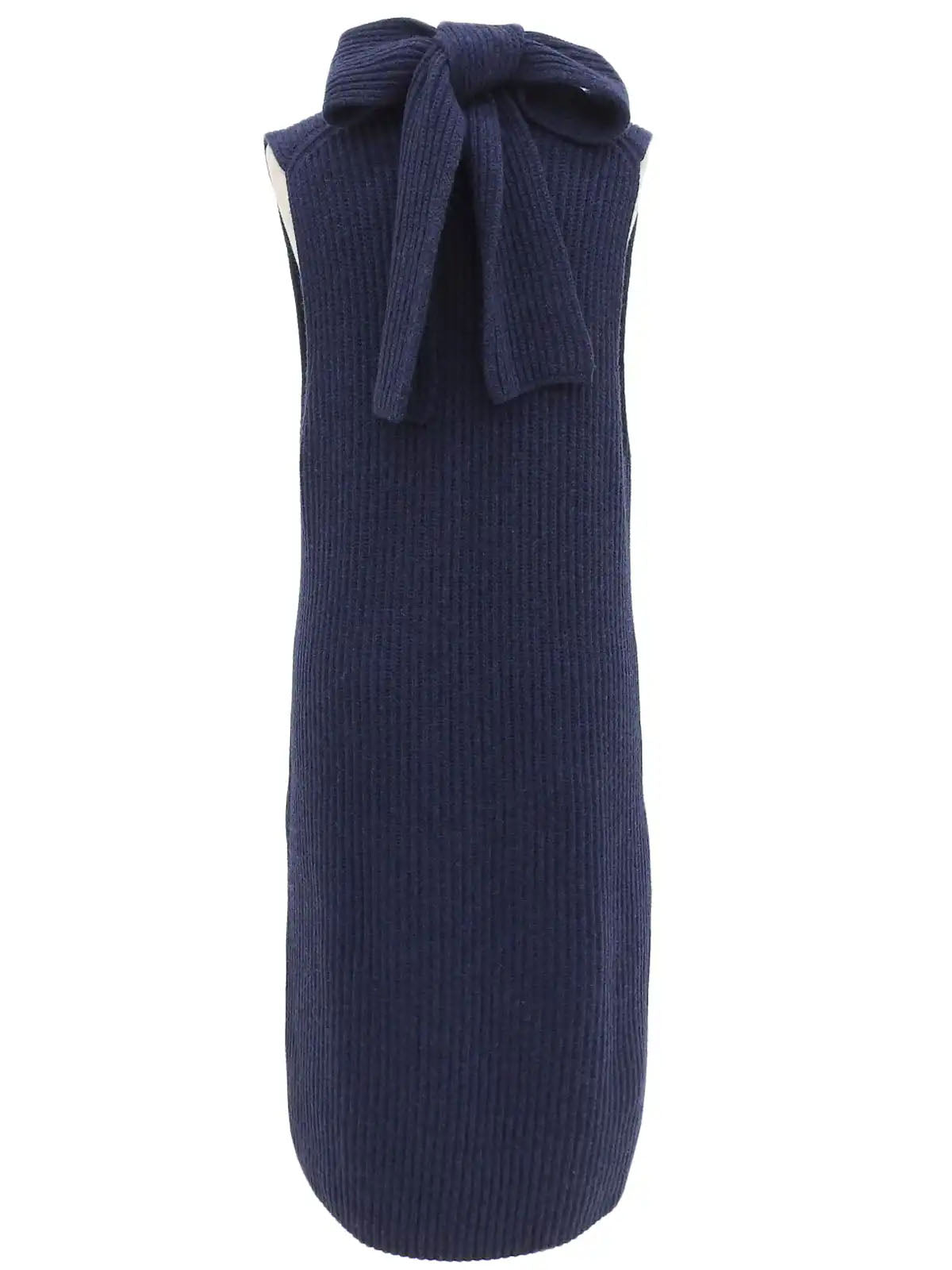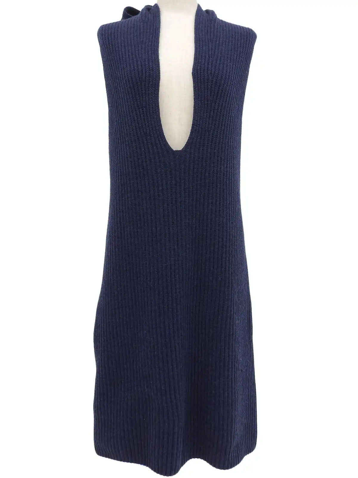 2008年製 カシミアノースリーブニットワンピース ネイビー