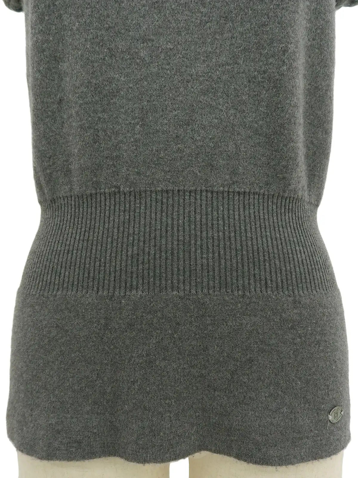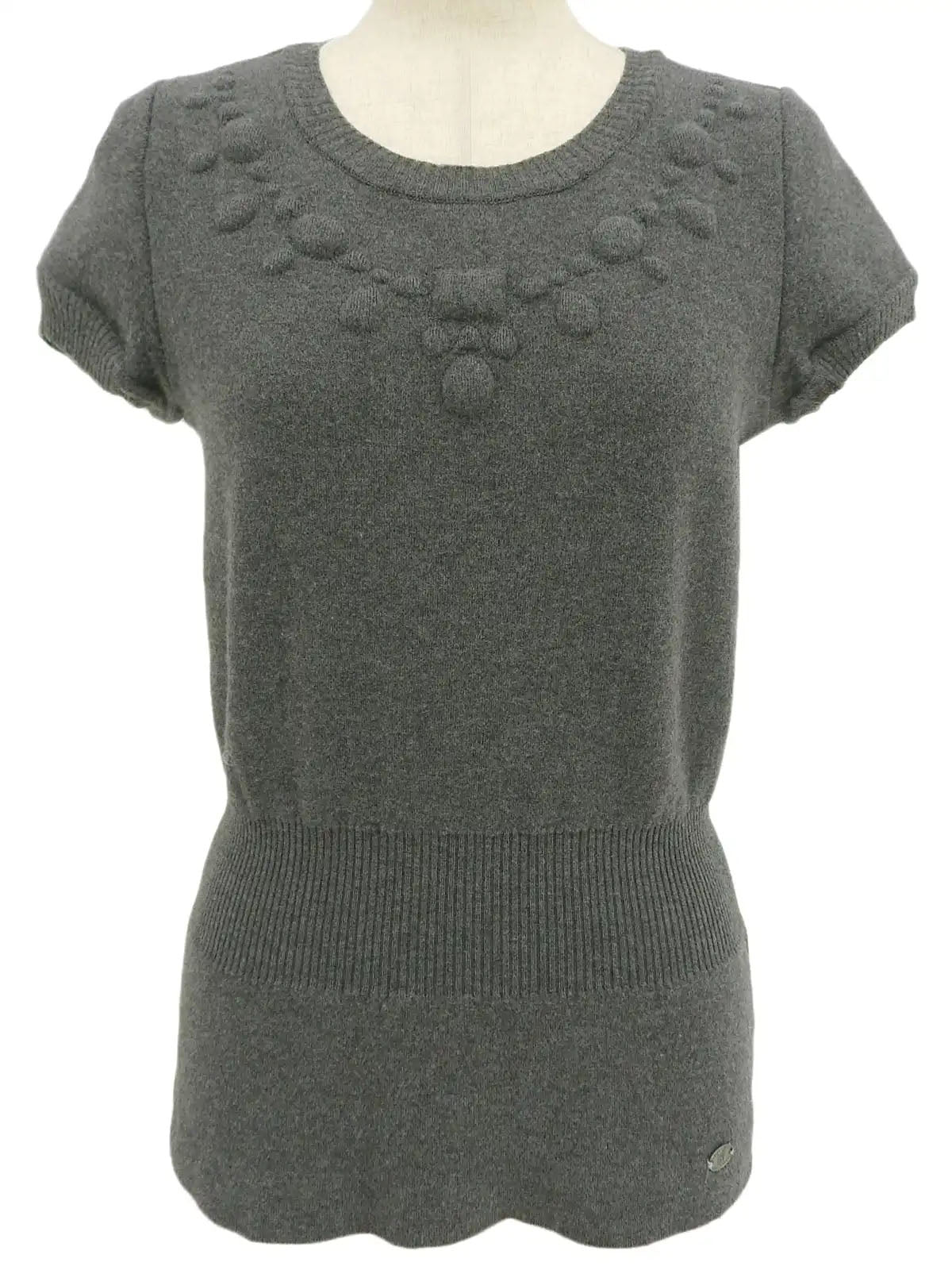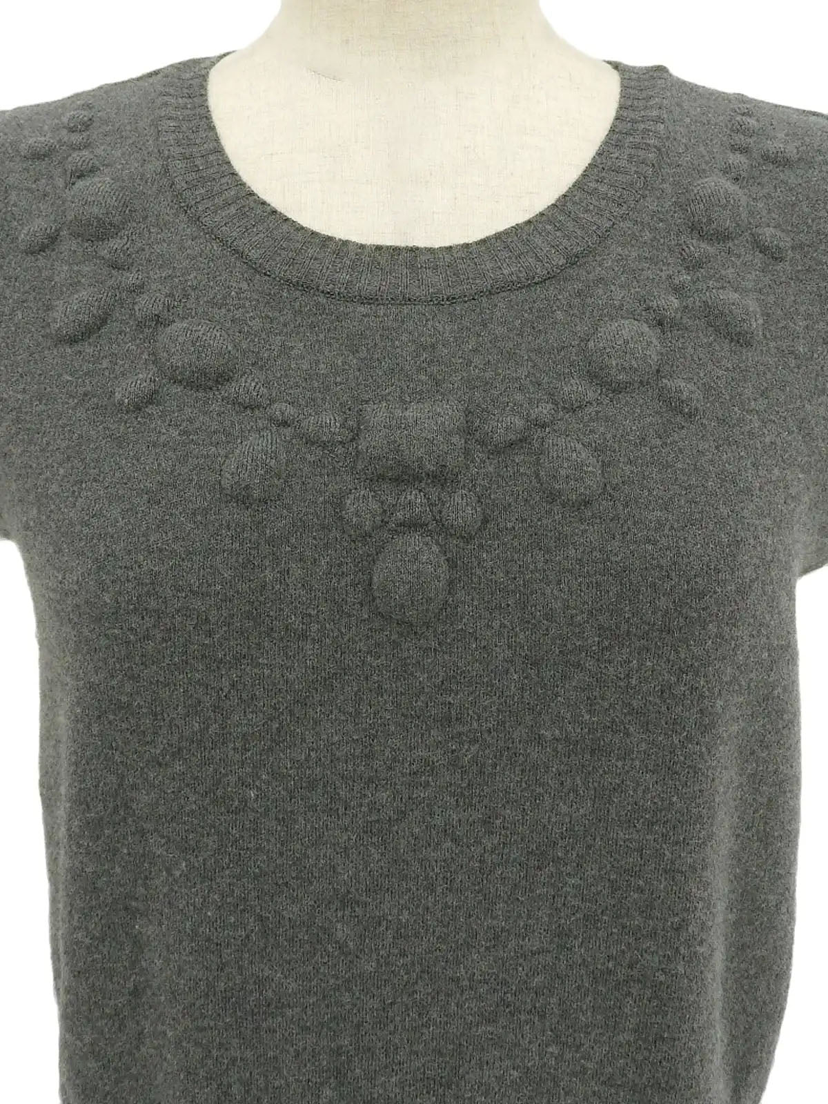 2007年製 ウールキルティングネックレスデザインロゴプレート半袖ニットトップス グレー