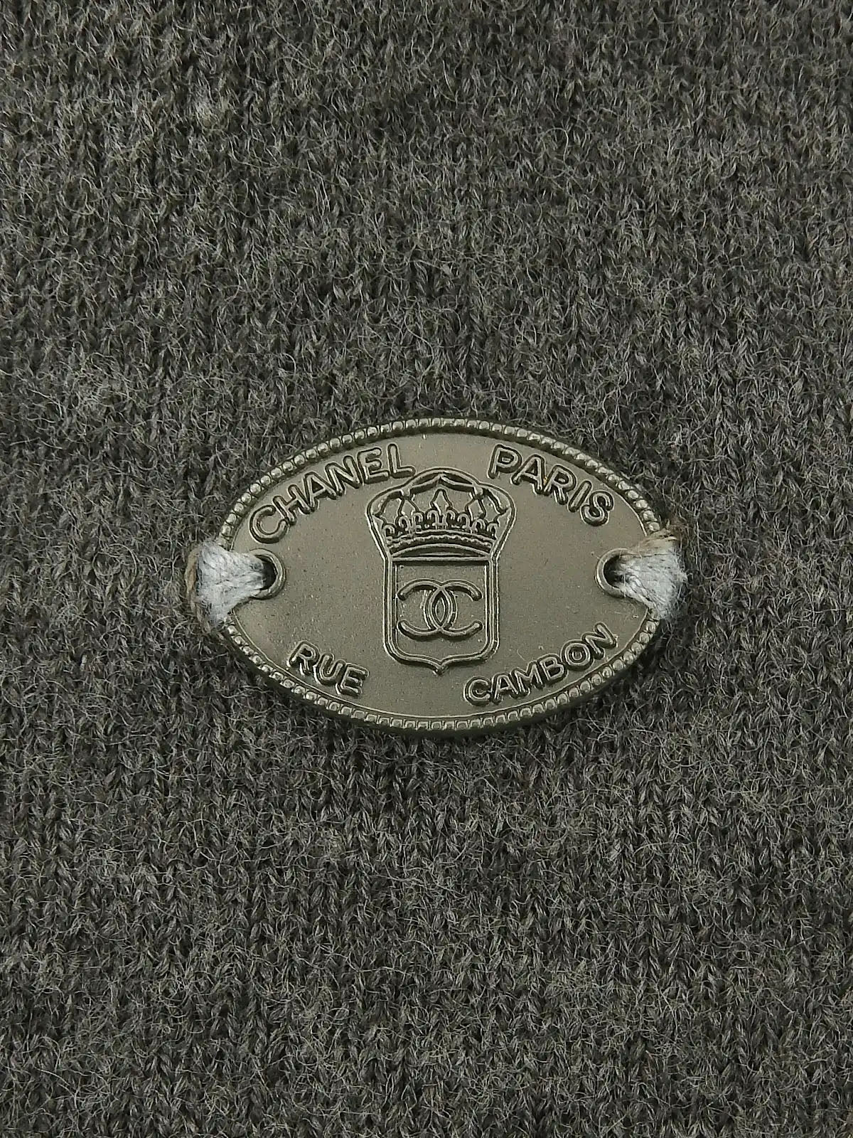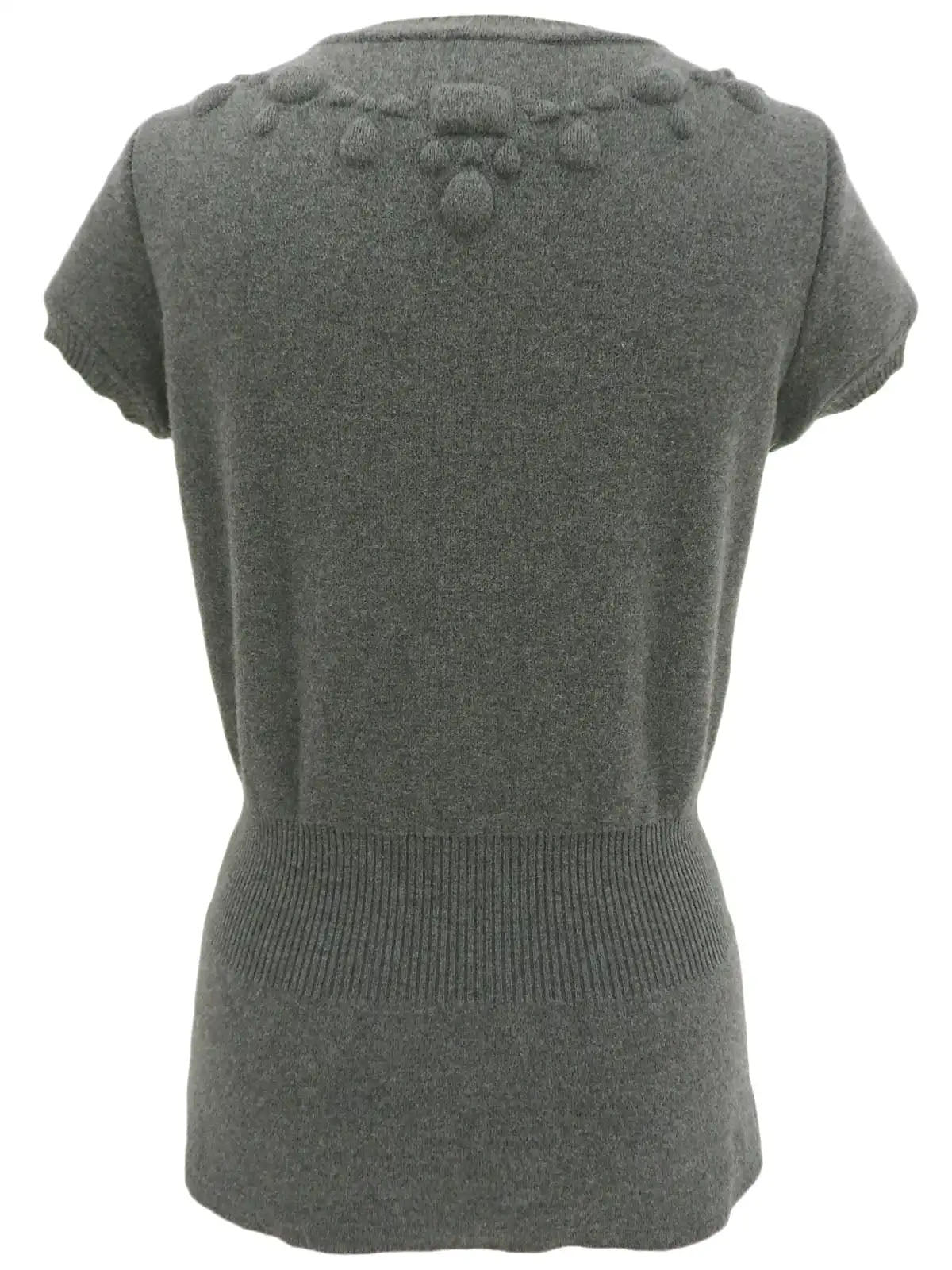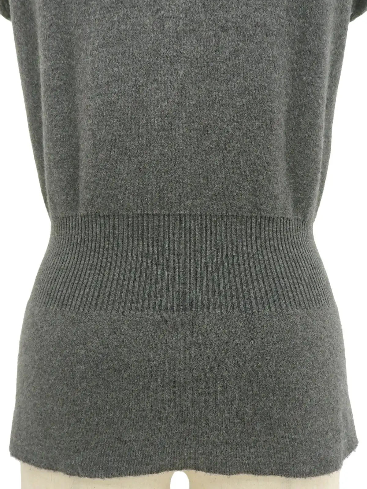 2007年製 ウールキルティングネックレスデザインロゴプレート半袖ニットトップス グレー