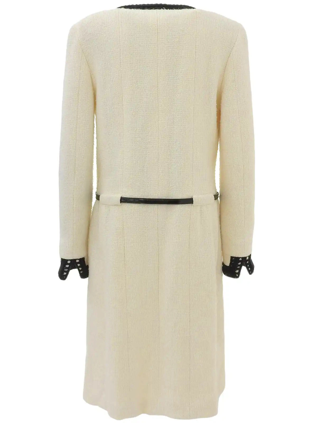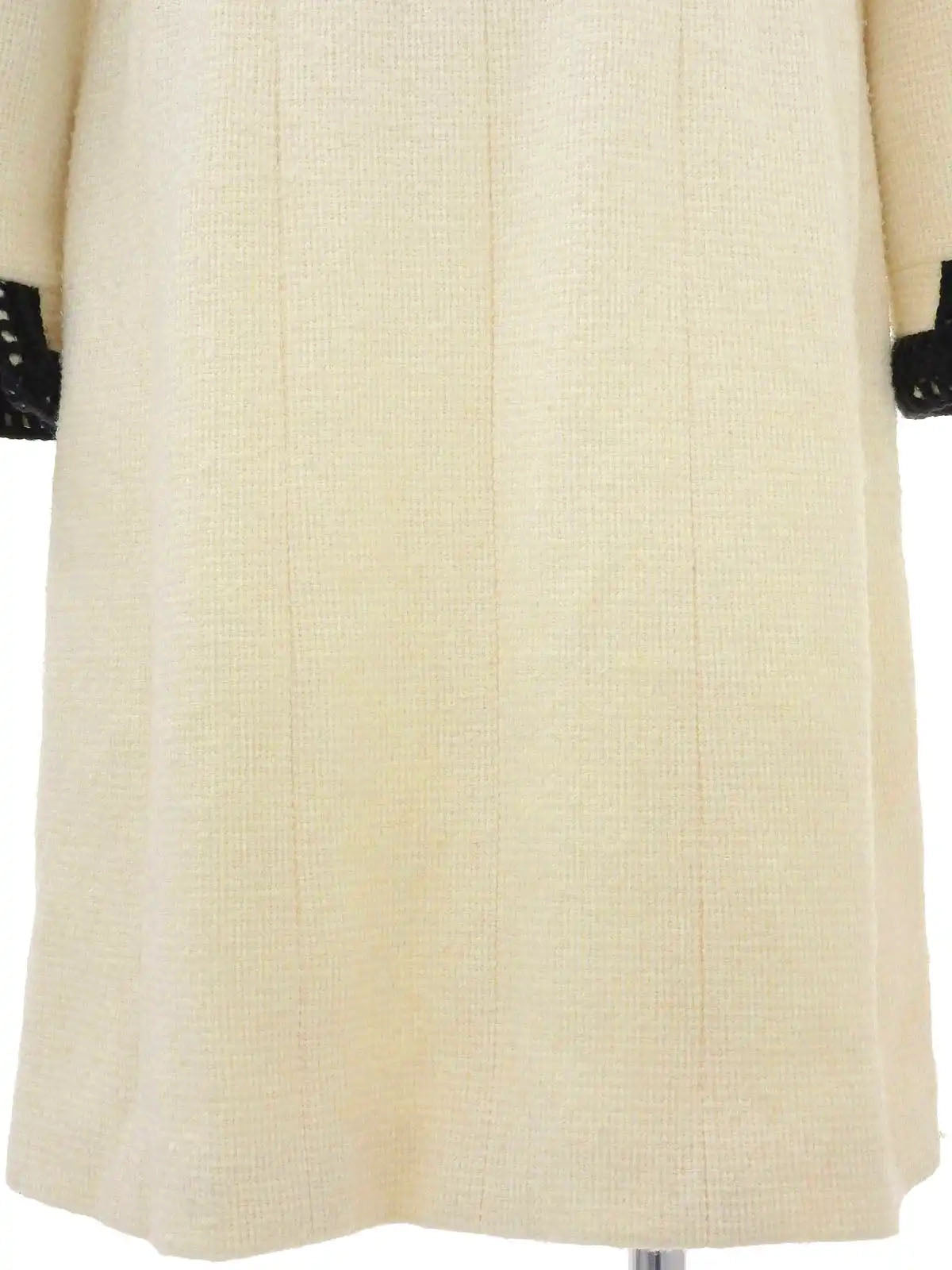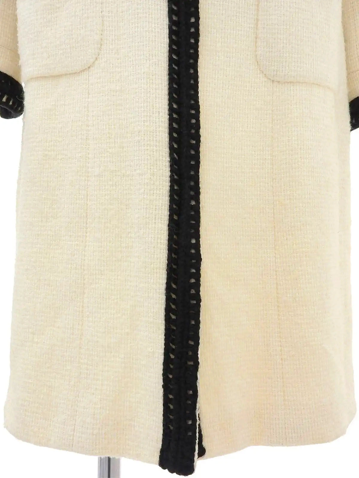 2000年製 ツイードバイカラーロゴベルトノーカラーコート アイボリー/ブラック