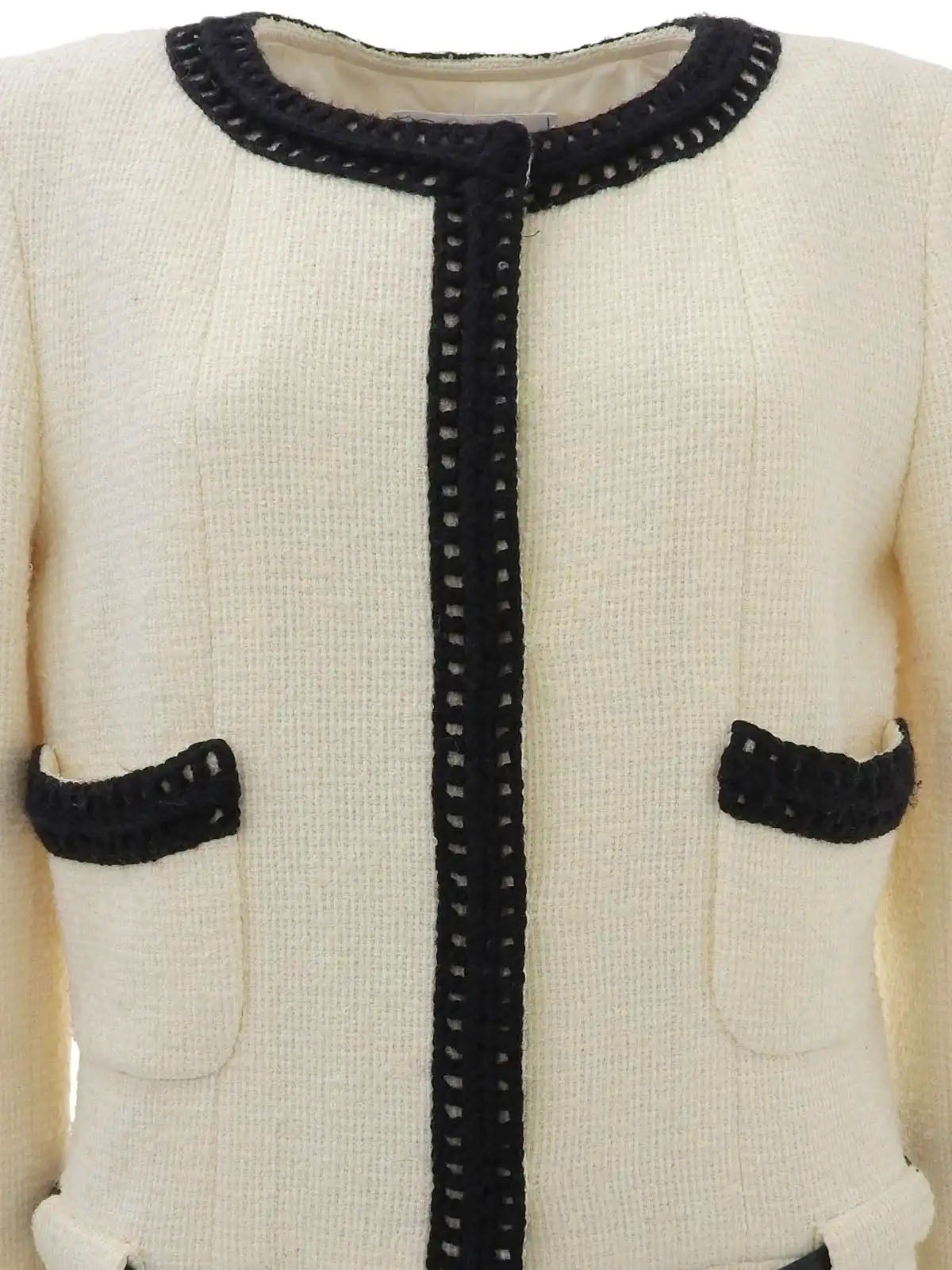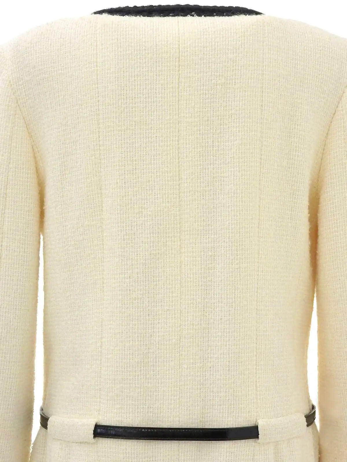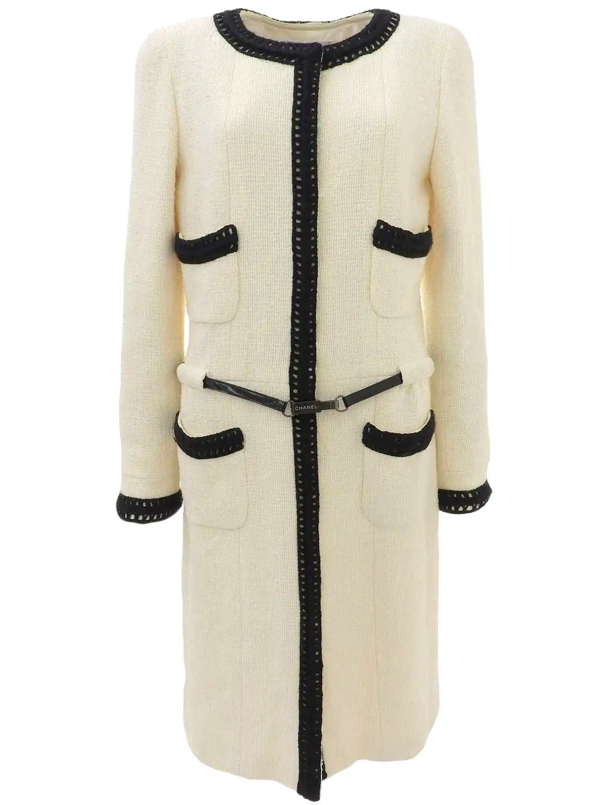 2000年製 ツイードバイカラーロゴベルトノーカラーコート アイボリー/ブラック
