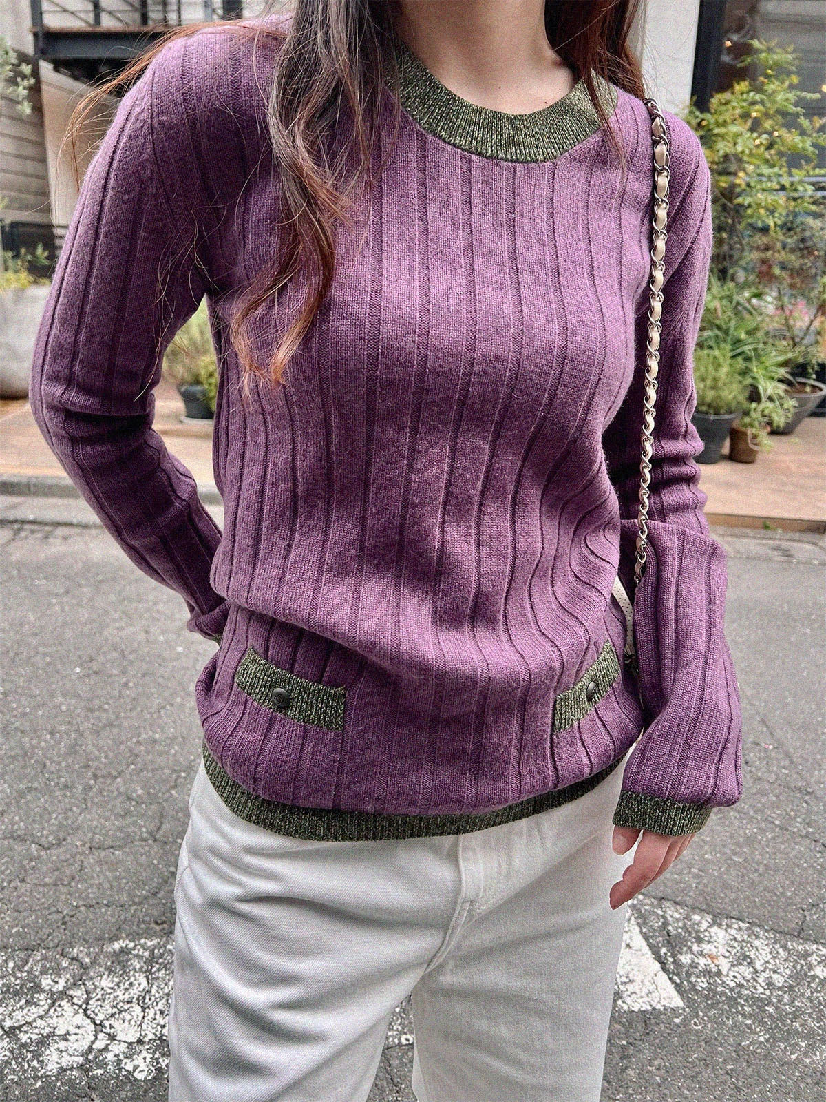 1997年製 CCマークボタンロングスリーブニットトップス パープル/グレー
