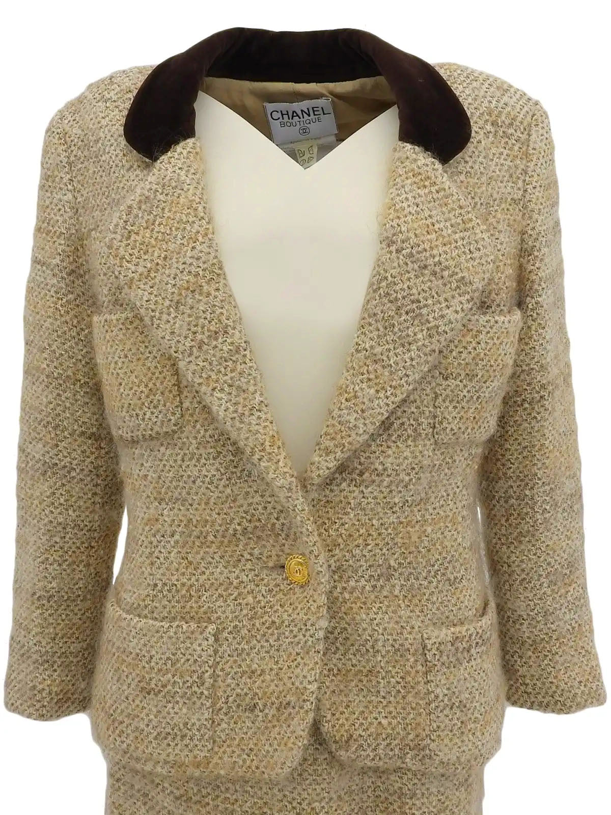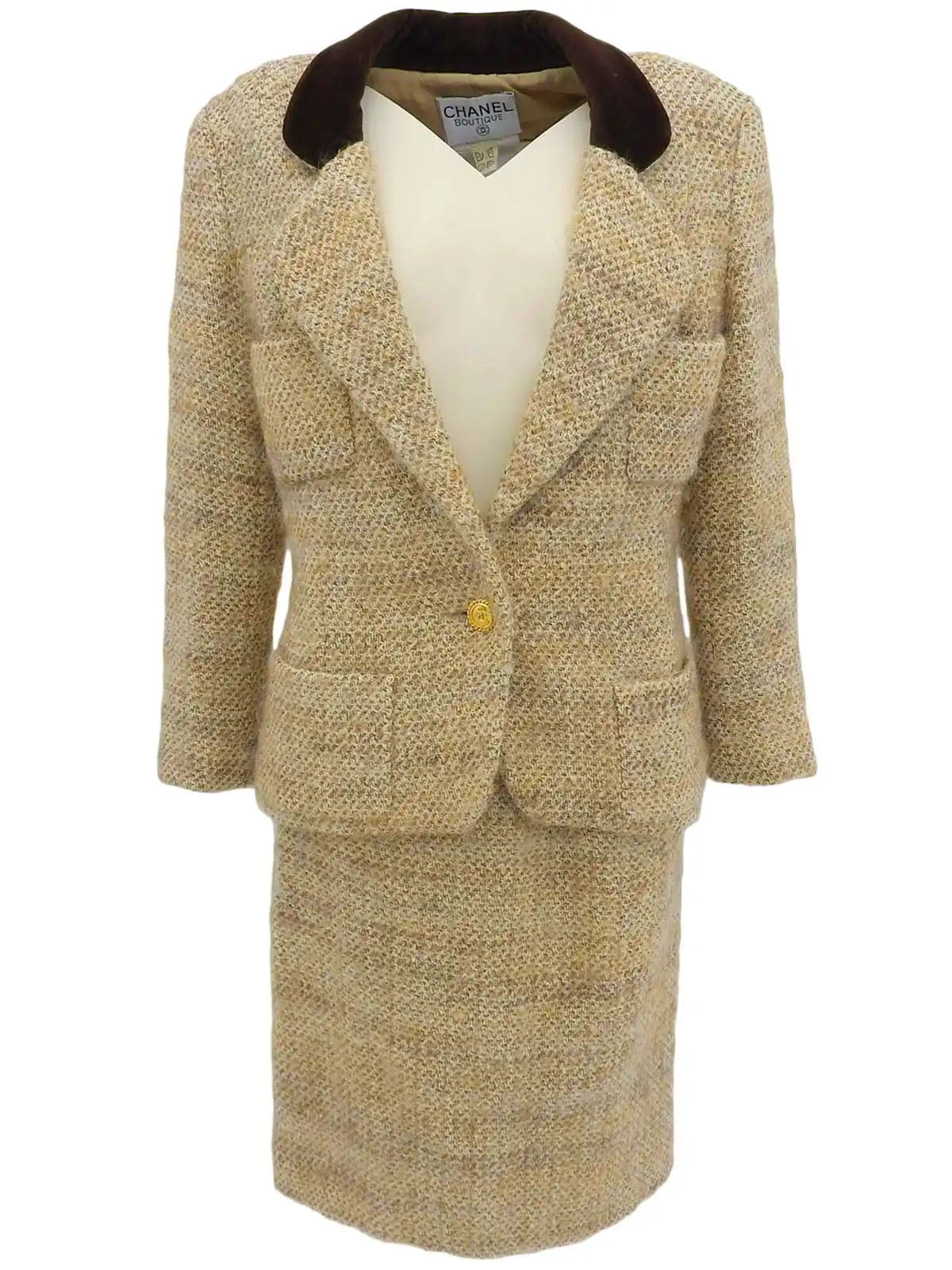 ツイードベロアコンビCCマークセットアップ ベージュ/ブラウン