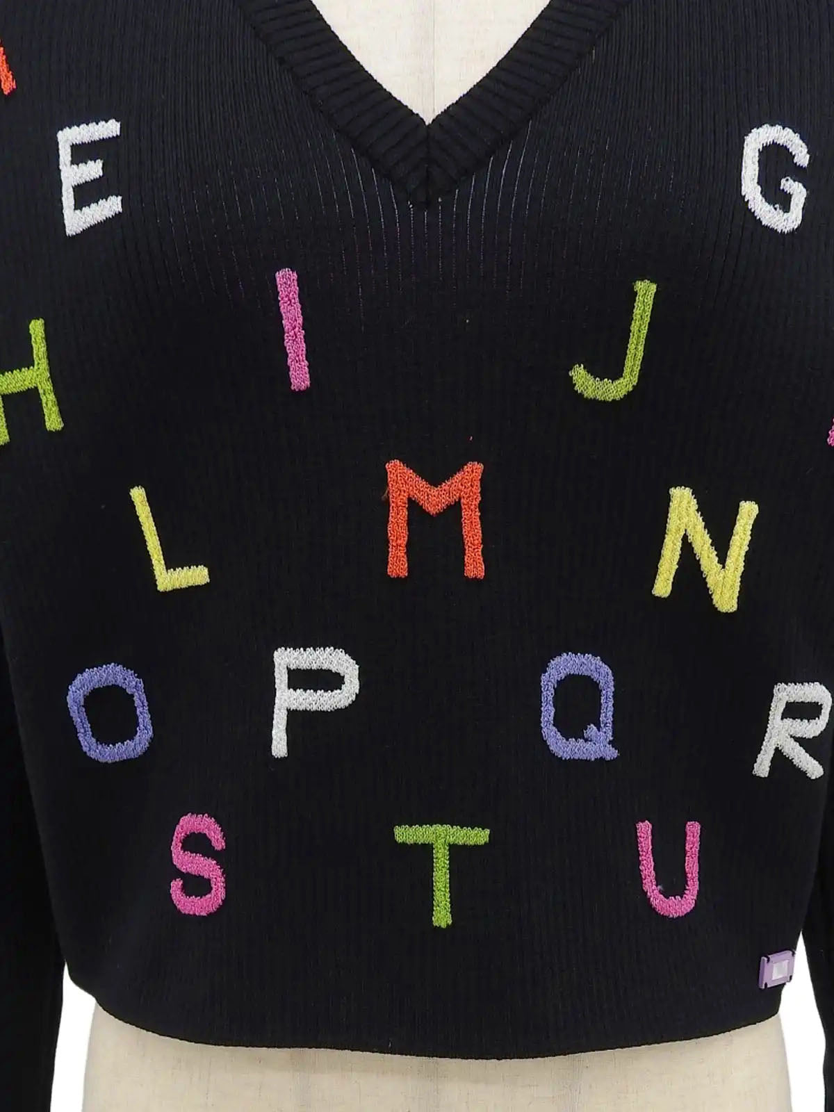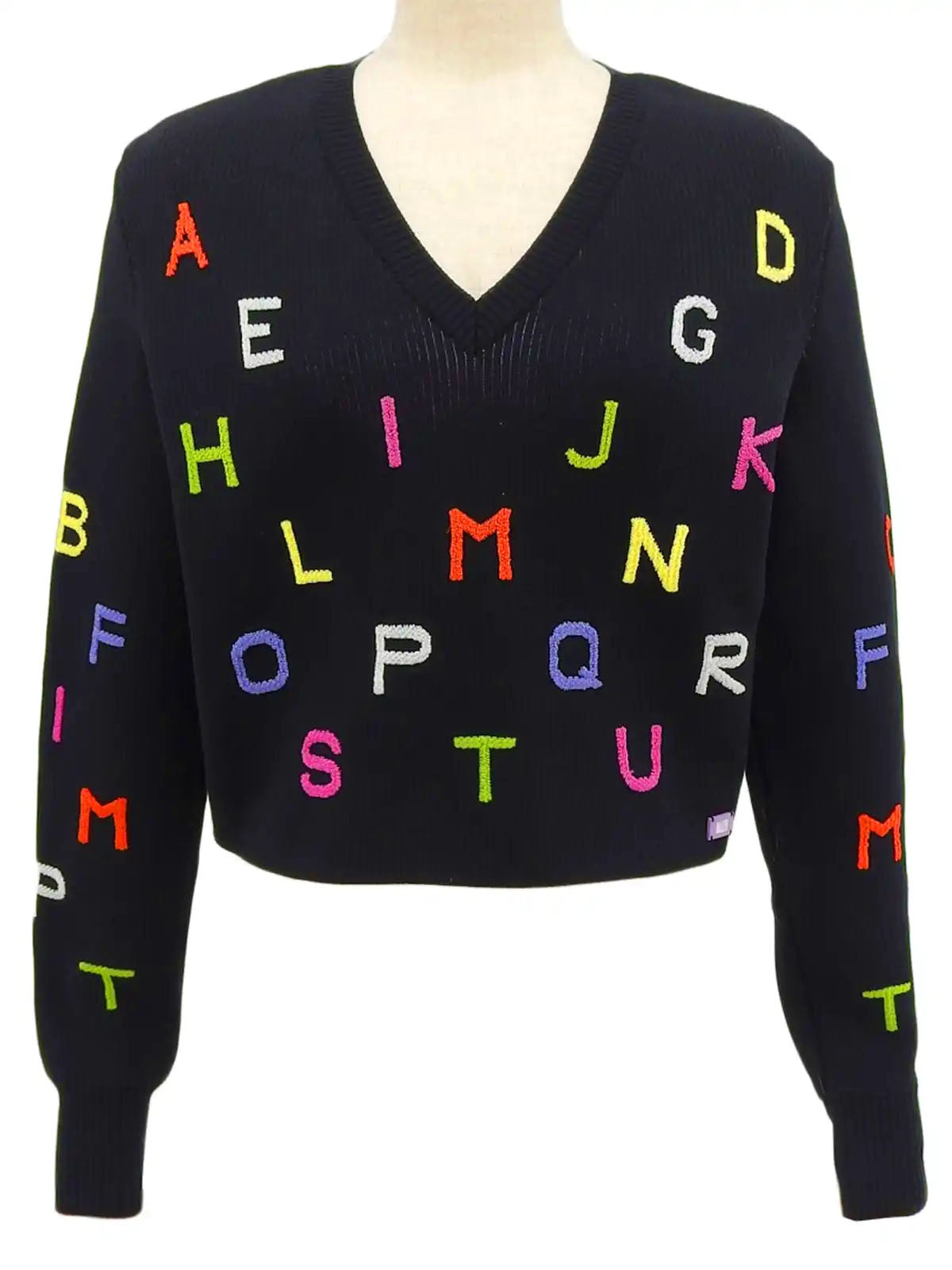 2001年製 CCマークプレートロゴ刺繍ニットセーター ブラック/マルチ