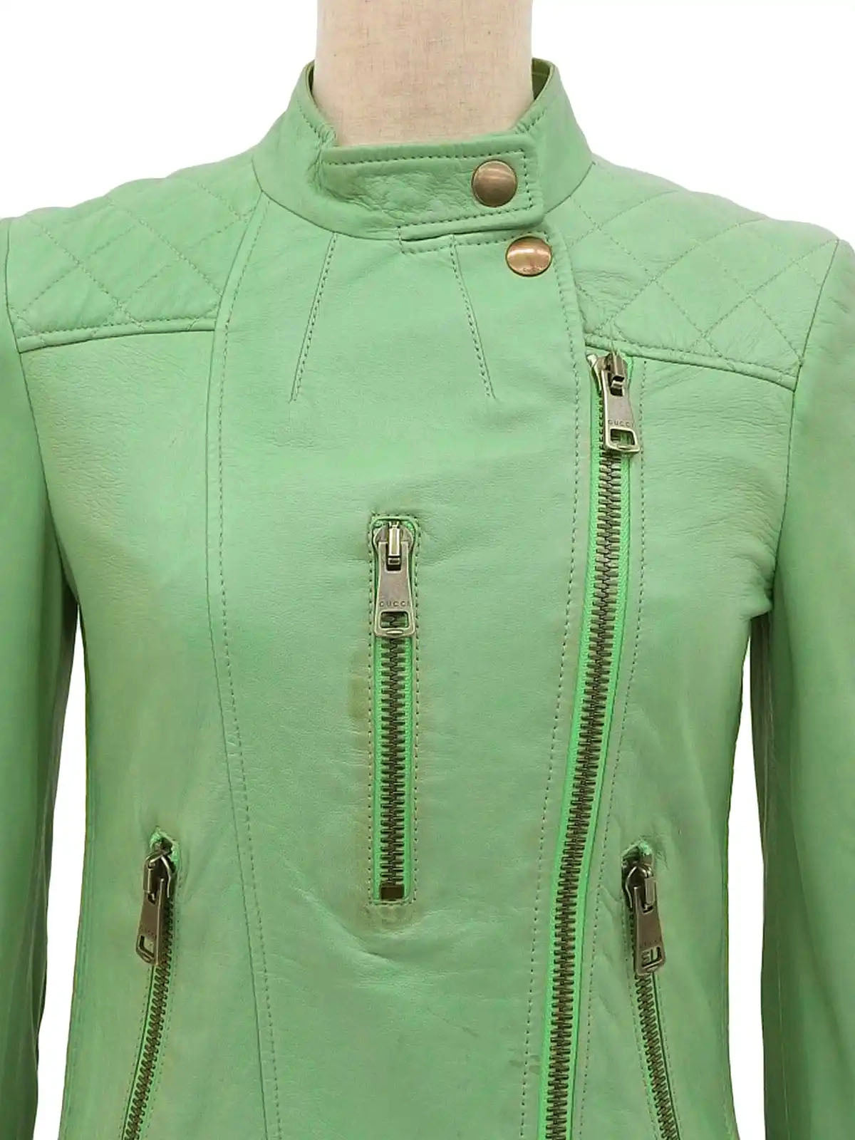 リアルレザーロゴジップアップジャケット ライトグリーン