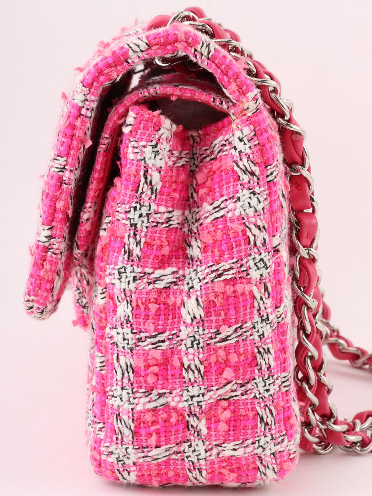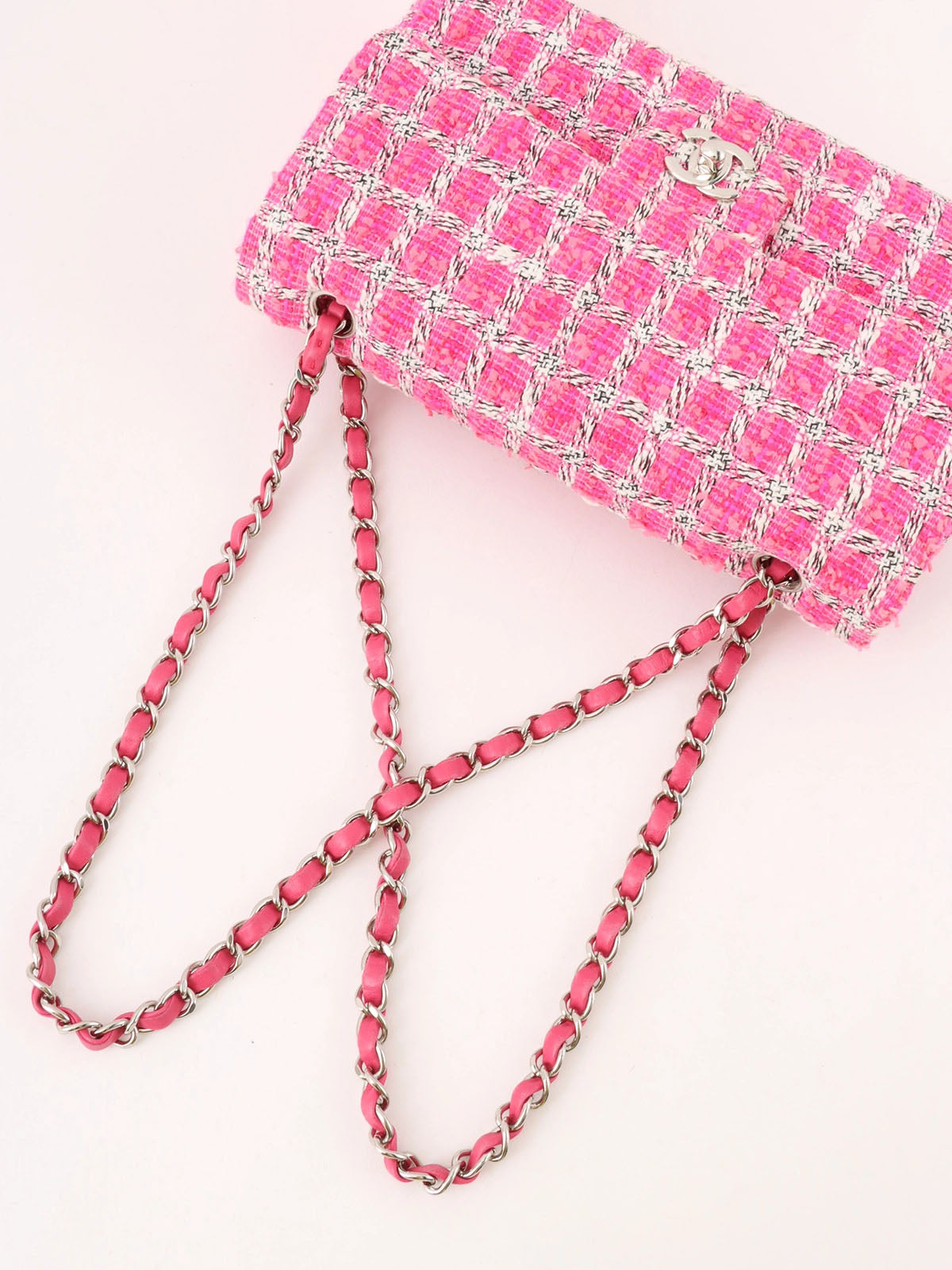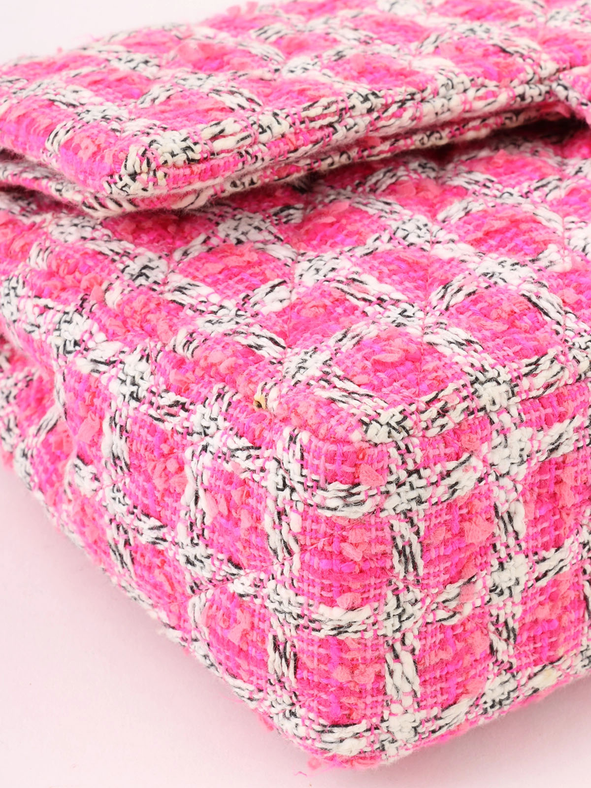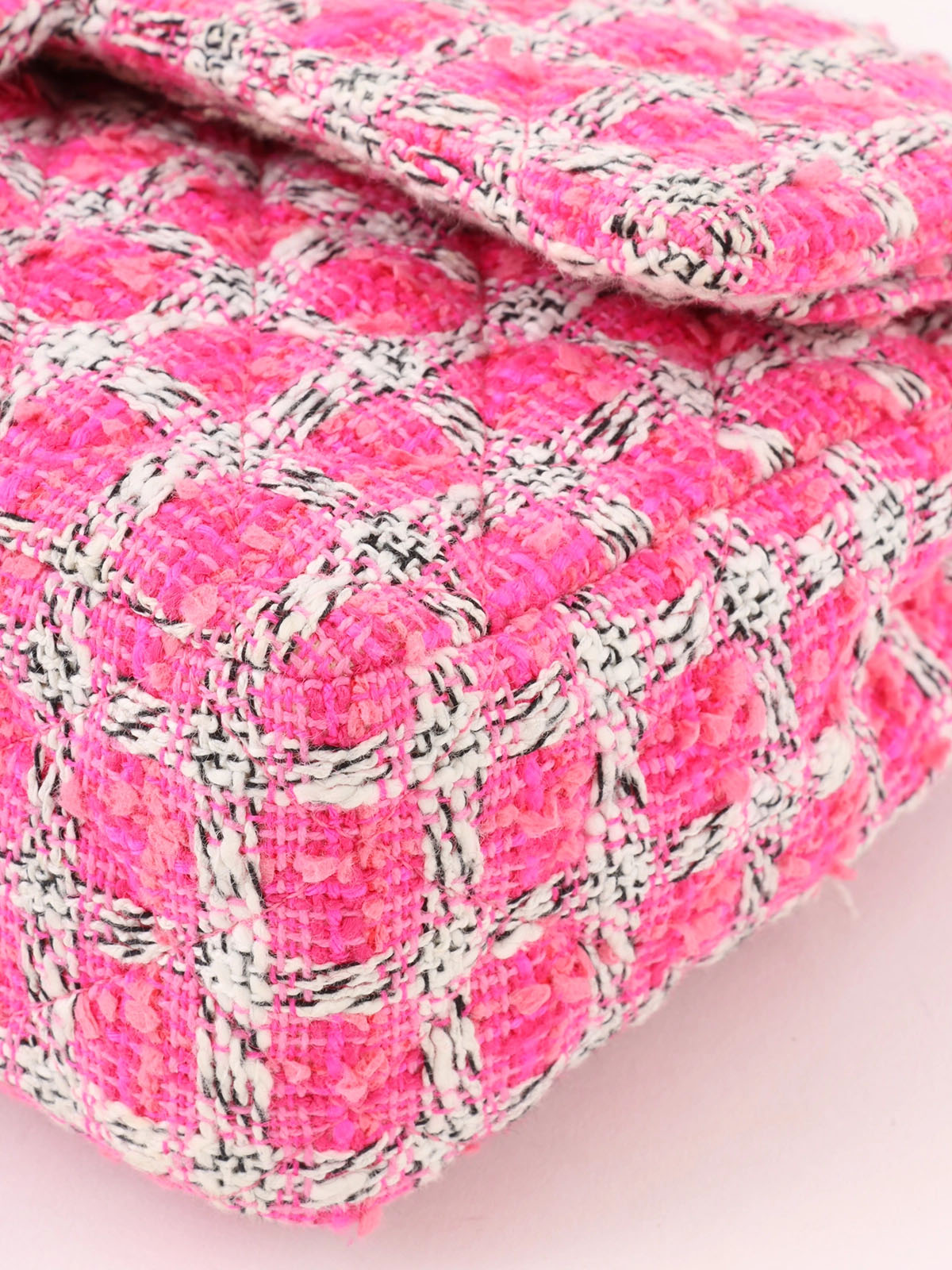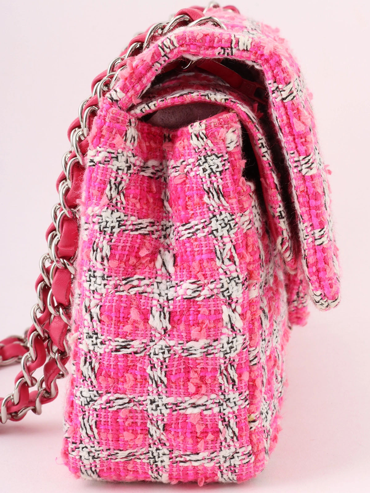 2014年頃製 ツイードクラシックフラップチェーンバッグ25cm ピンク/ホワイト