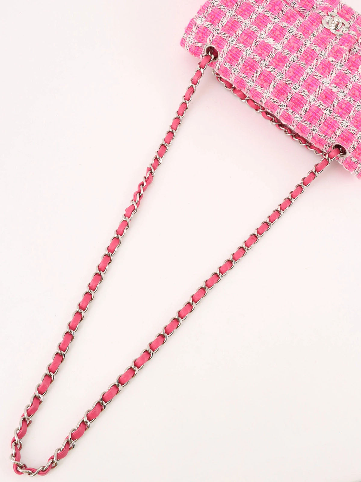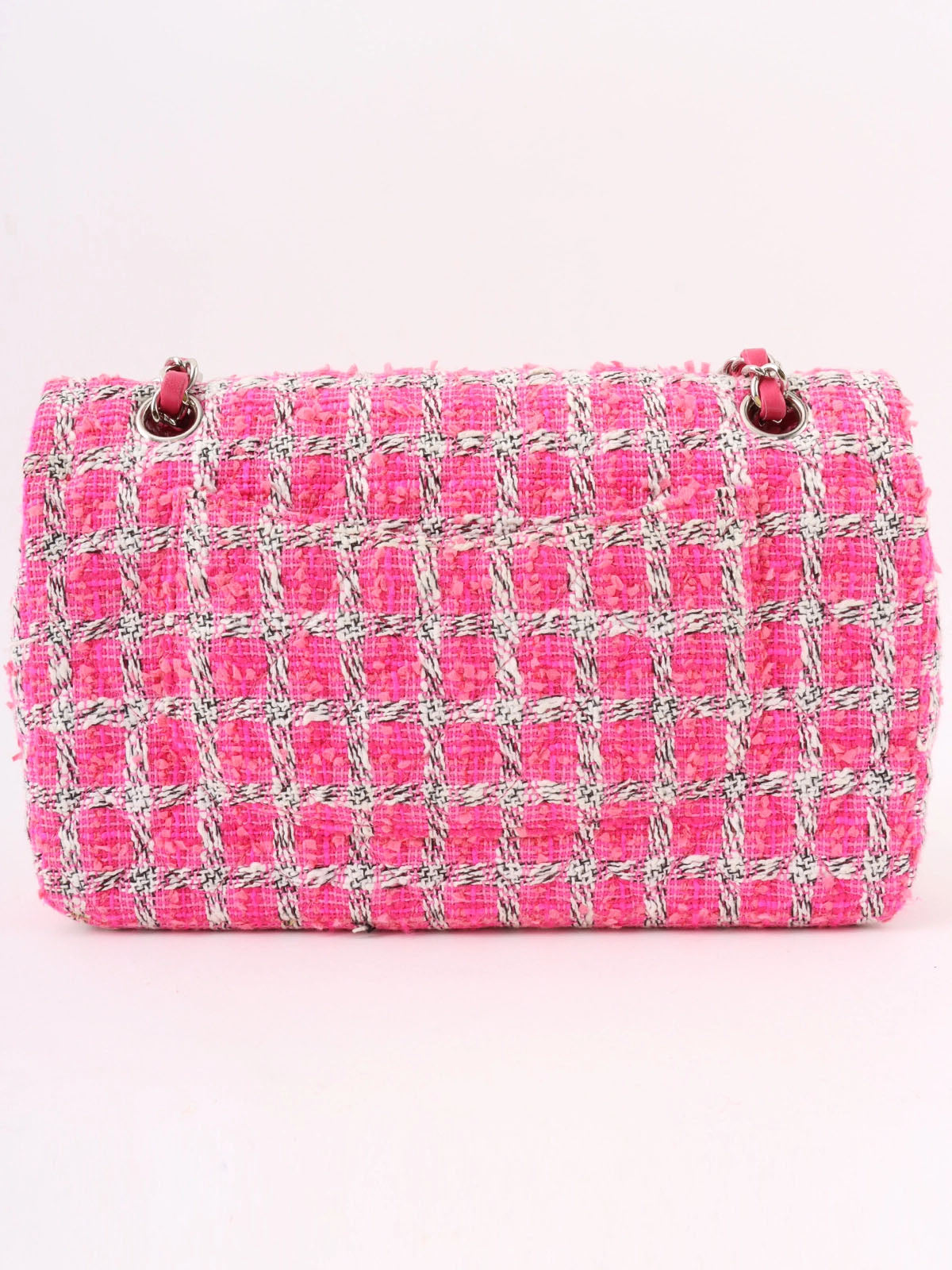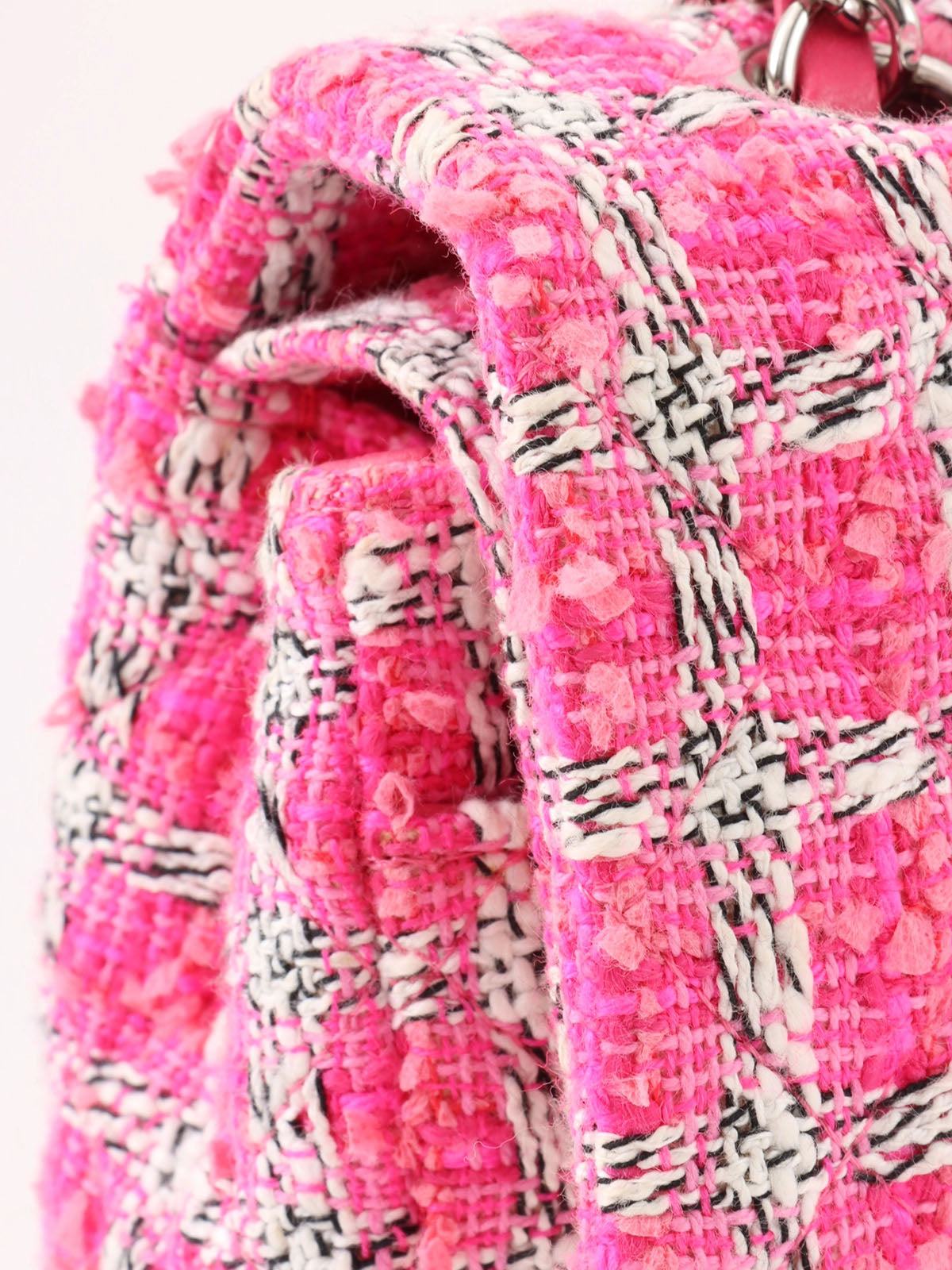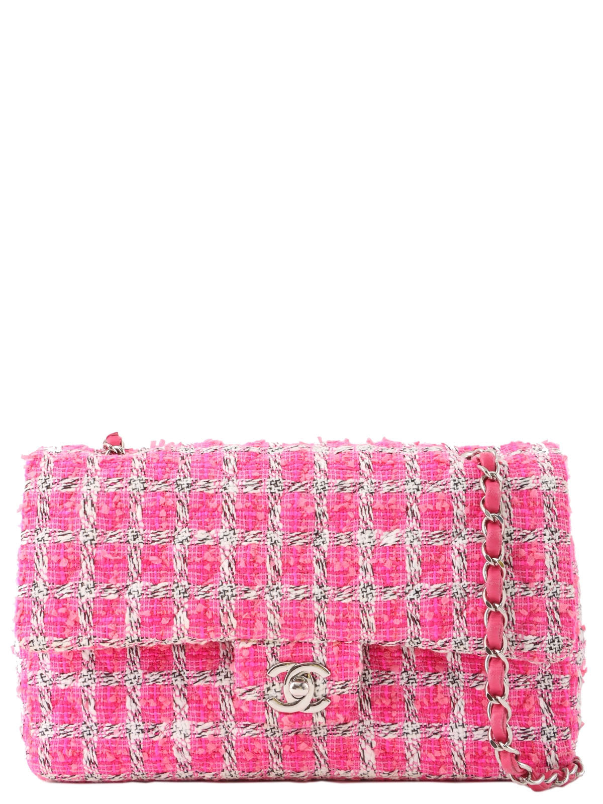 2014年頃製 ツイードクラシックフラップチェーンバッグ25cm ピンク/ホワイト