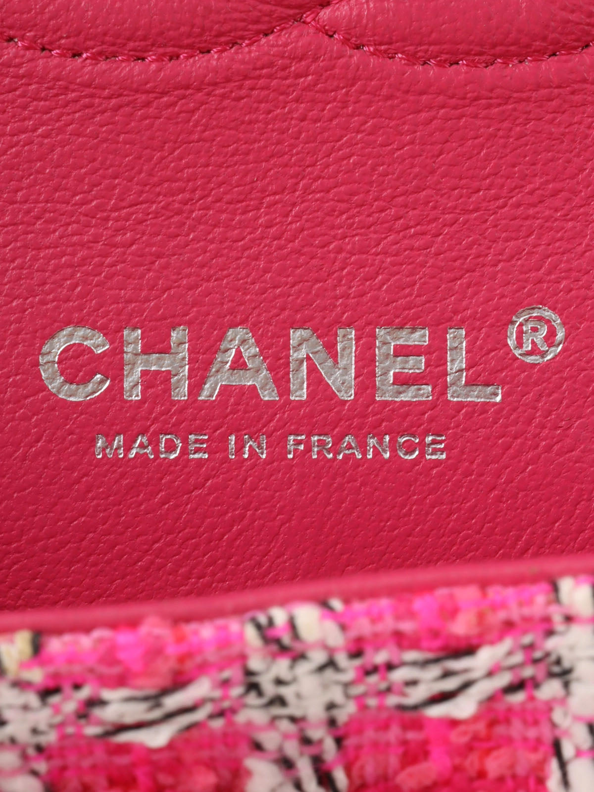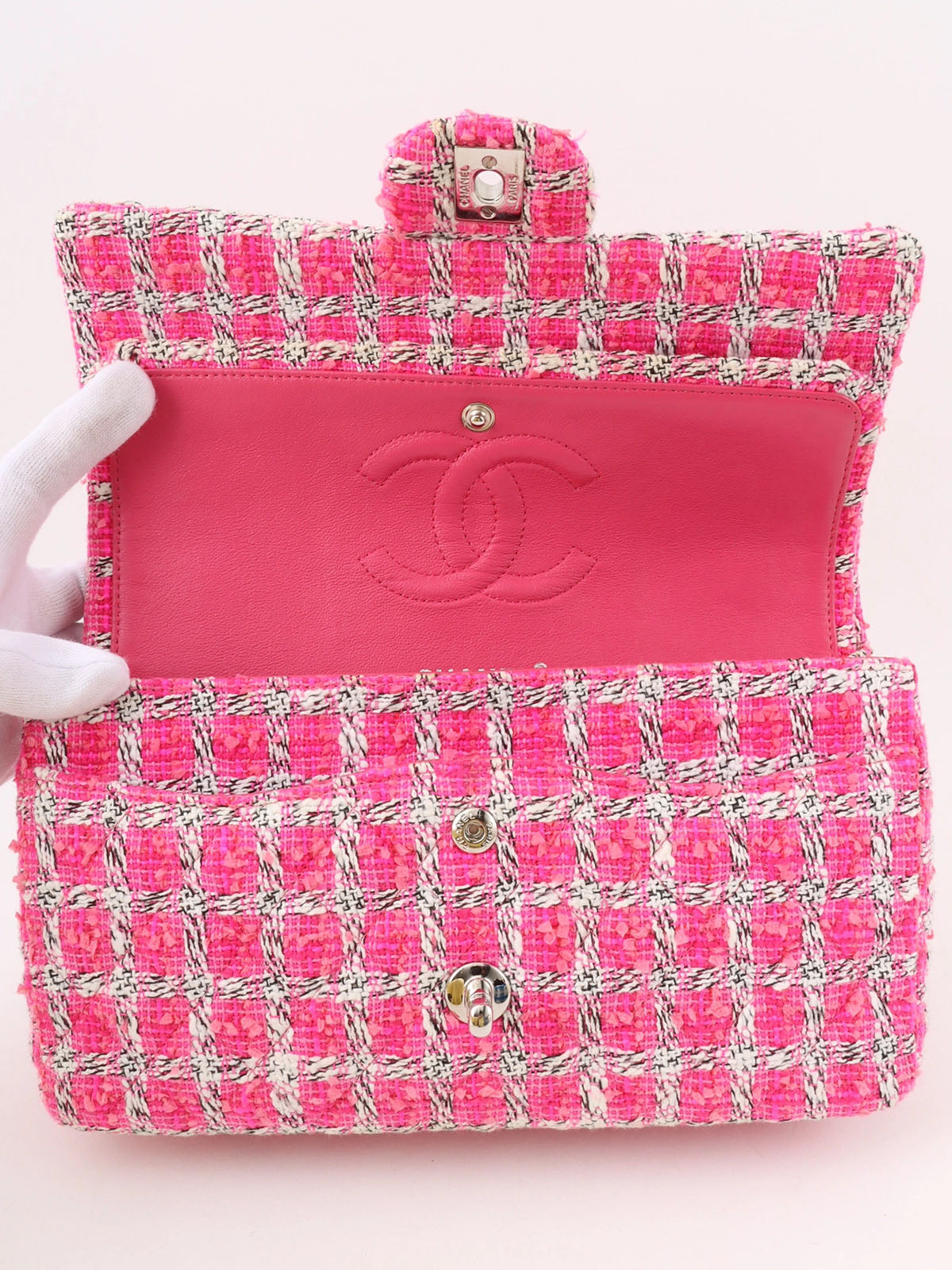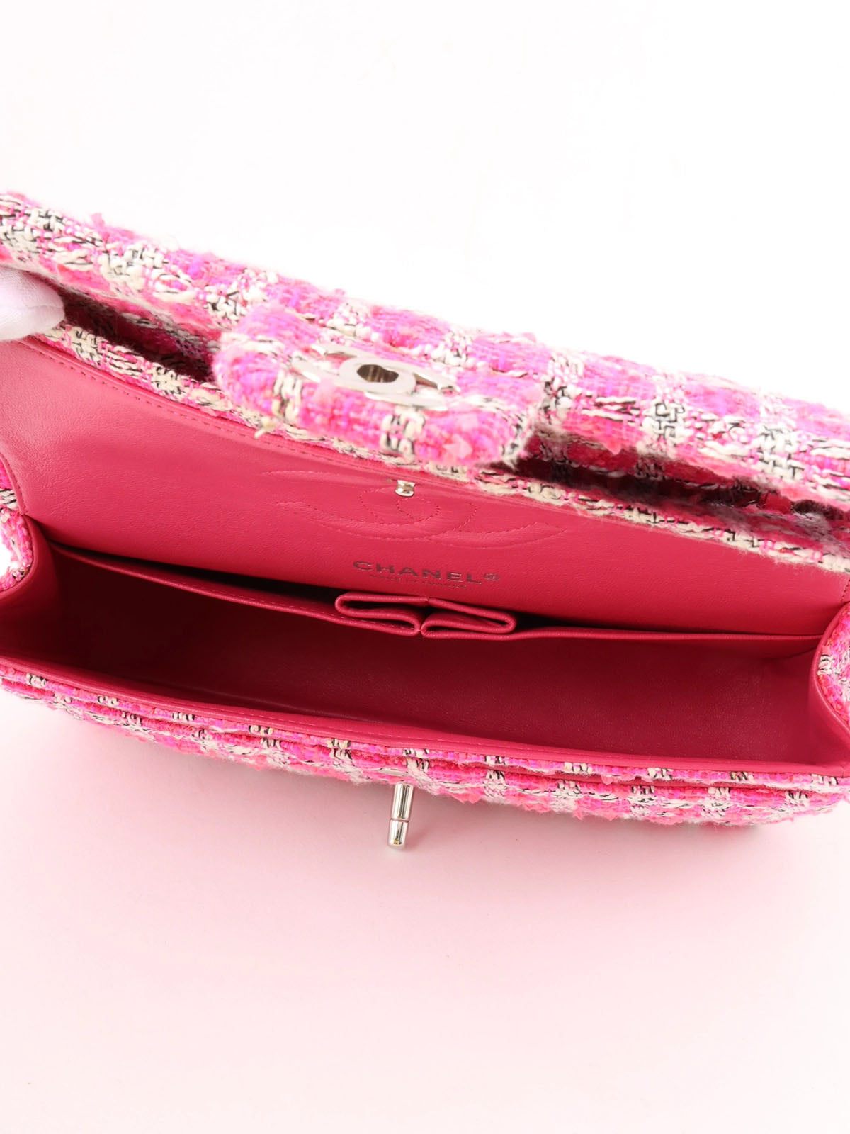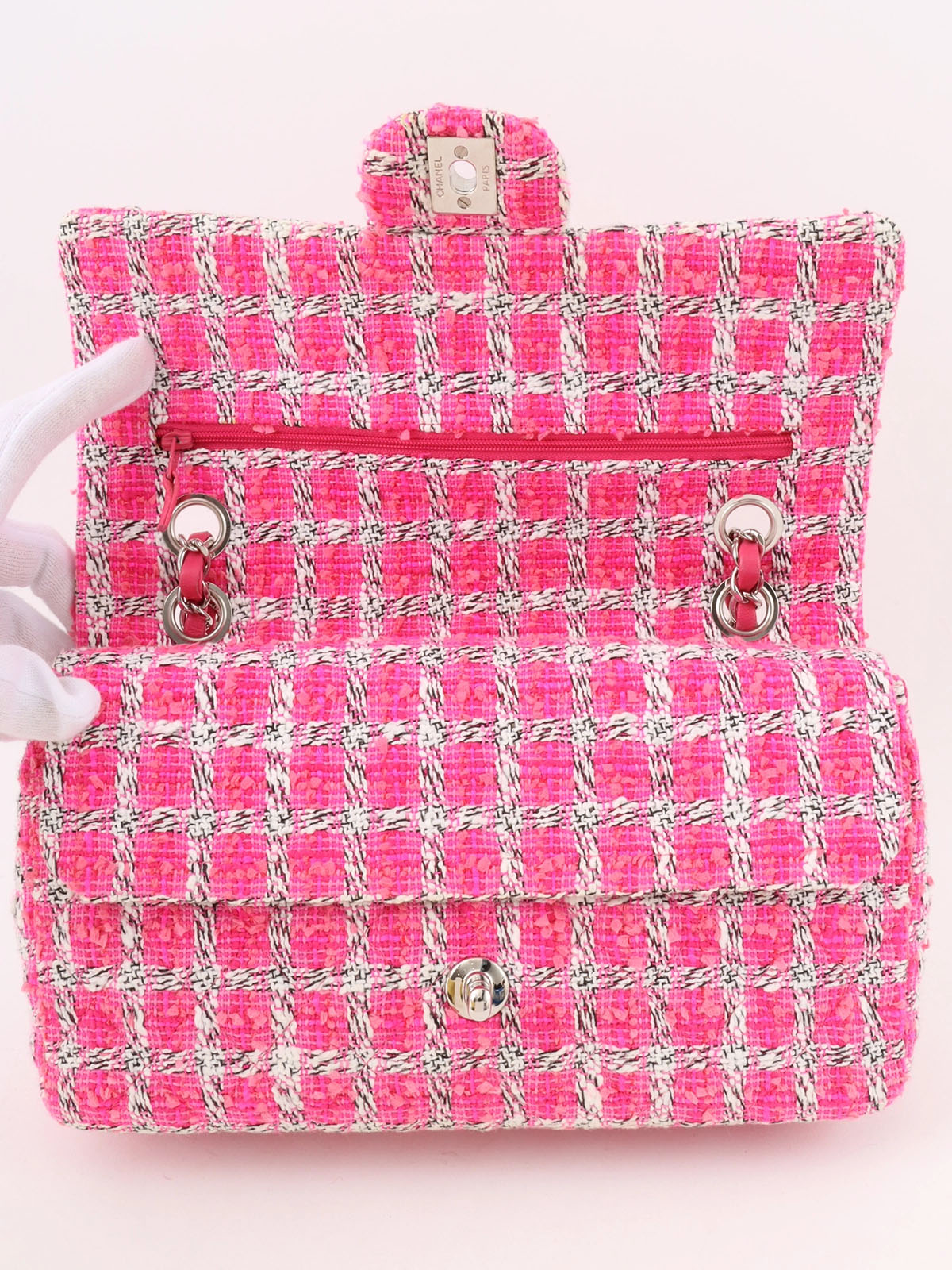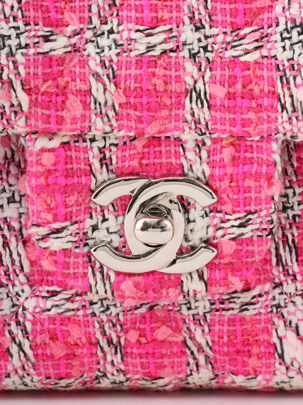 2014年頃製 ツイードクラシックフラップチェーンバッグ25cm ピンク/ホワイト