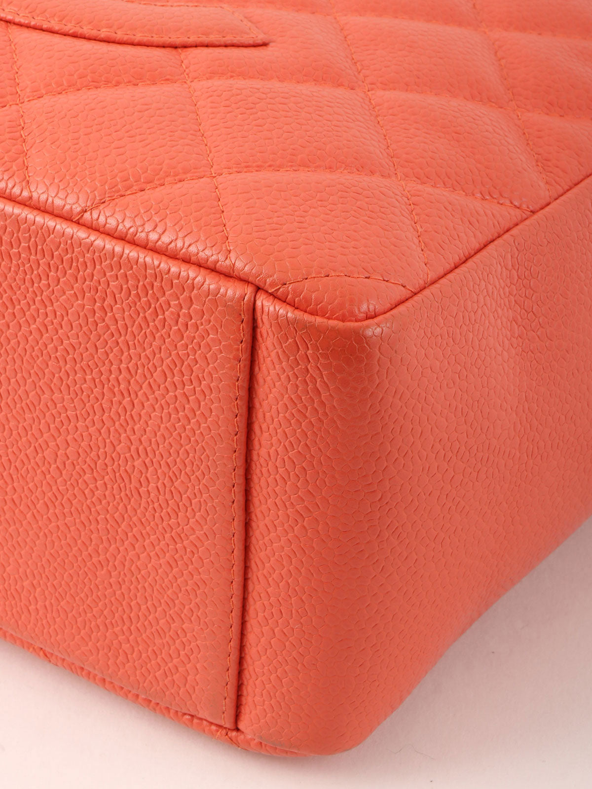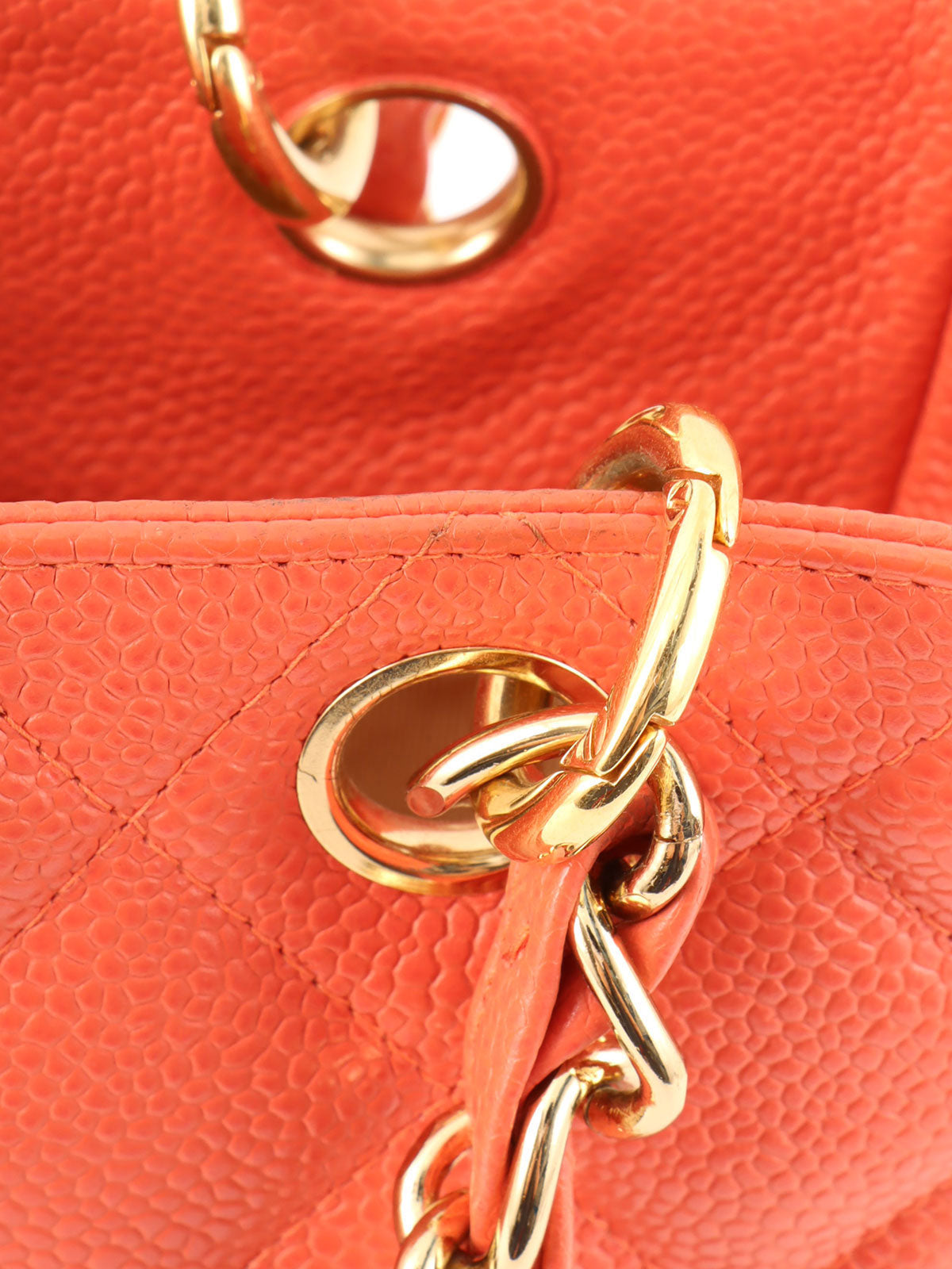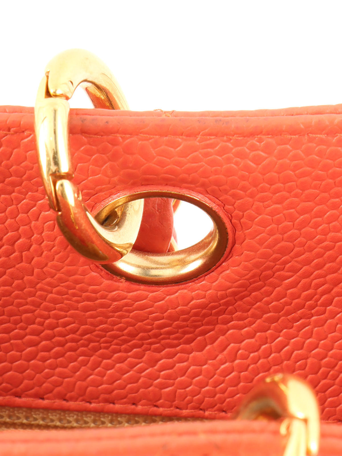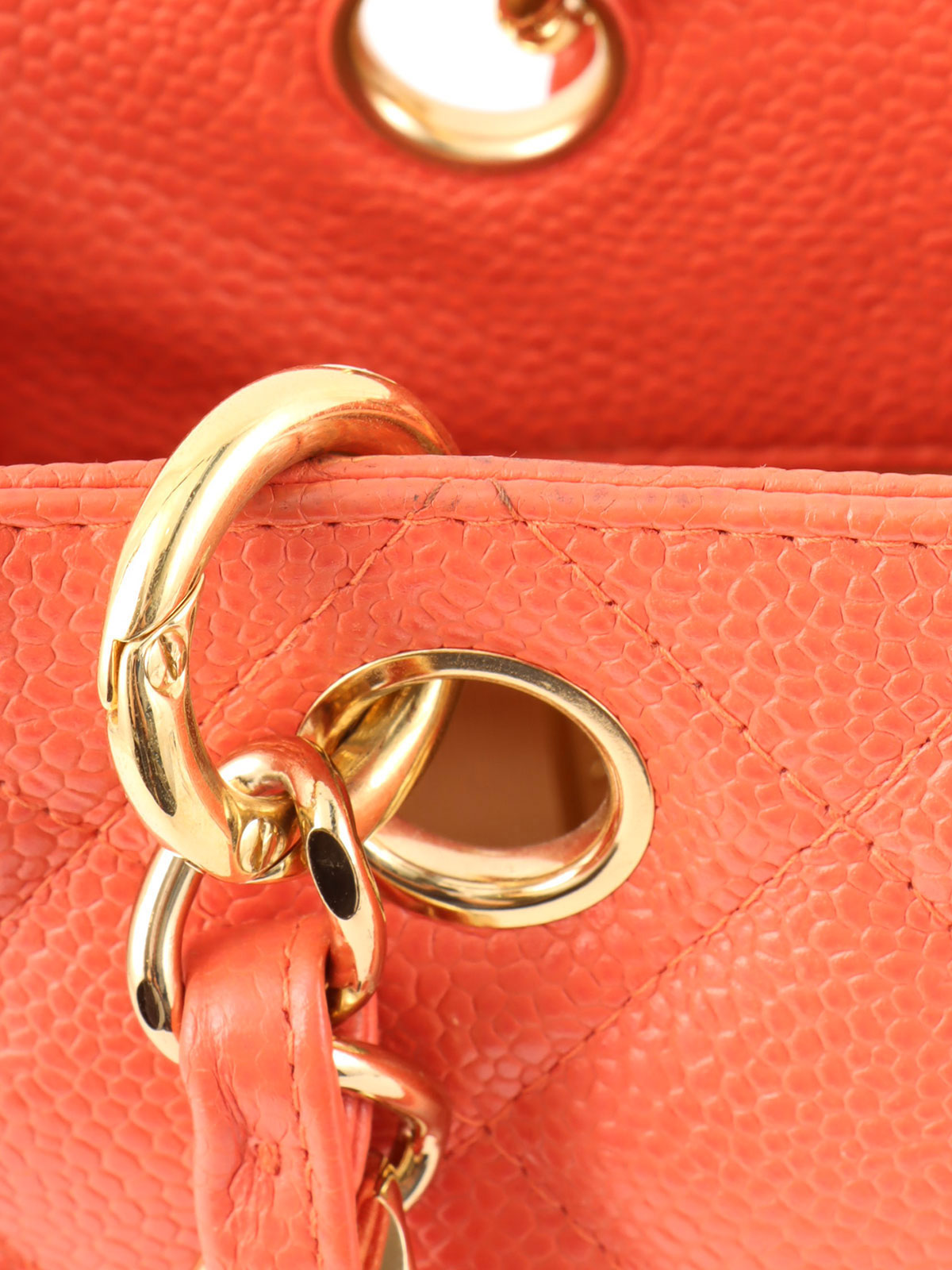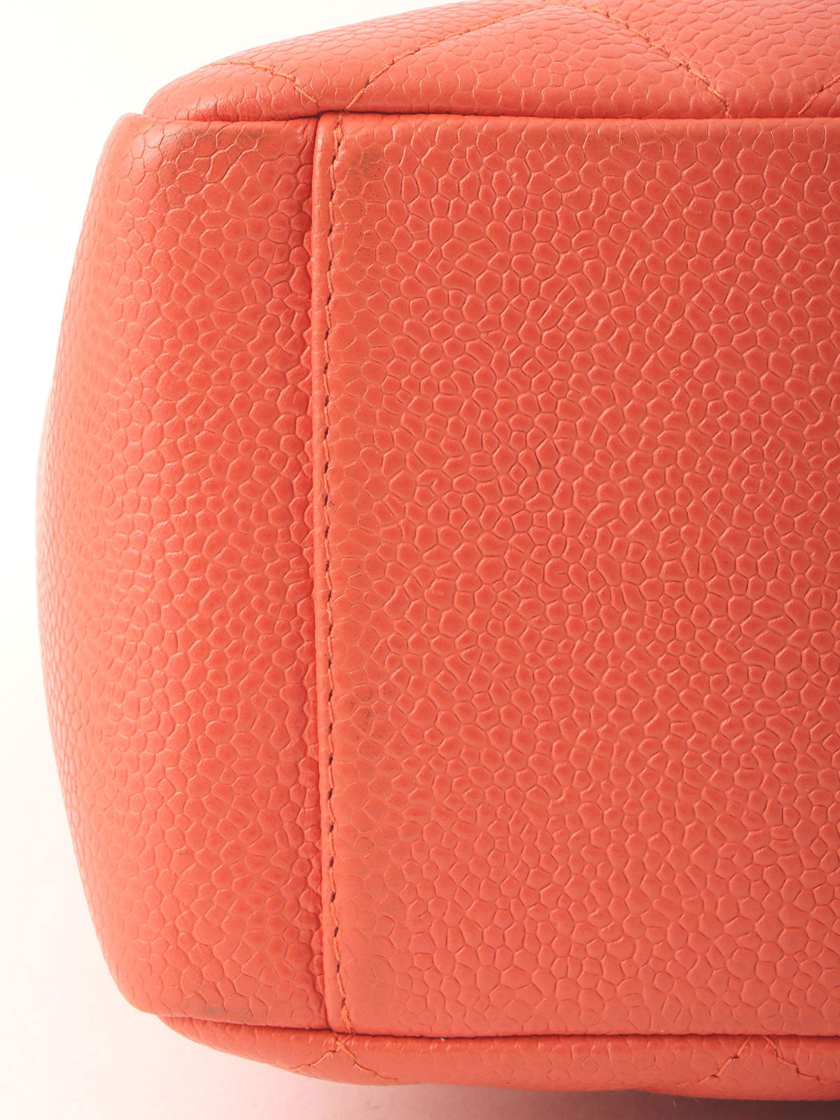 2003年頃製 キャビアスキンCCマークステッチチェーントートバッグ サーモンピンク