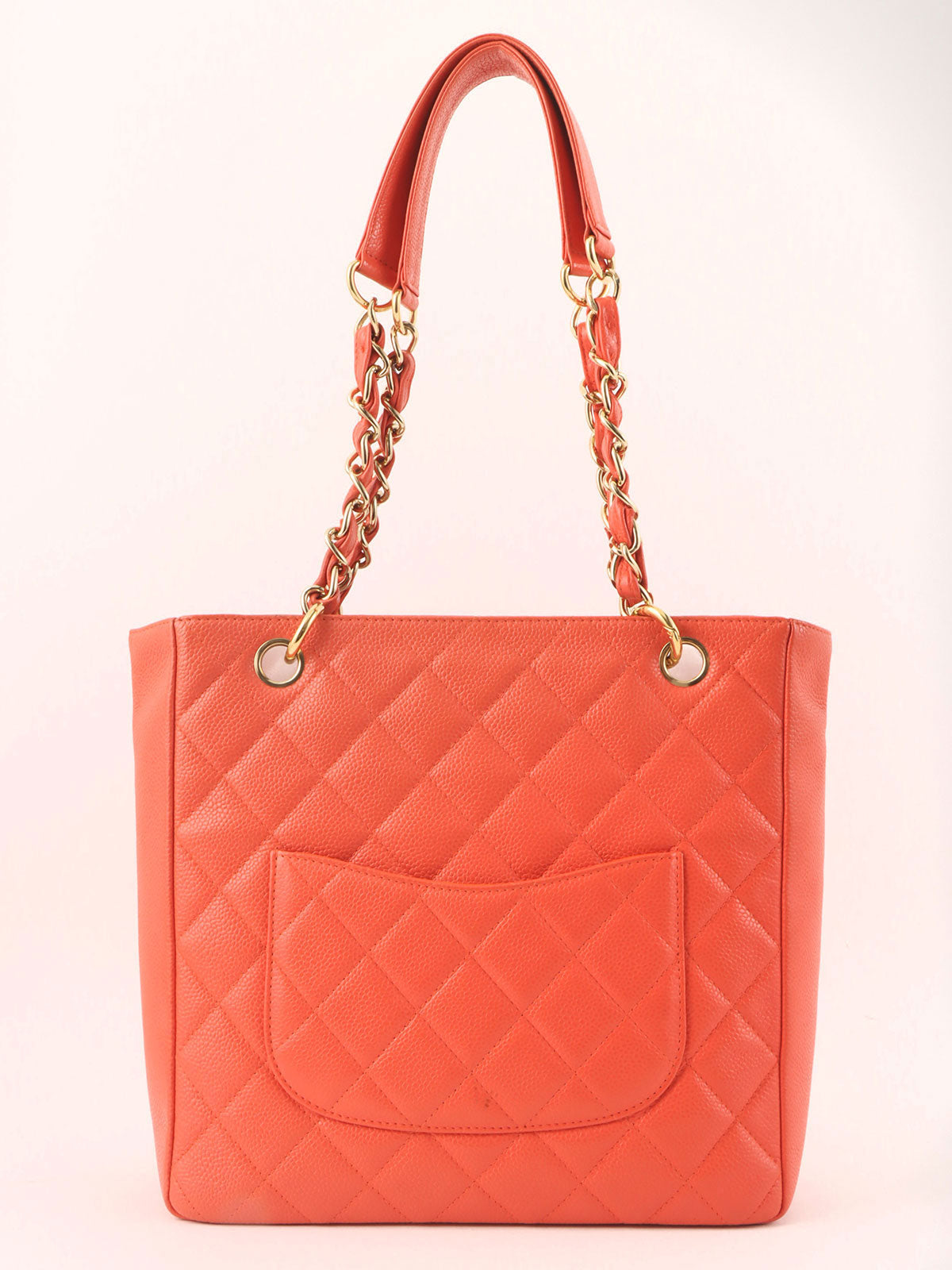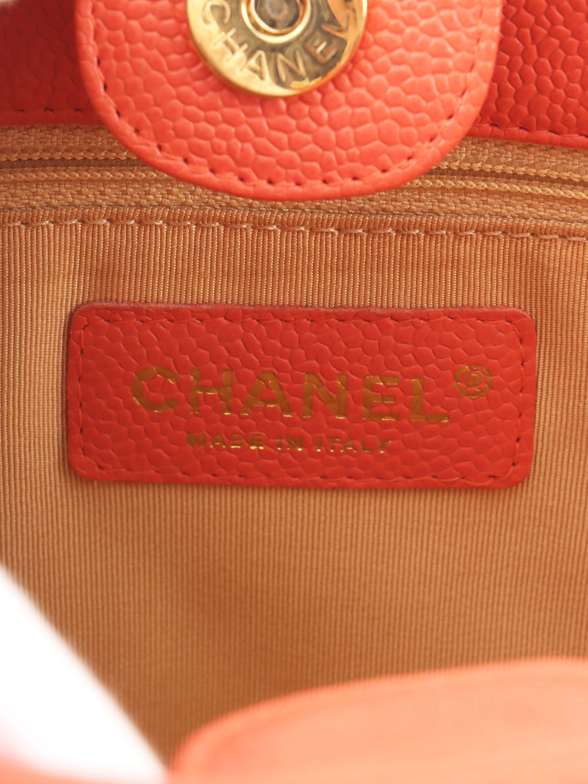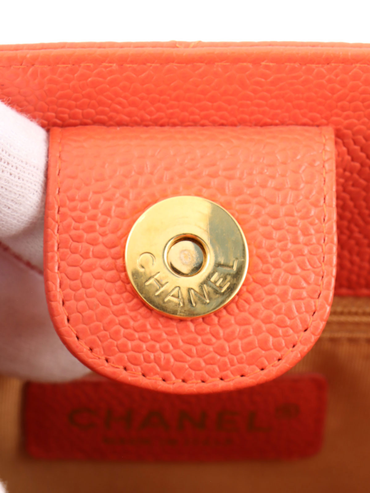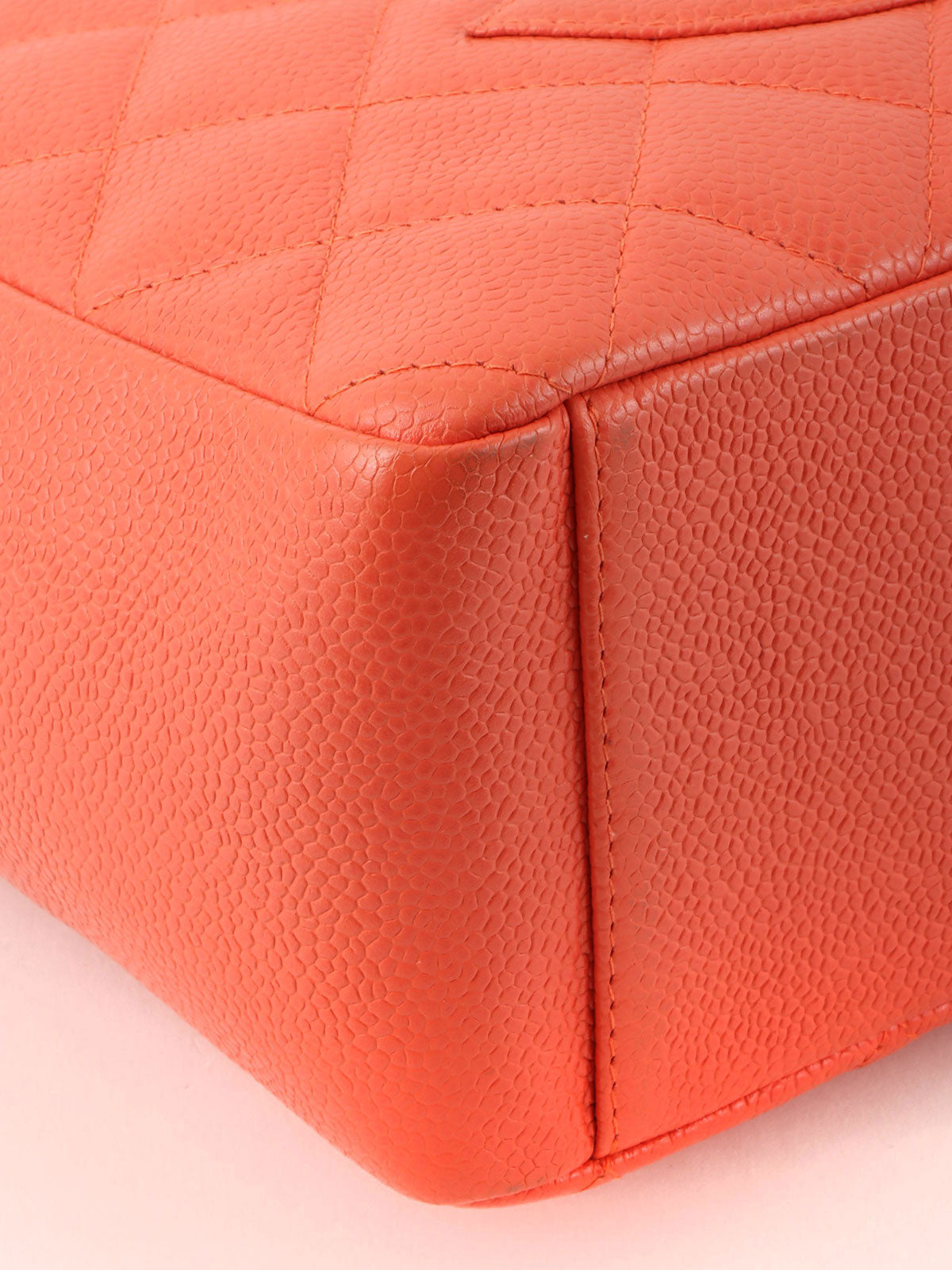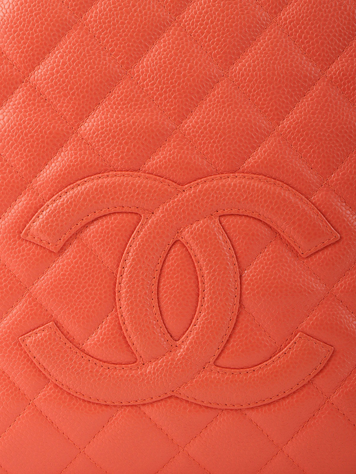2003年頃製 キャビアスキンCCマークステッチチェーントートバッグ サーモンピンク