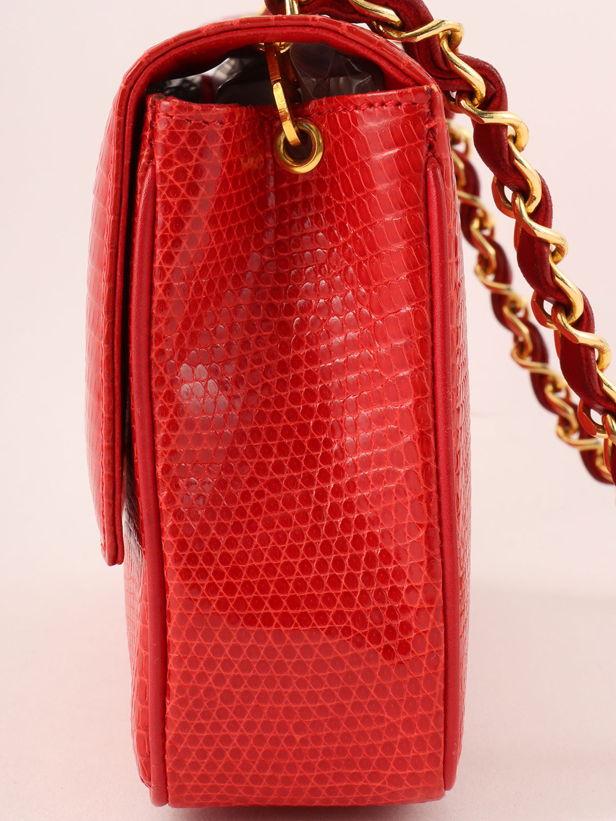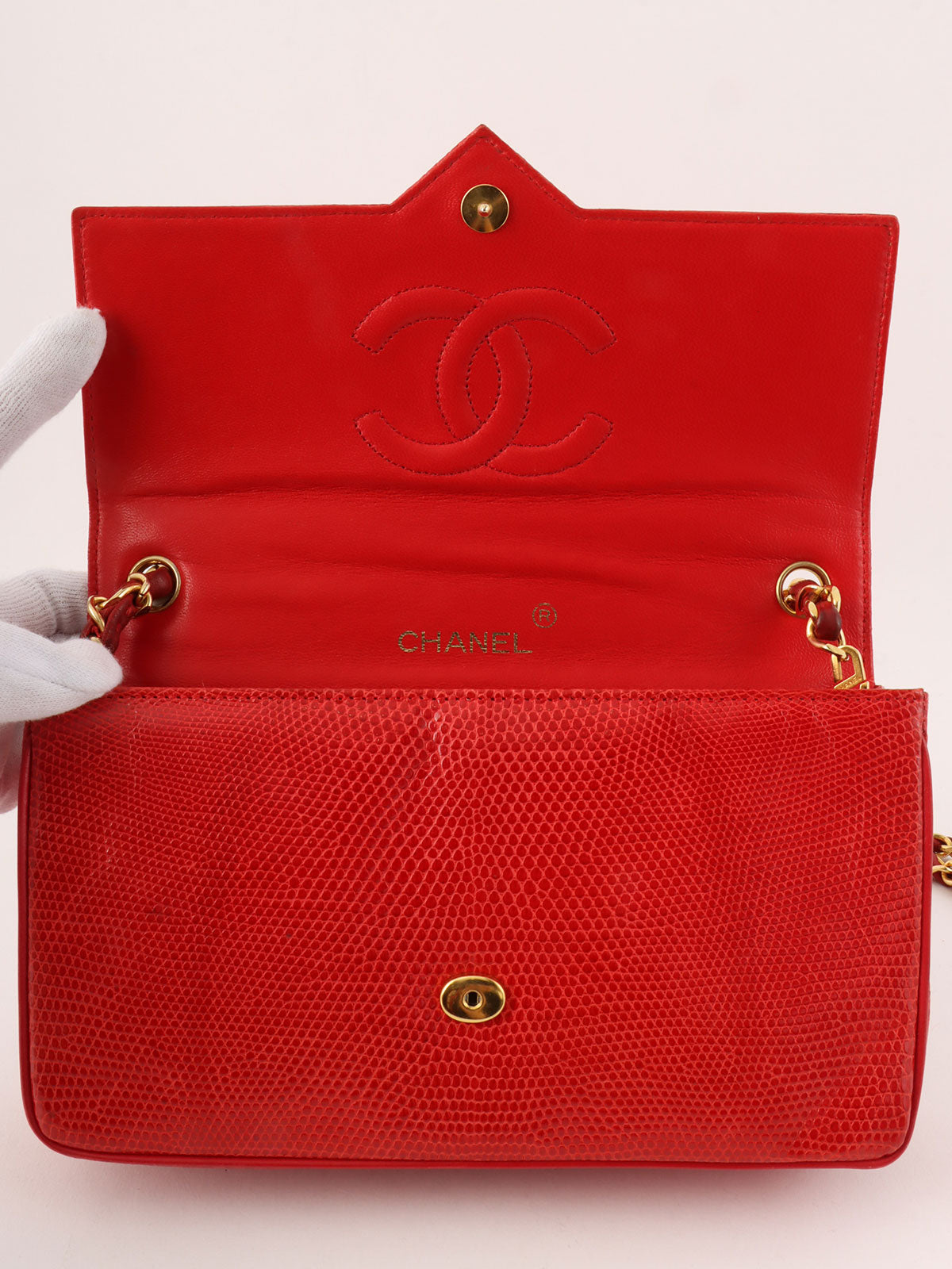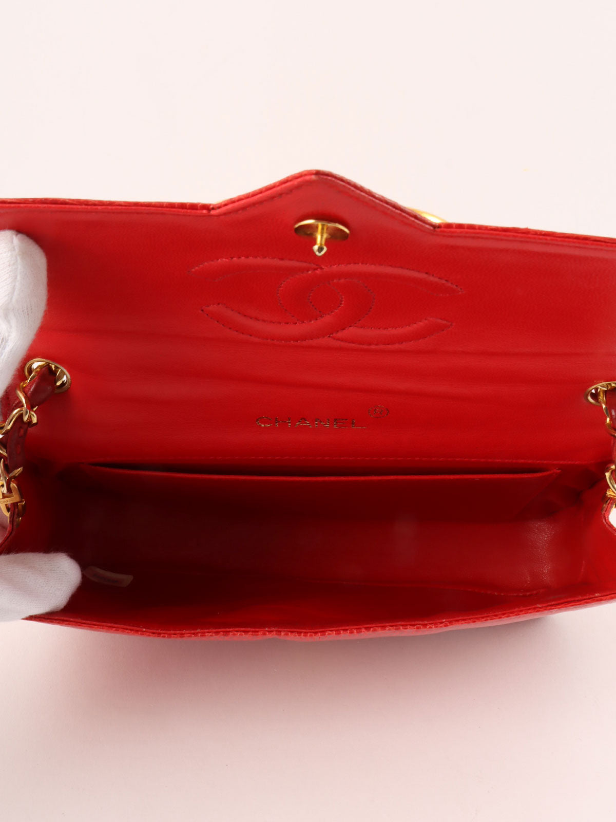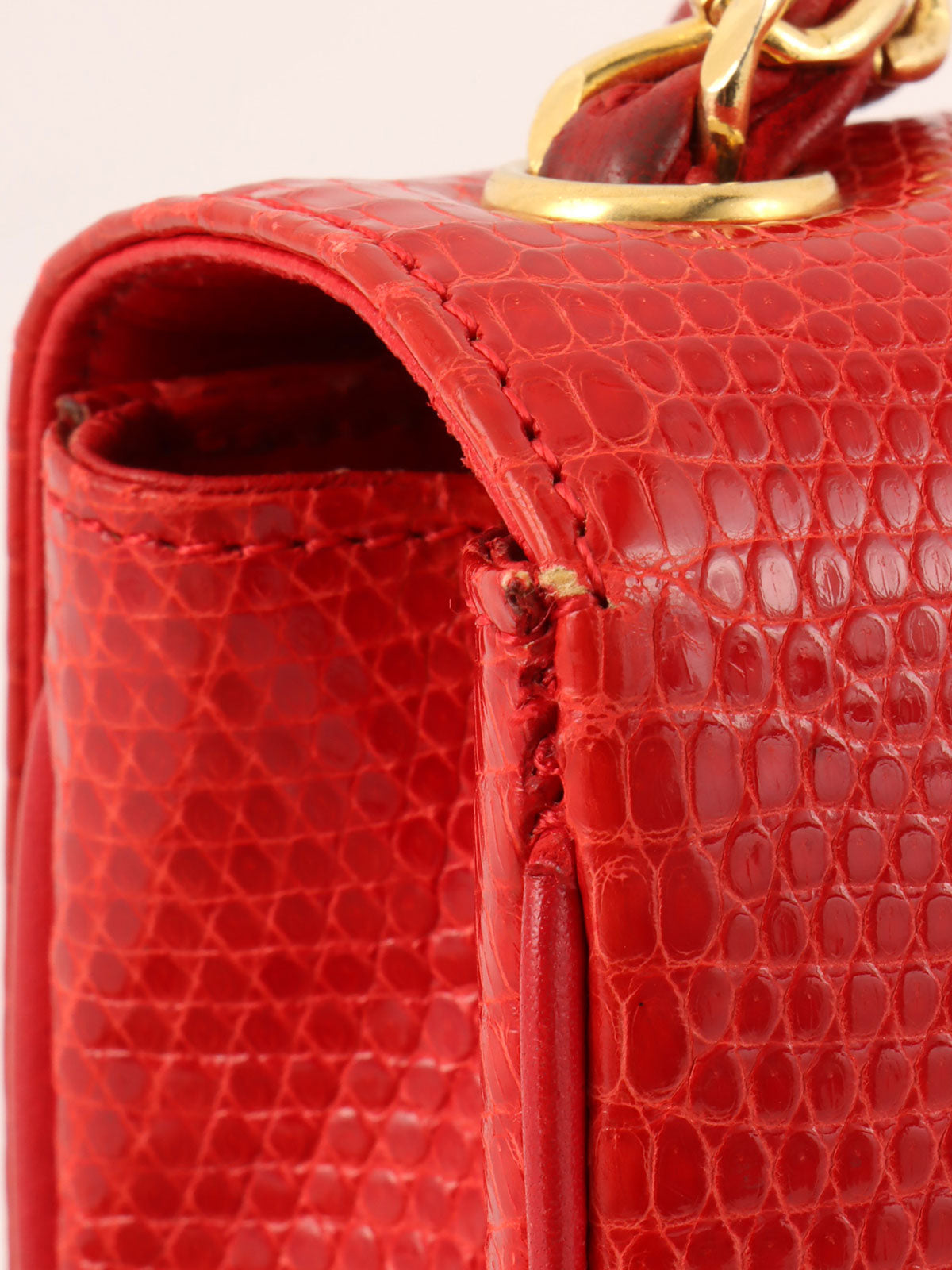1985~1990年頃製 リザードCCマークプレートショルダーバッグ レッド