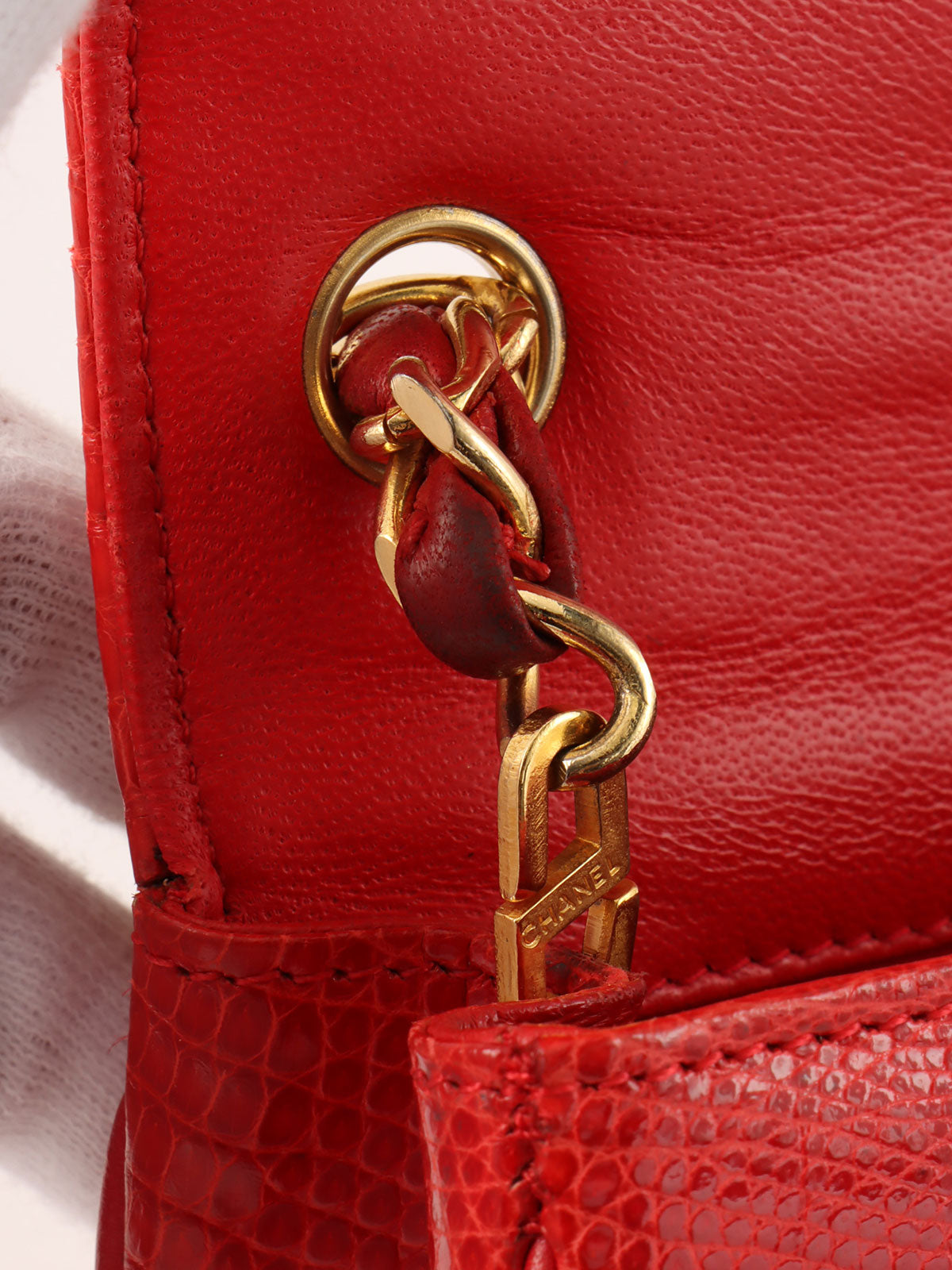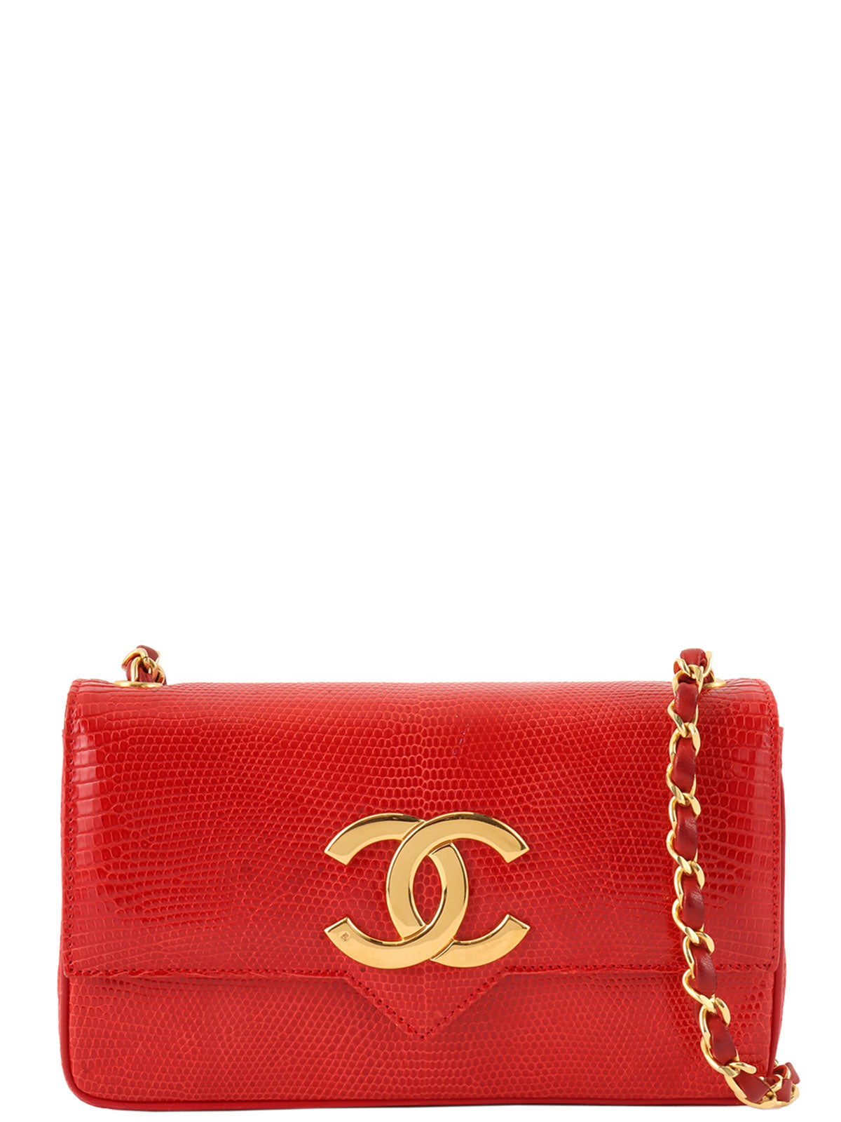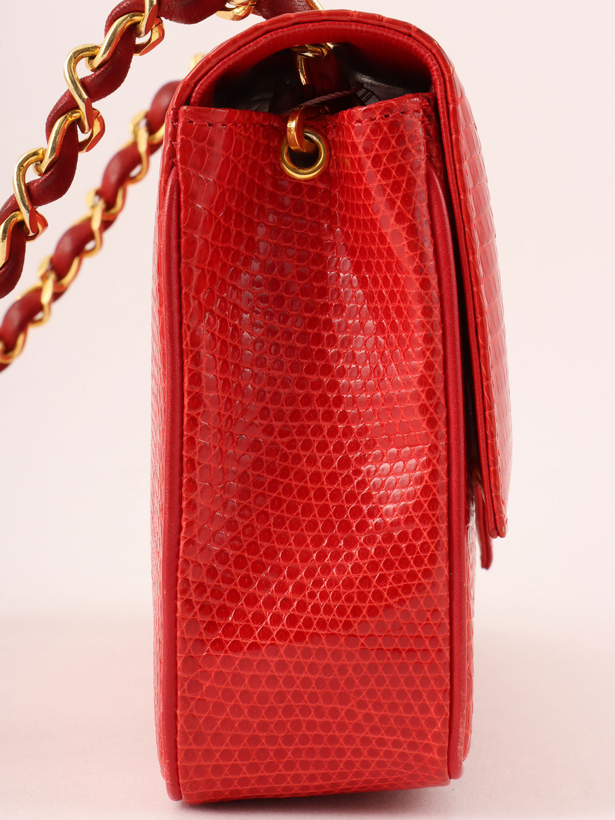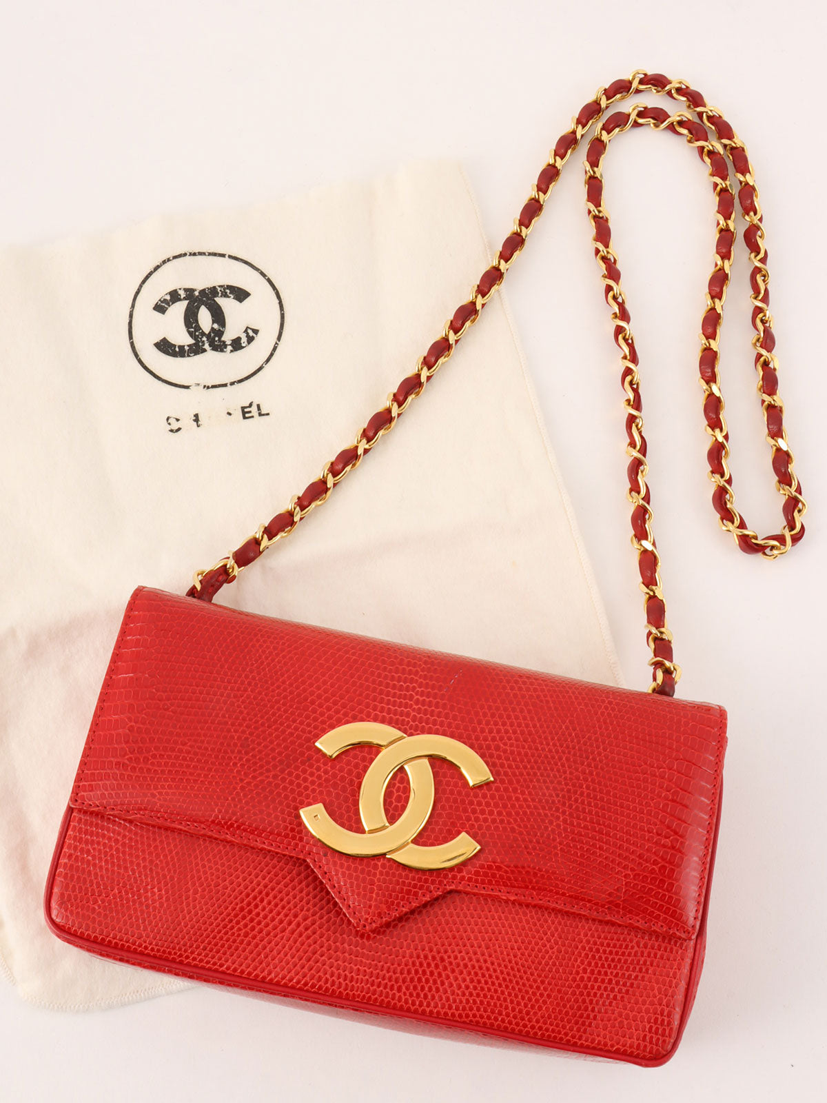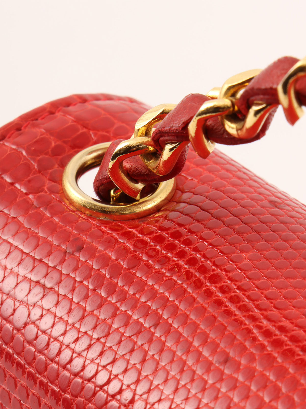 1985~1990年頃製 リザードCCマークプレートショルダーバッグ レッド