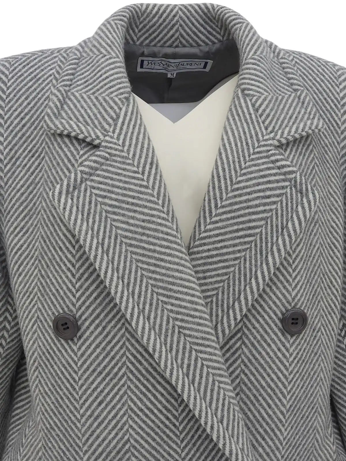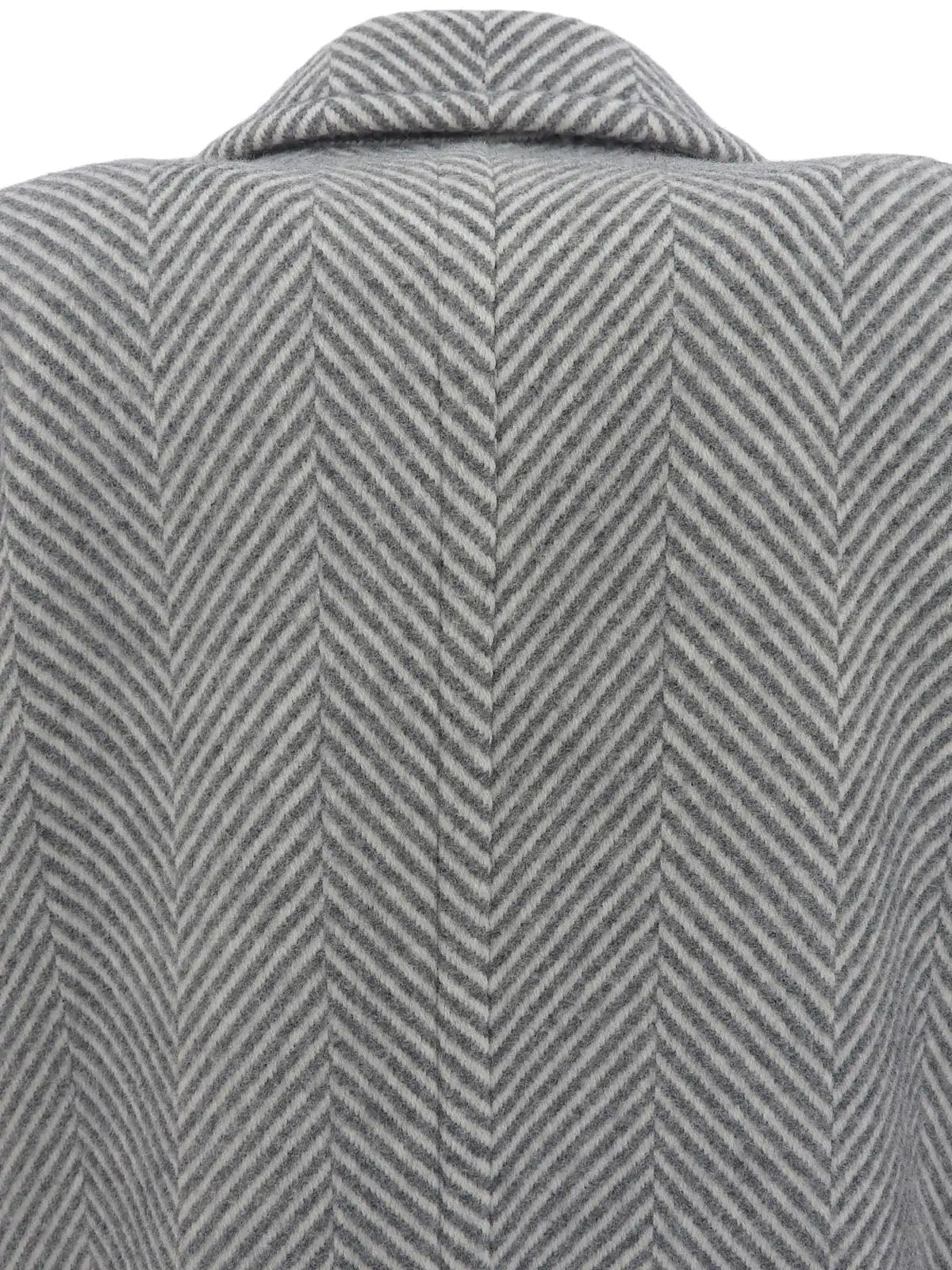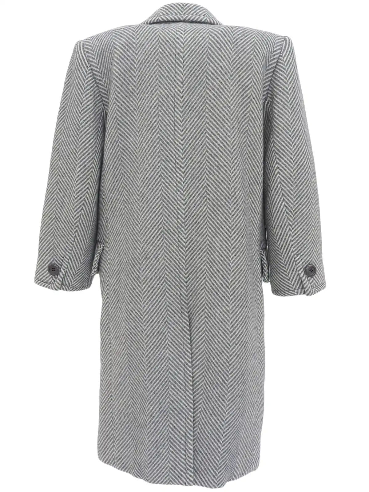 ヘリンボーンパターンダブルブレストロングコート グレー/ホワイト