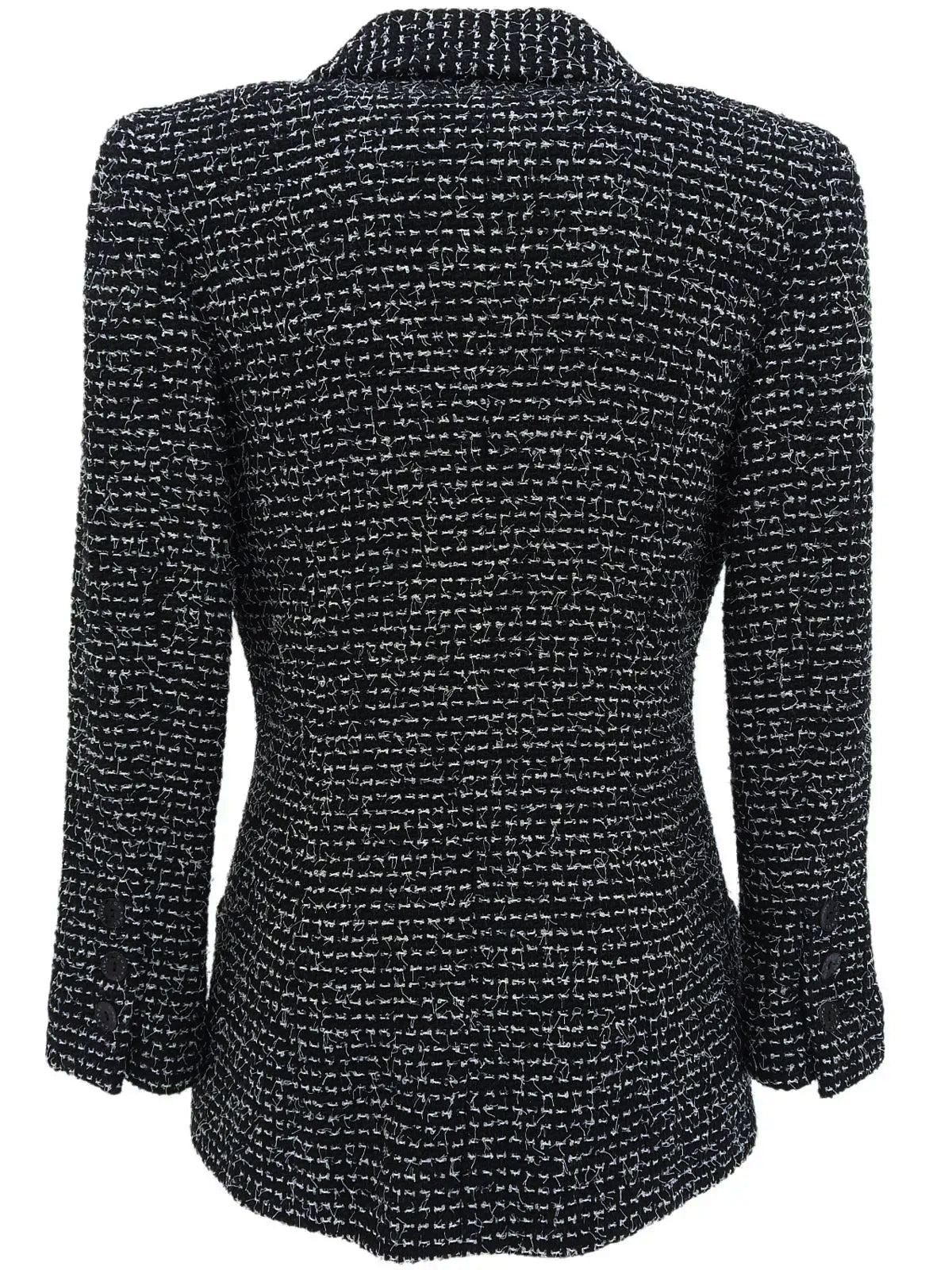 2003年製 ツイードロゴボタンカメリアコサージュジャケット ブラック/ホワイト