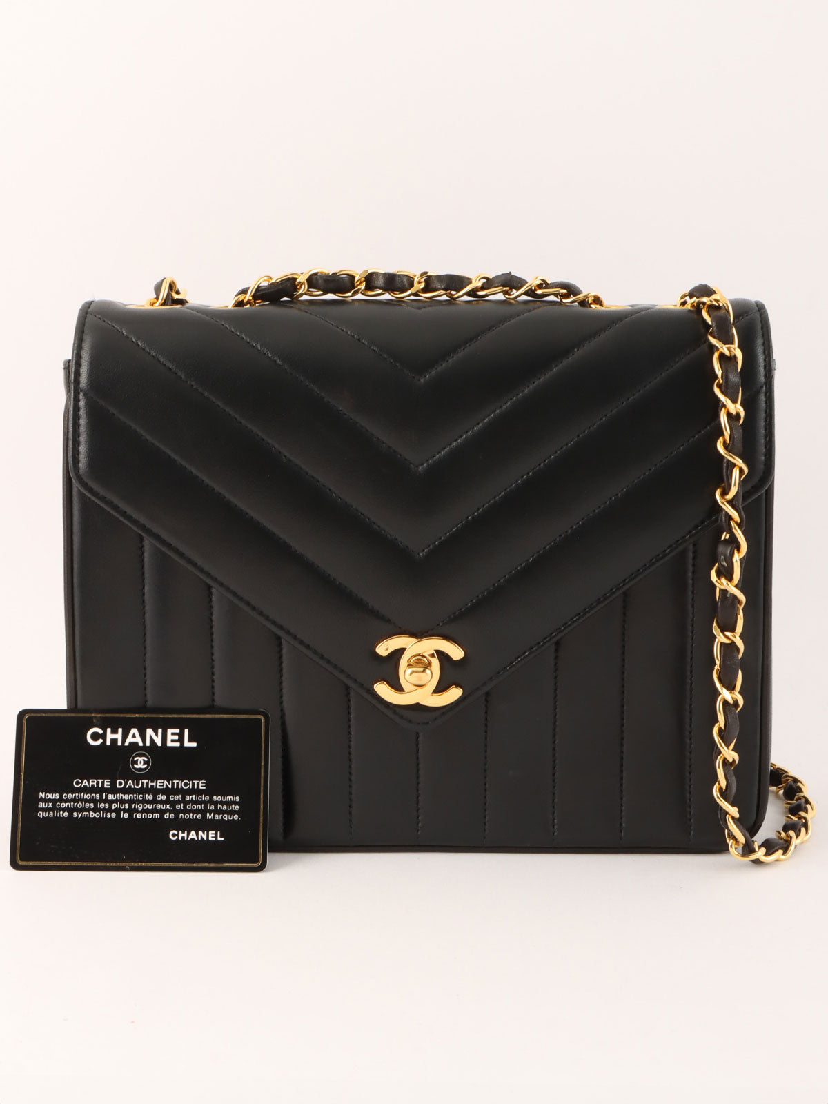 1992年頃製 シェブロンCCターンロックチェーンショルダーバッグ ブラック