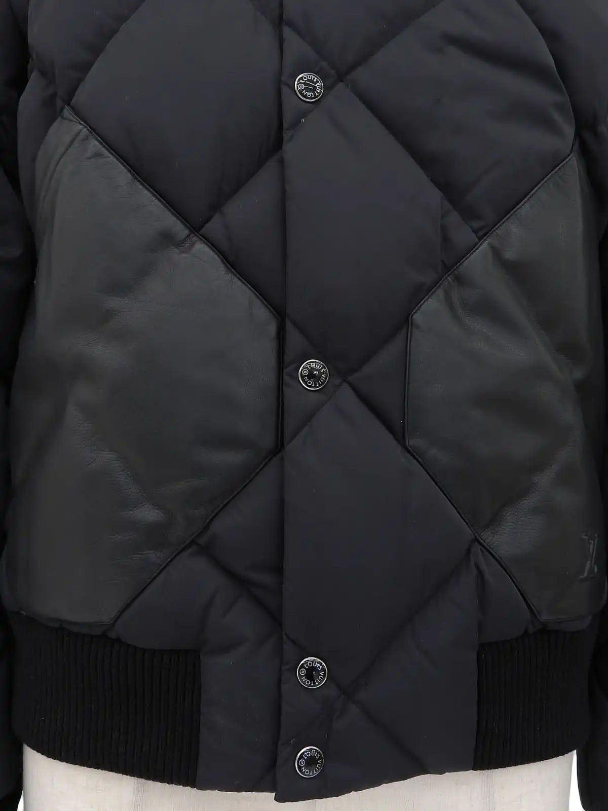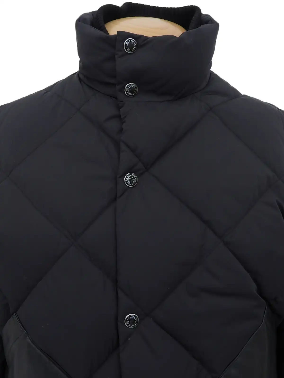 ナイロンレザーコンビロゴボタン2wayダウンジャケット ブラック