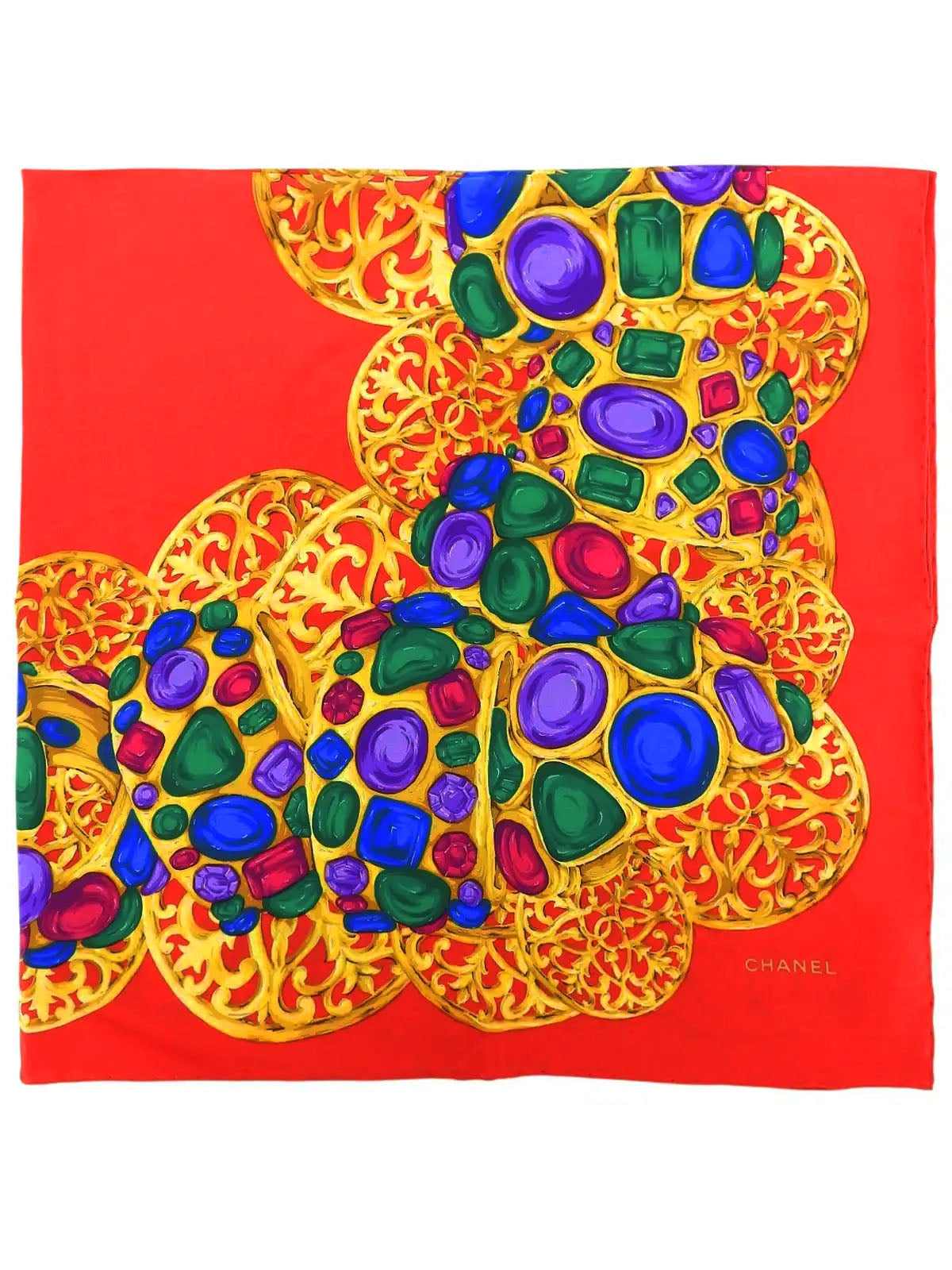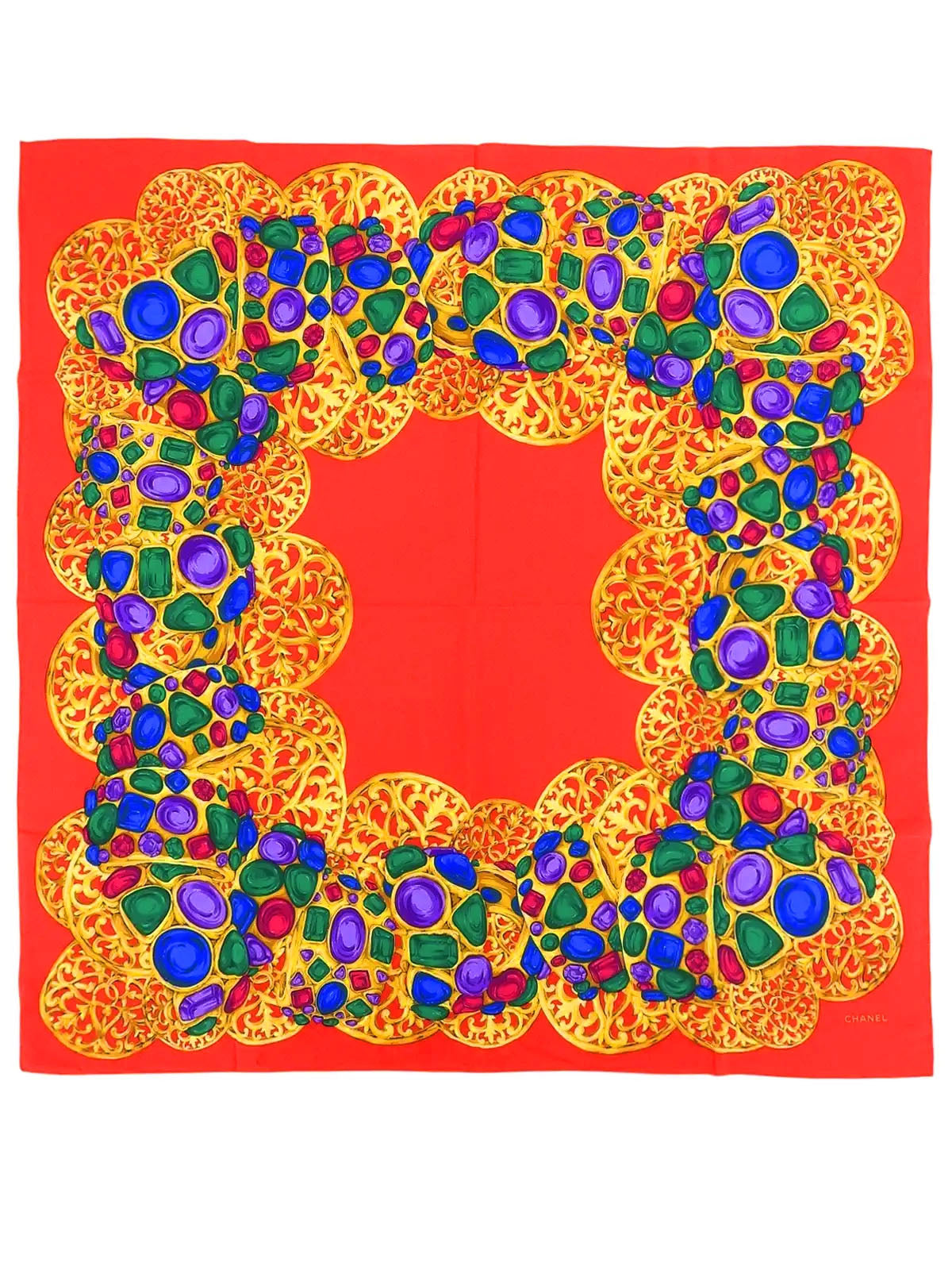グリポワジュエリーパターンスカーフ レッド/マルチ