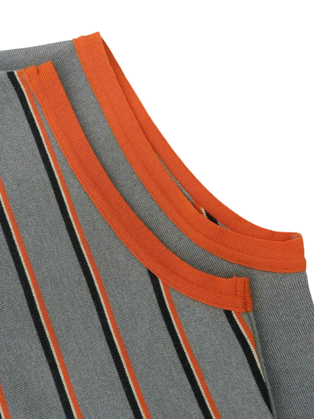 バイカラーロゴワッペンニットベスト グレー/オレンジ
