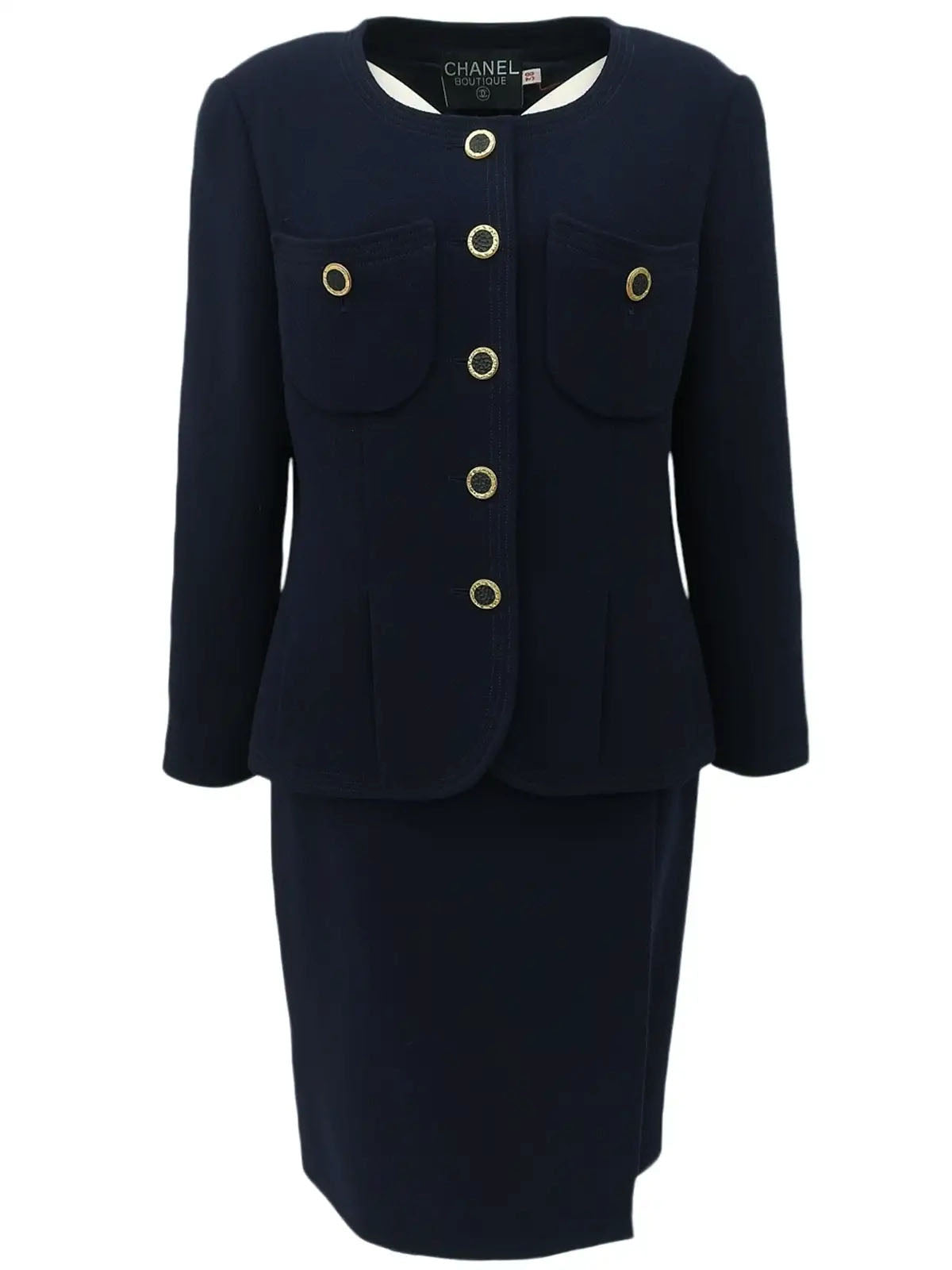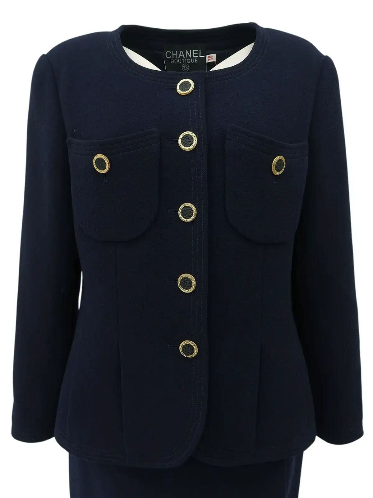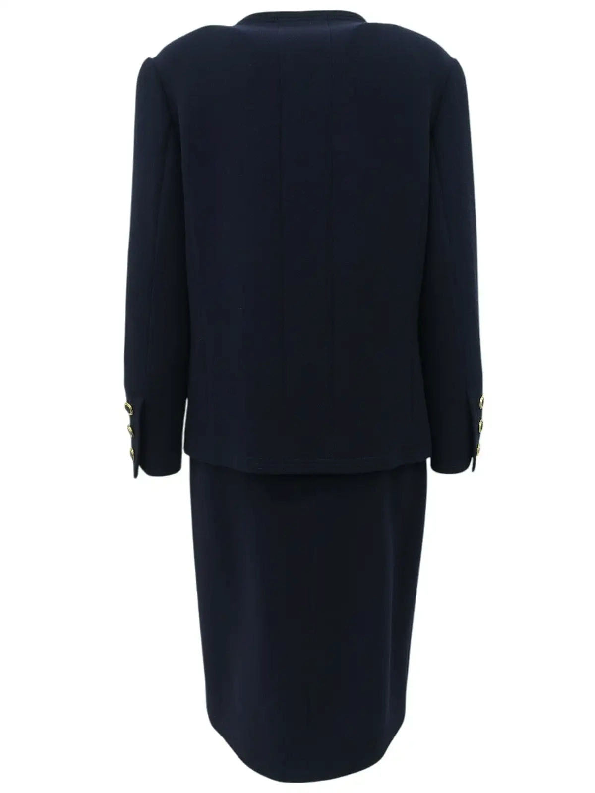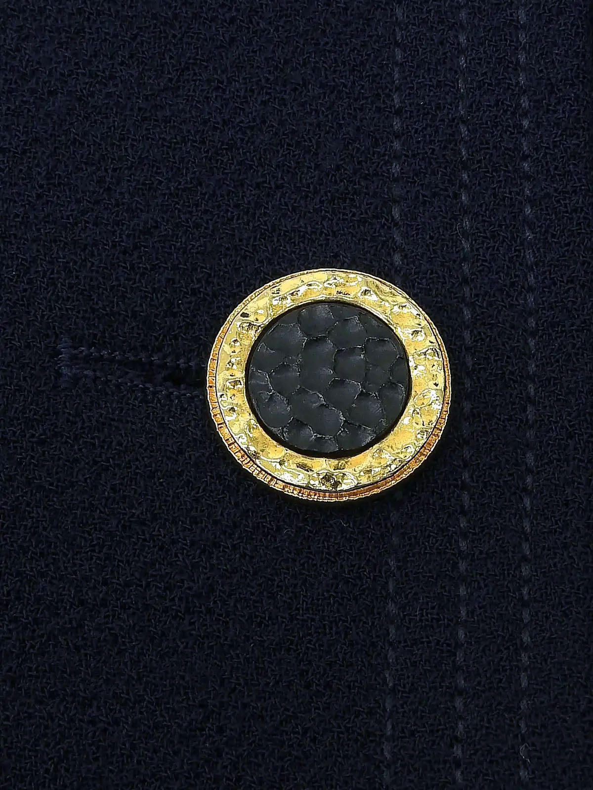 ウールデザインボタンノーカラーセットアップ ネイビー