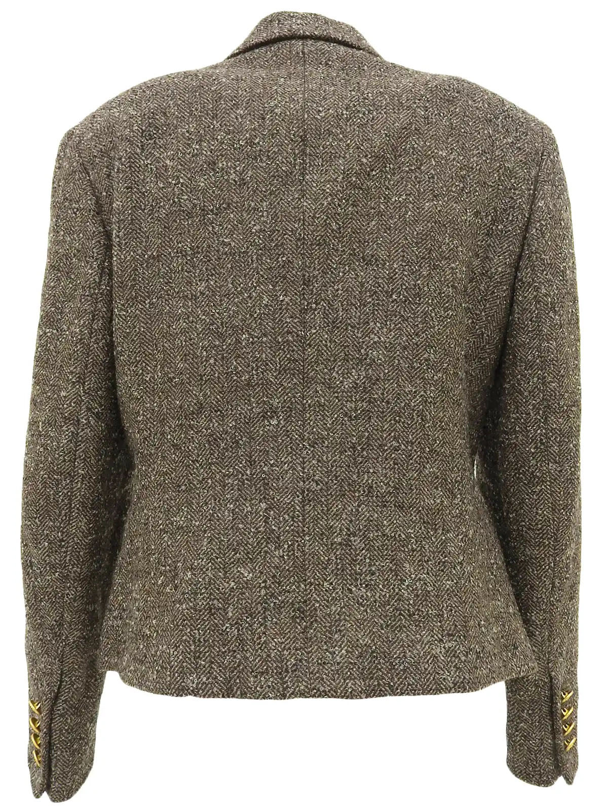 ヘリンボーンパターンヒールボタンジャケット ブラウン/グレー