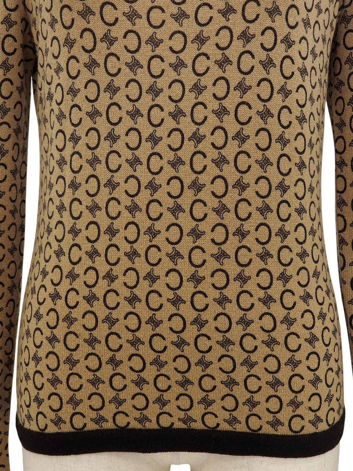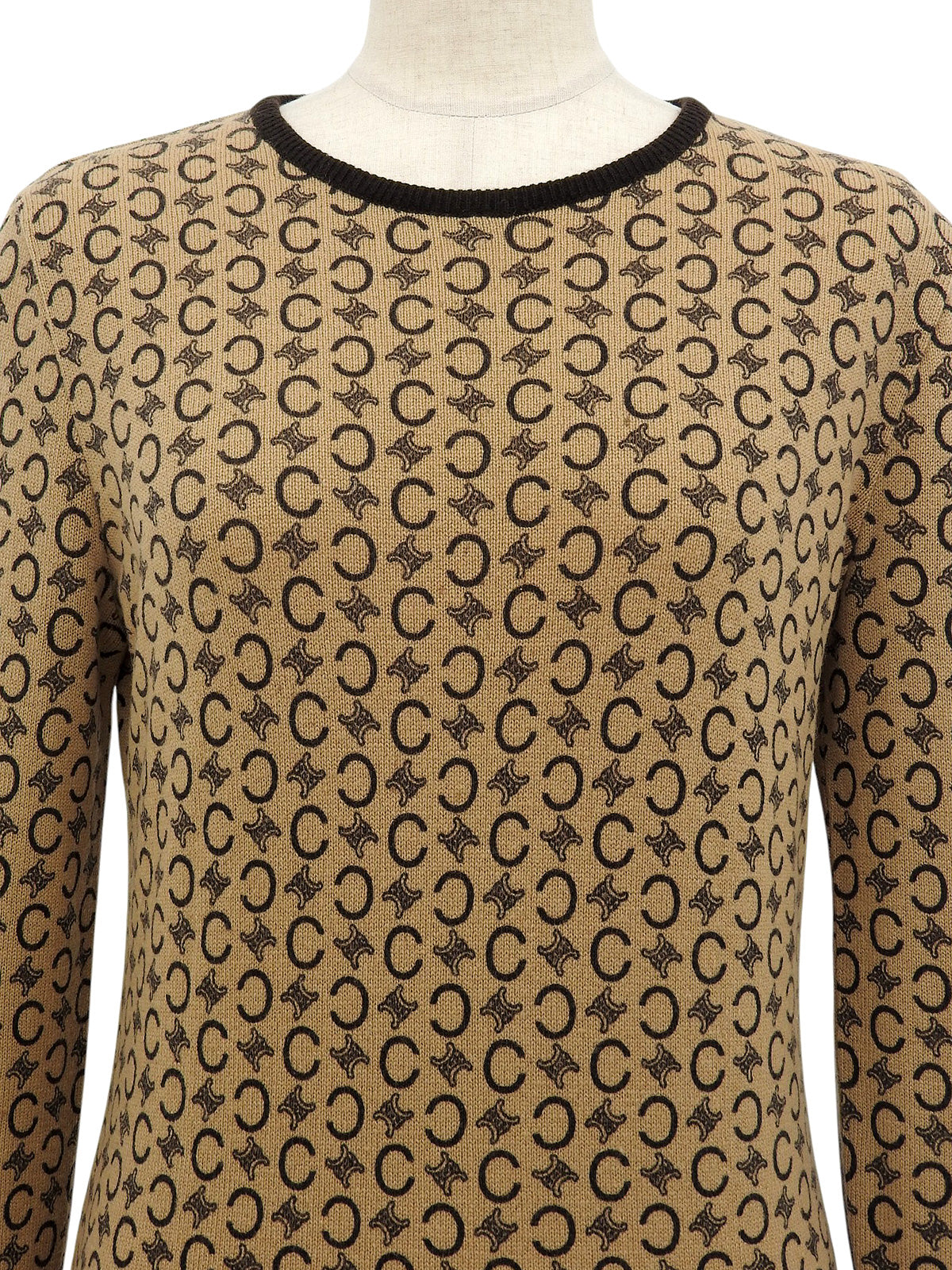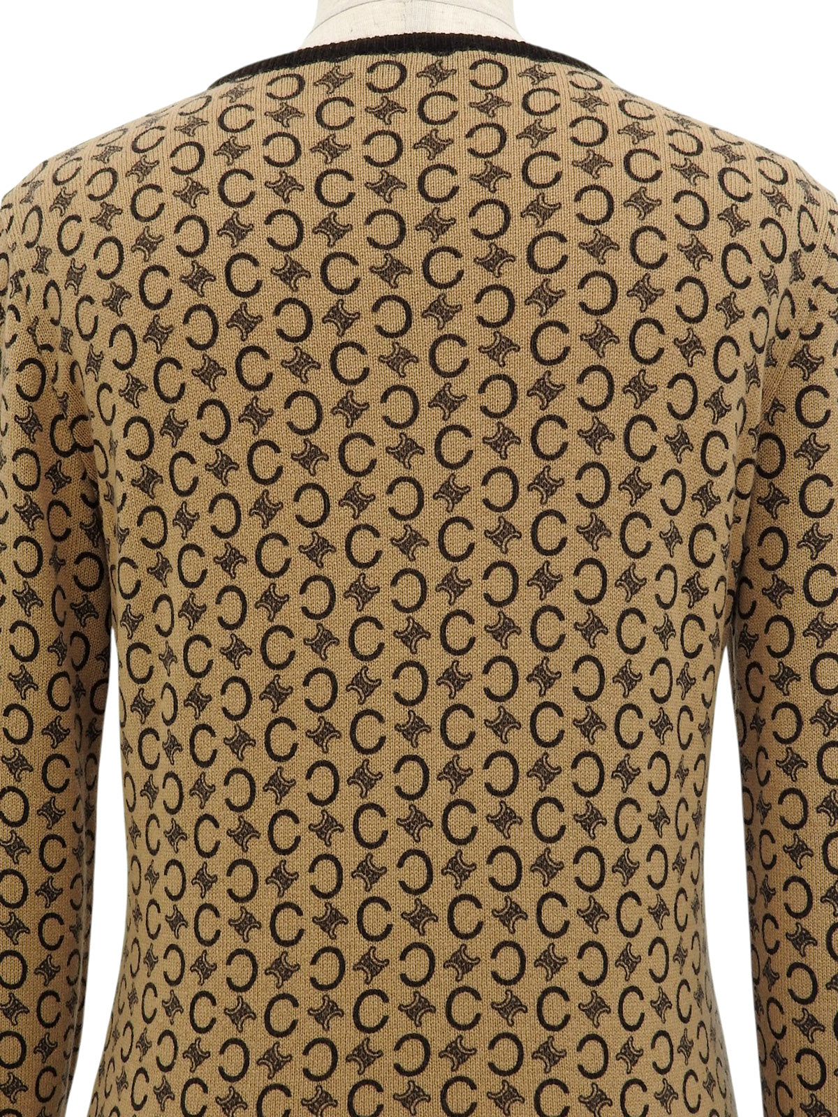 カシミアCマカダムパターンロングスリーブトップス ベージュ/ブラウン