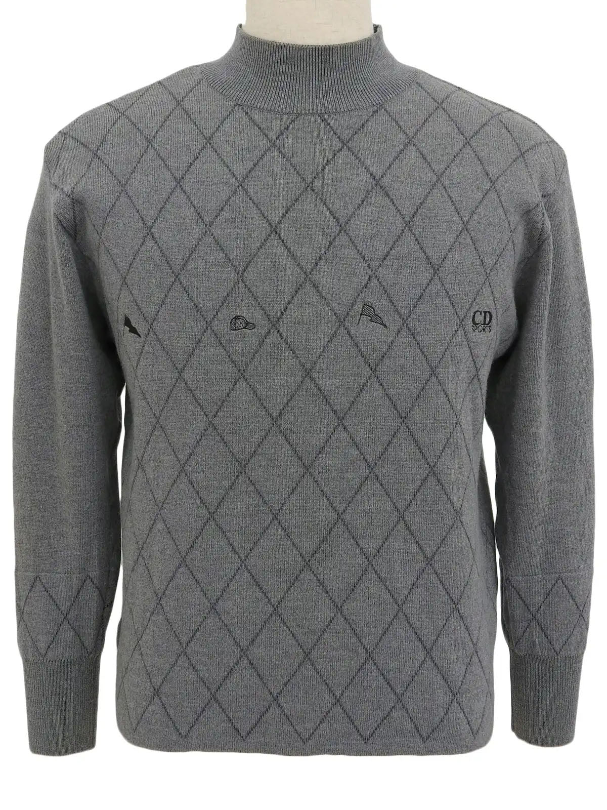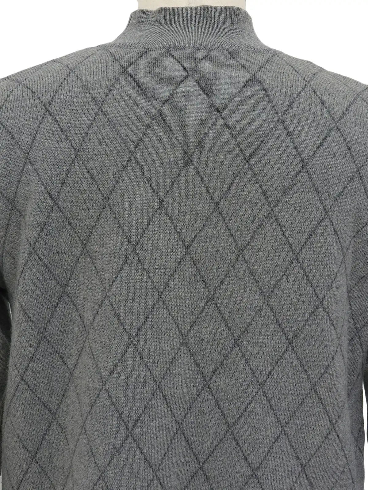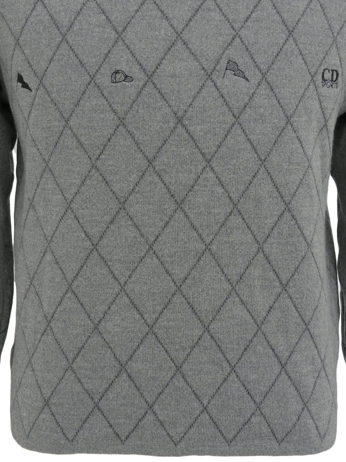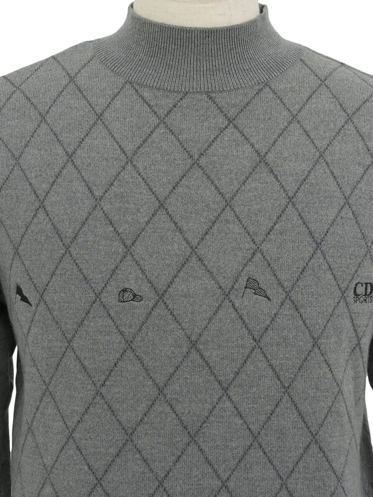 ダイヤパターンロゴ刺繍ニットセーター グレー