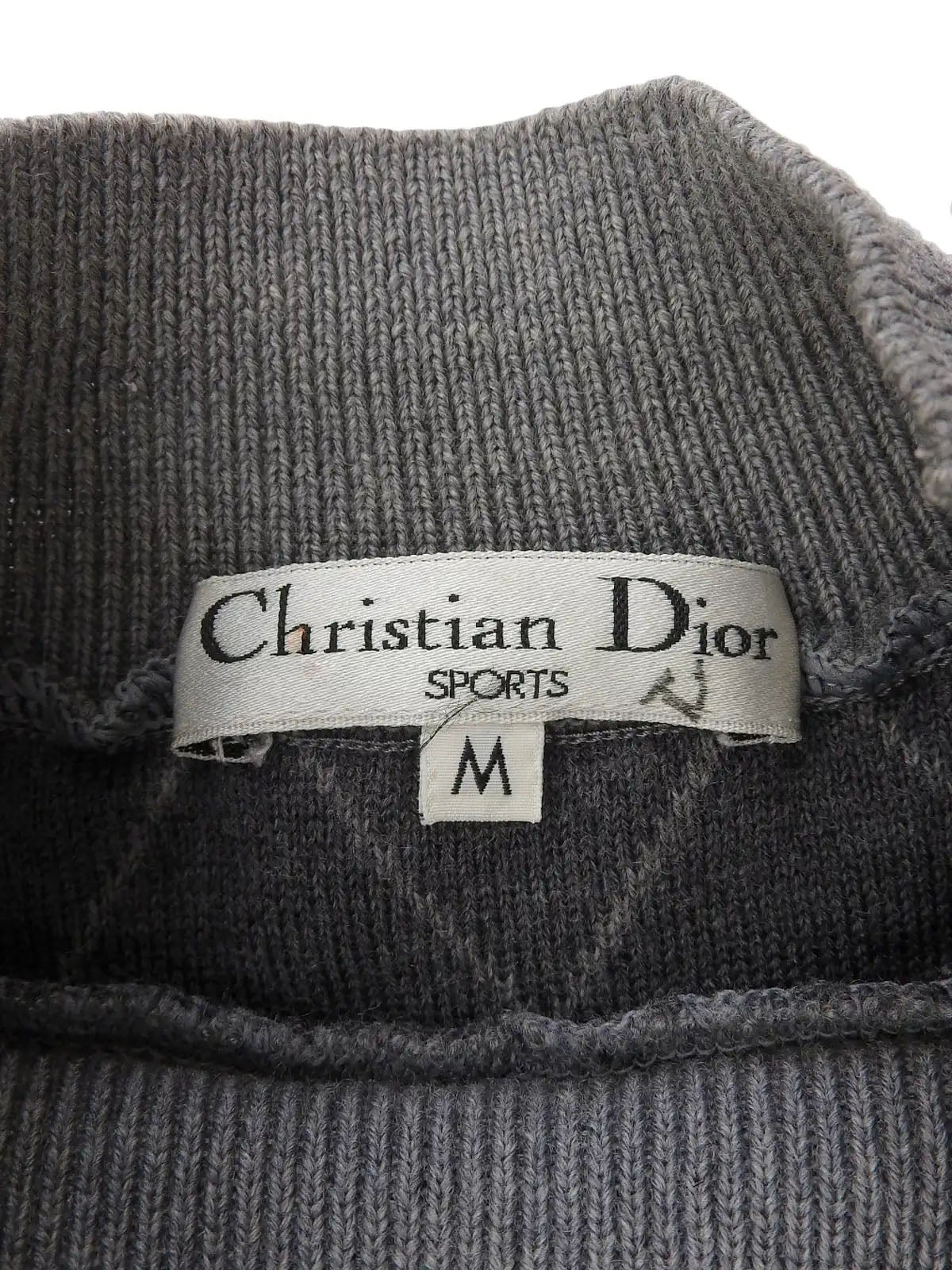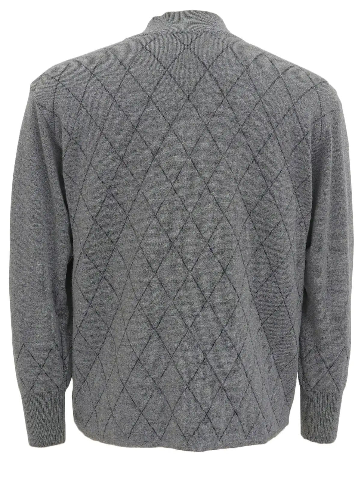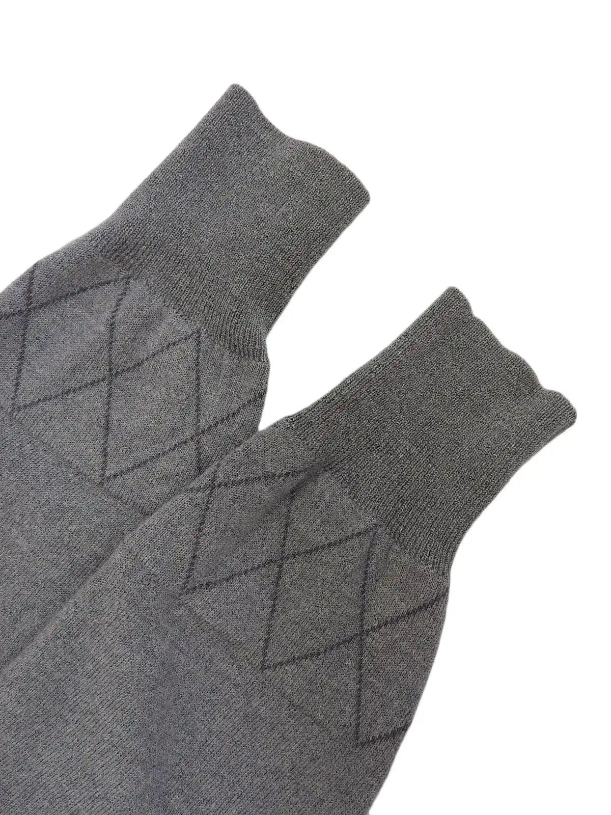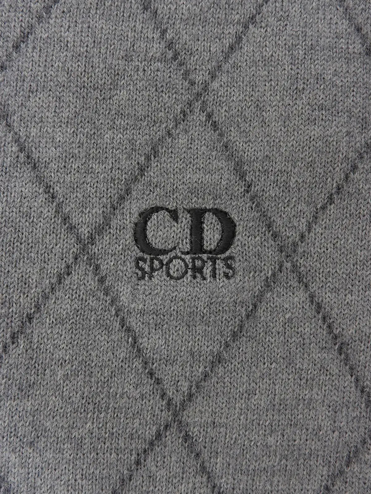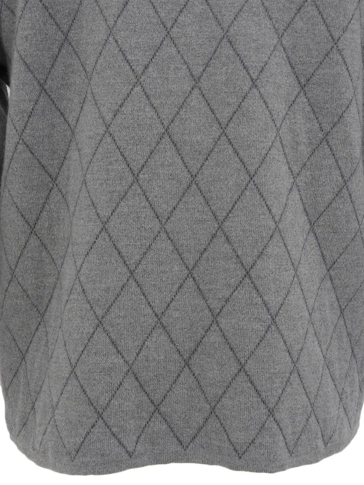 ダイヤパターンロゴ刺繍ニットセーター グレー