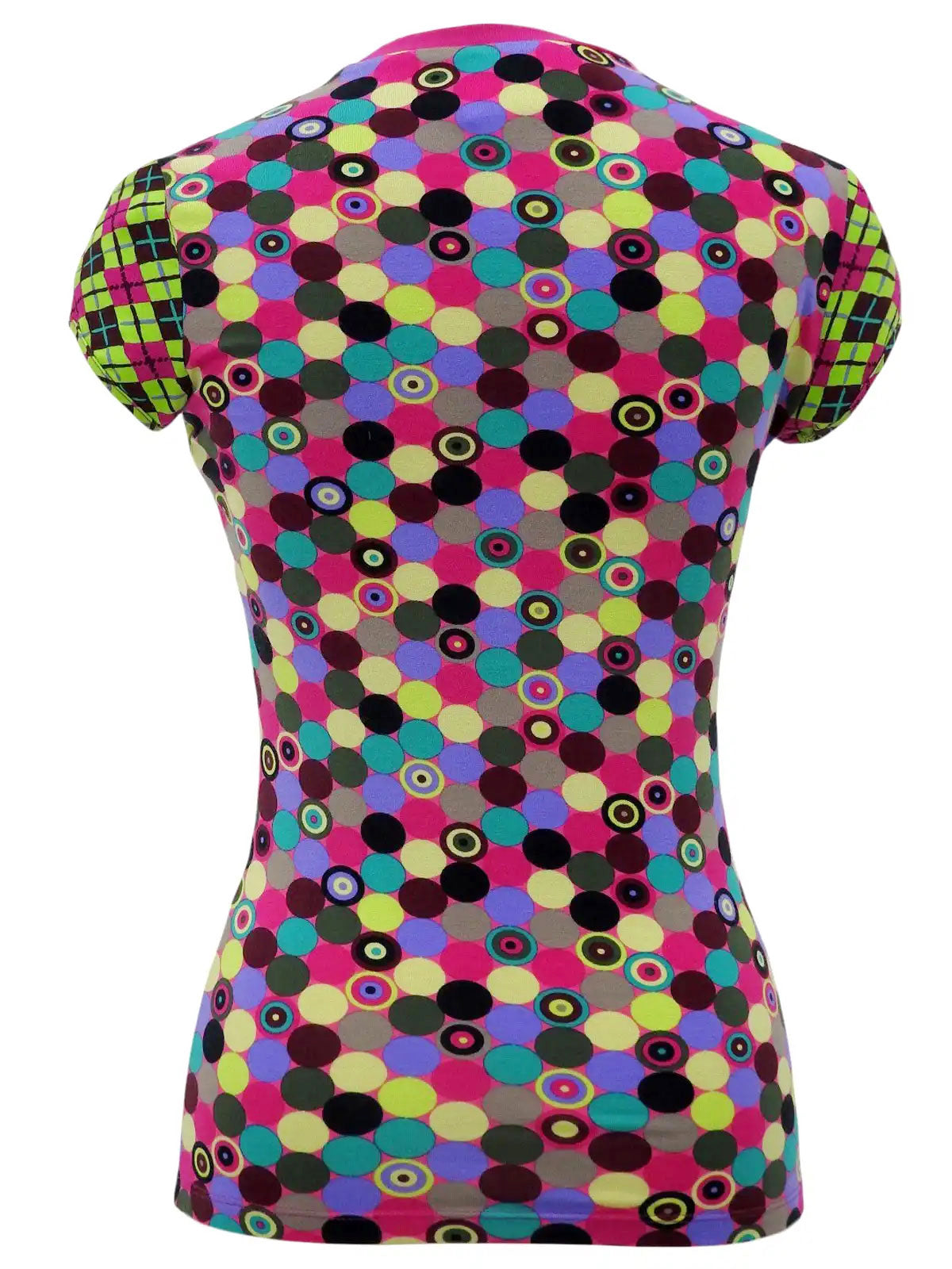 フラワーデザインパターンショートスリーブトップス ピンク/マルチ