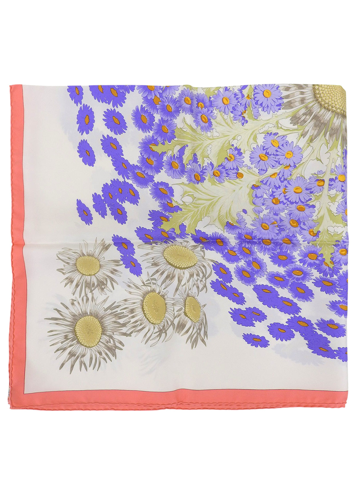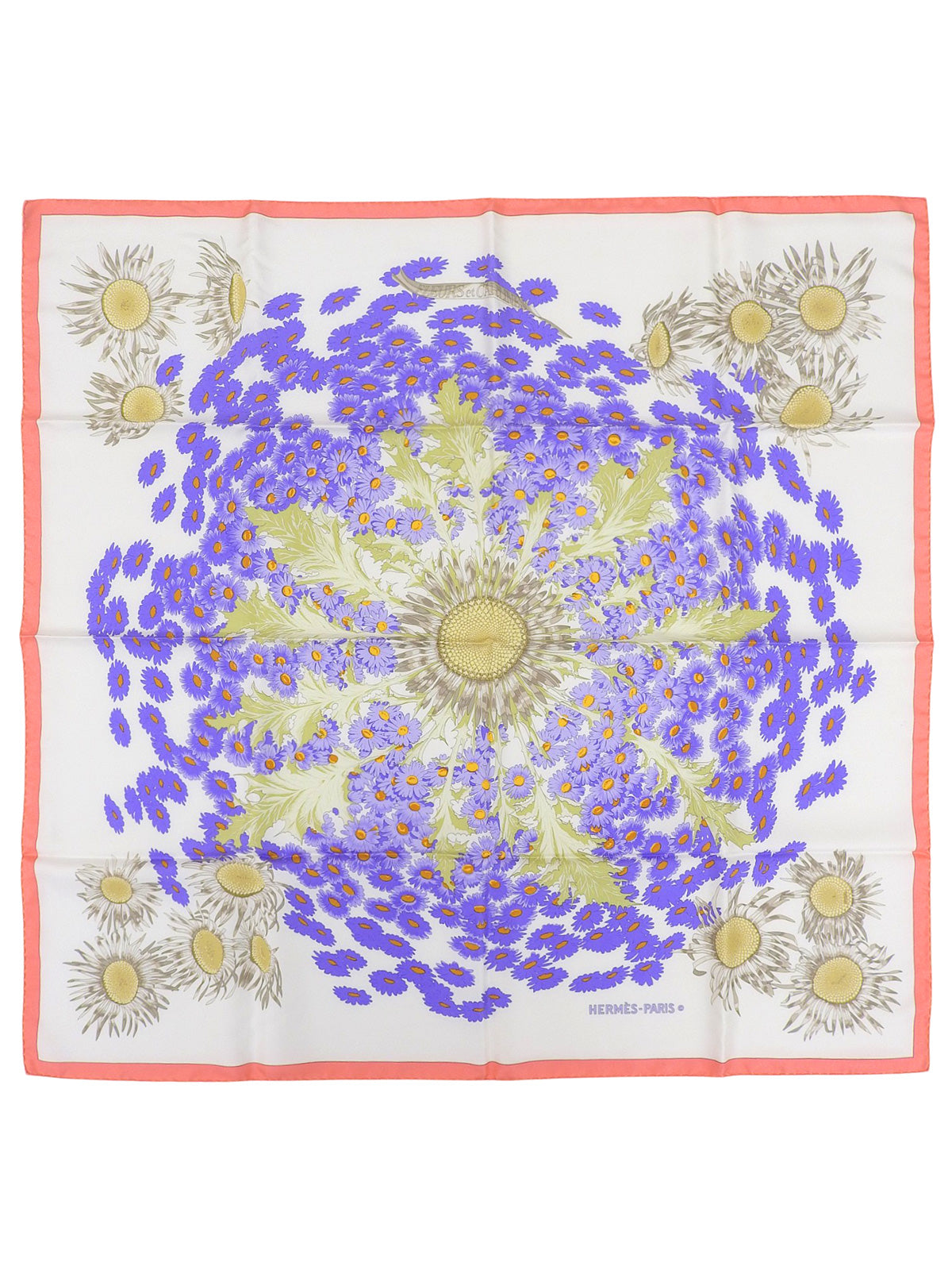 カレ90 FLEURS et CARLINESパターンスカーフ ホワイト/マルチ