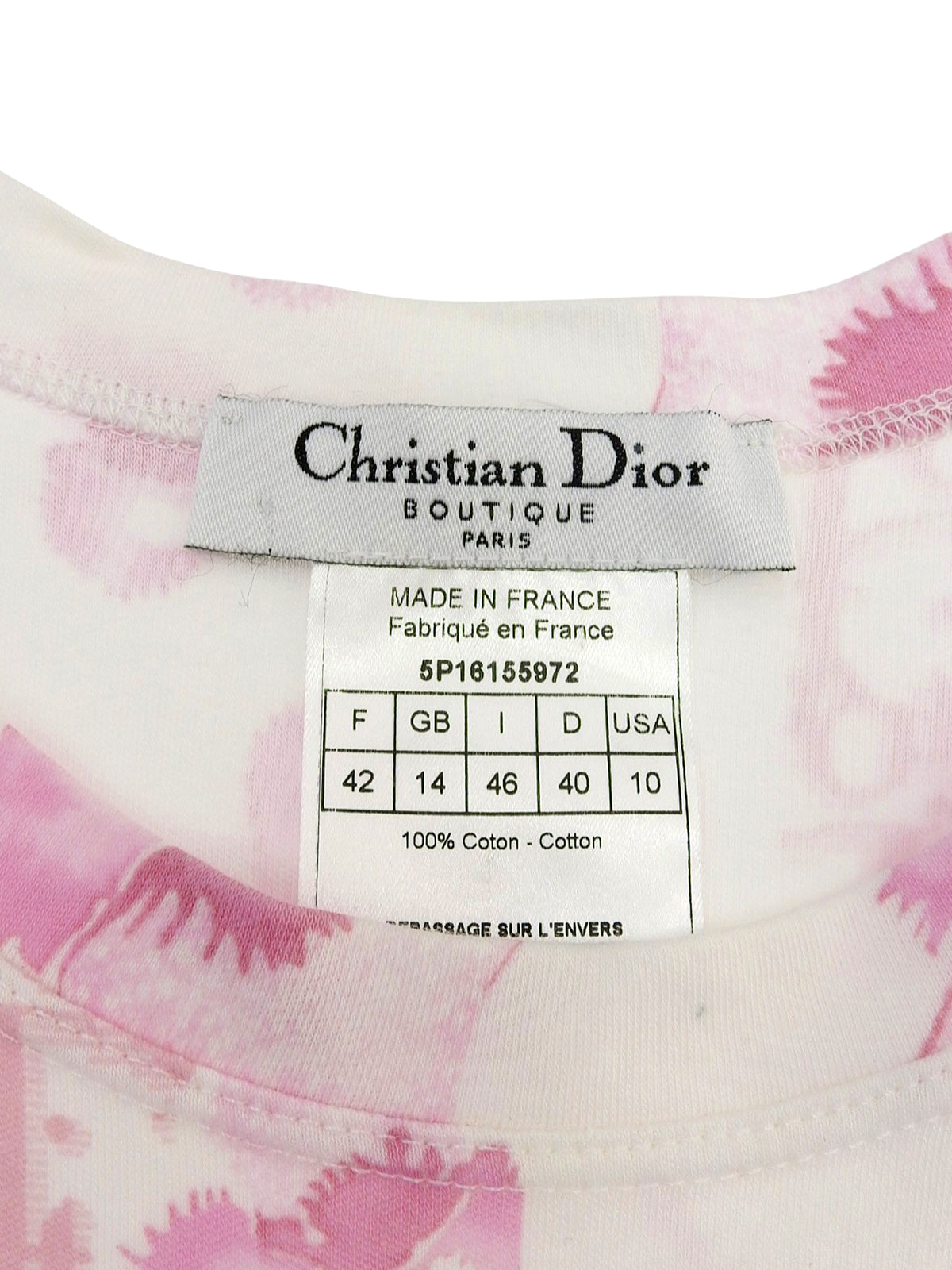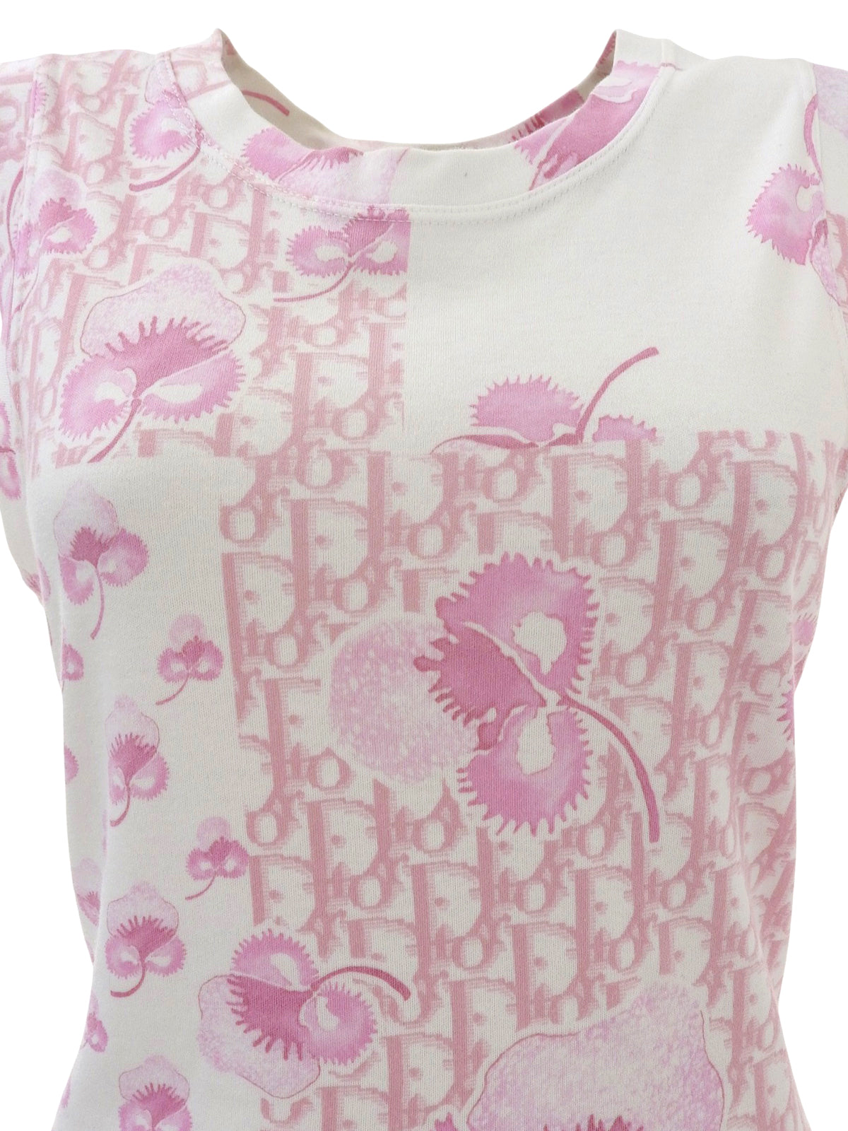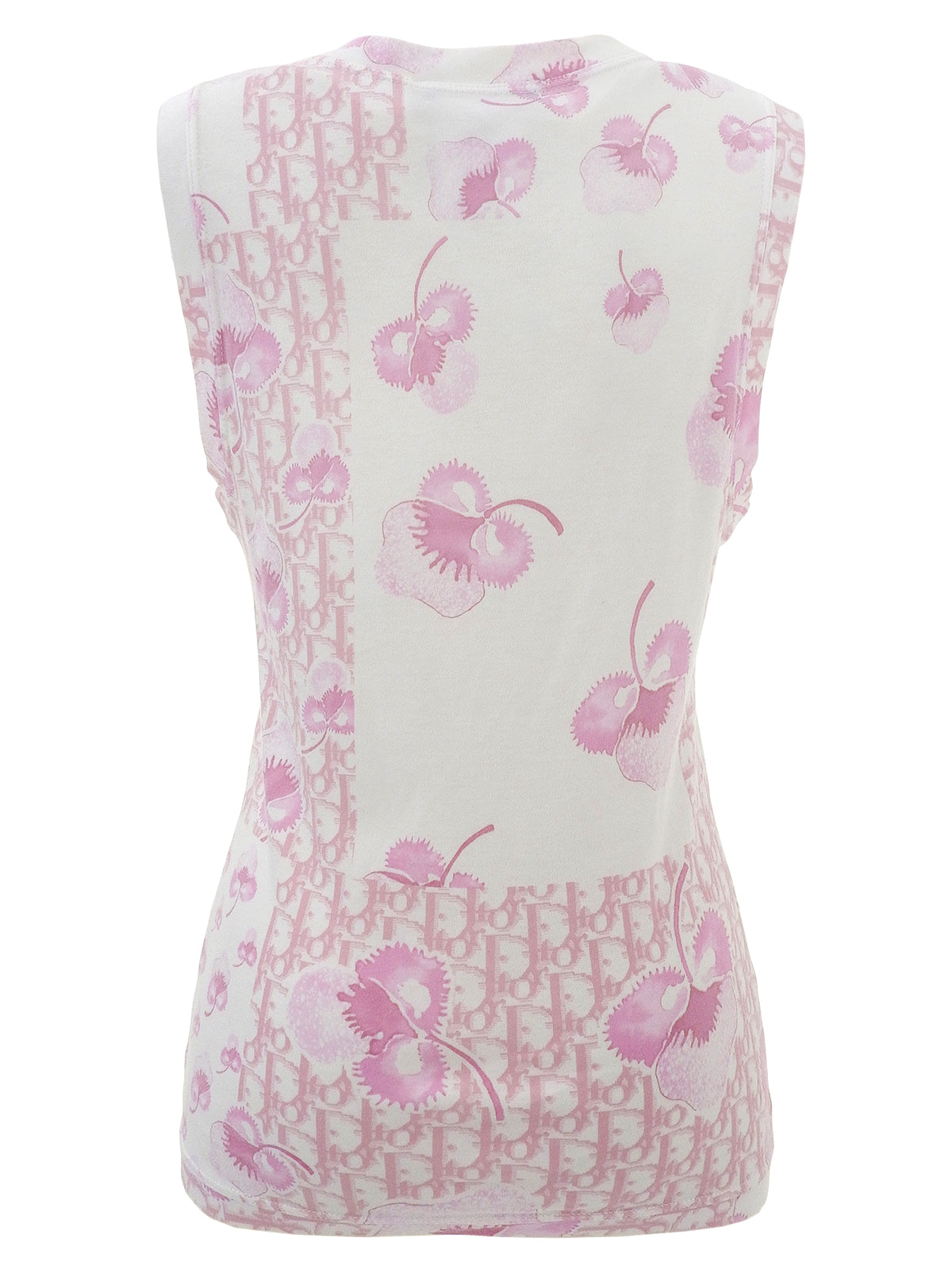 フラワートロッターパターンノースリーブトップス ピンク/ホワイト