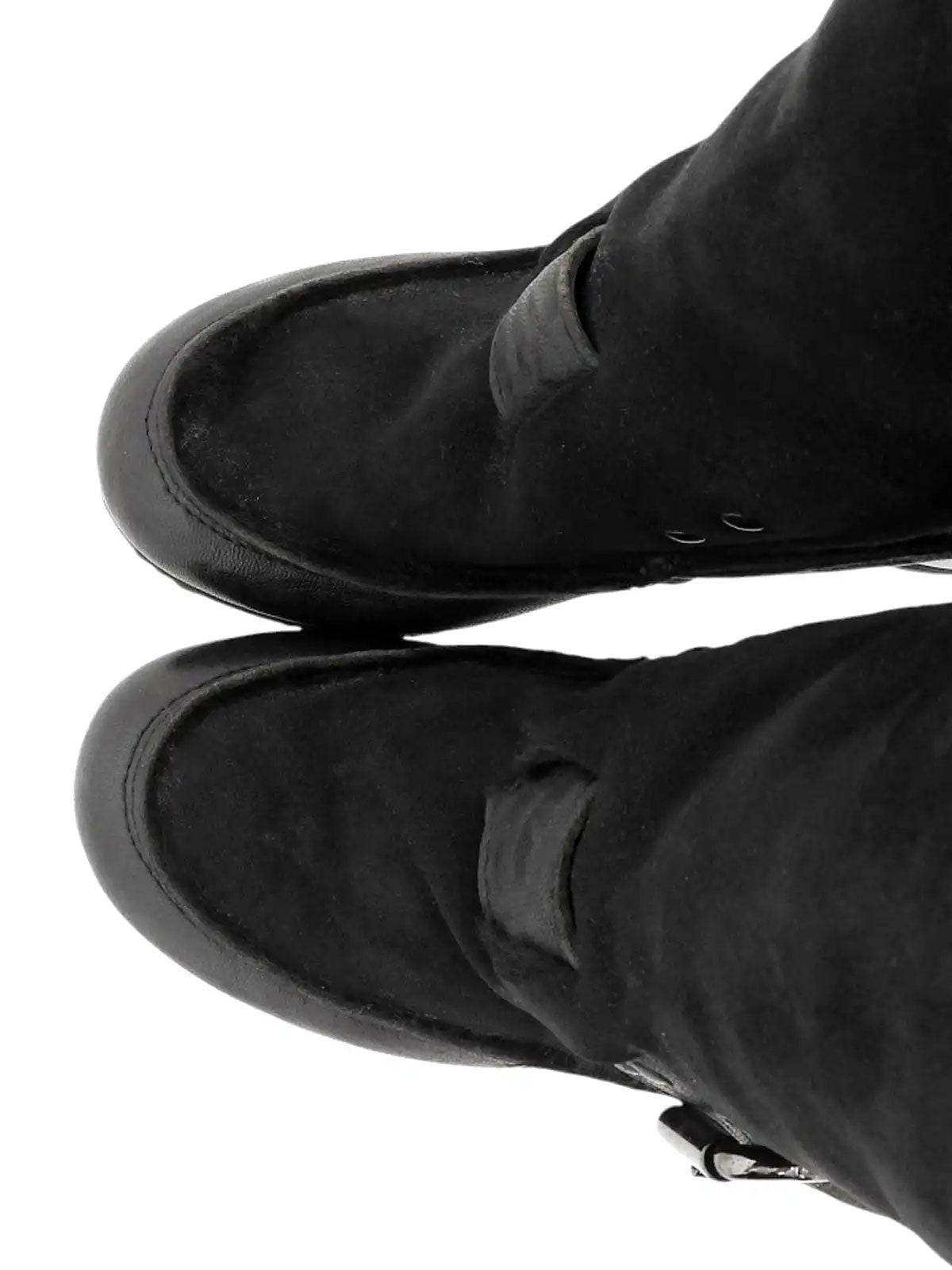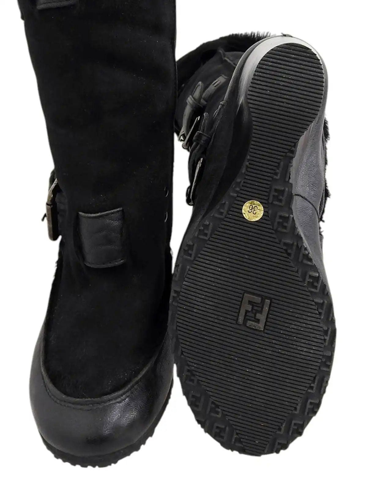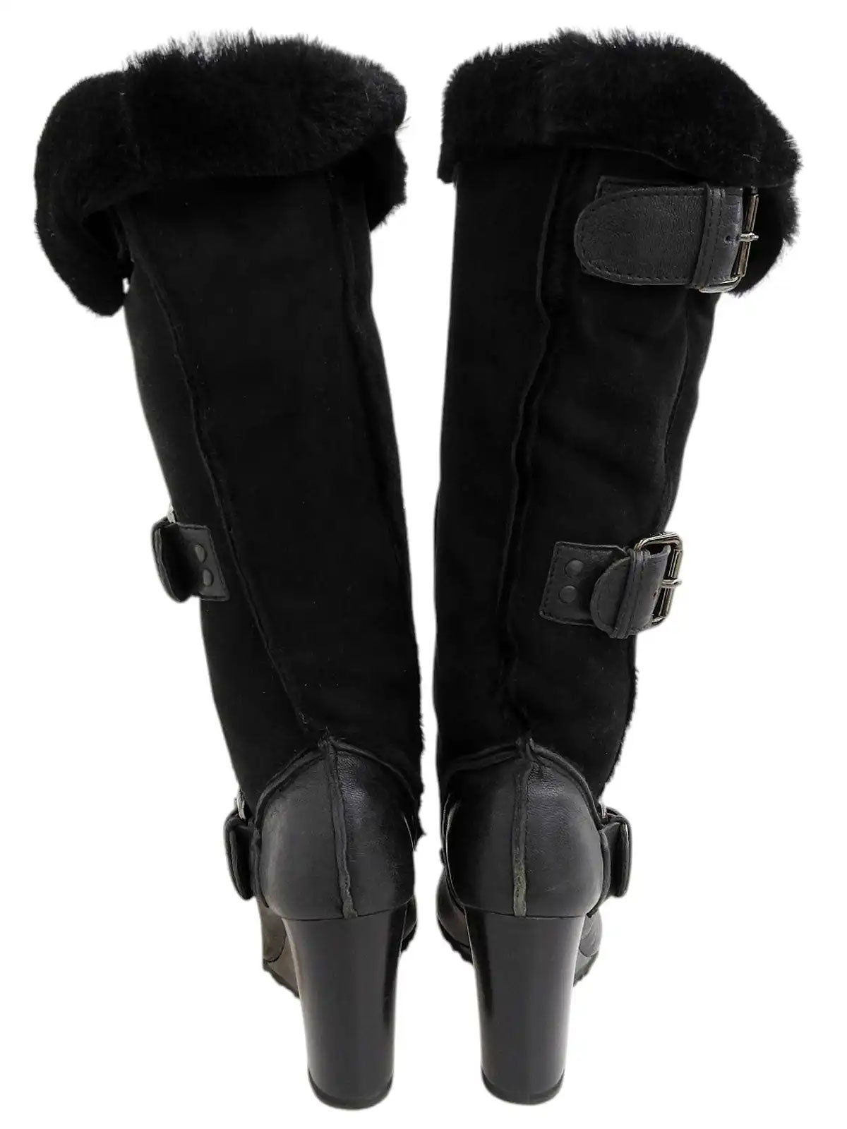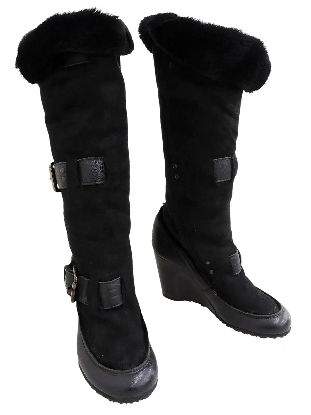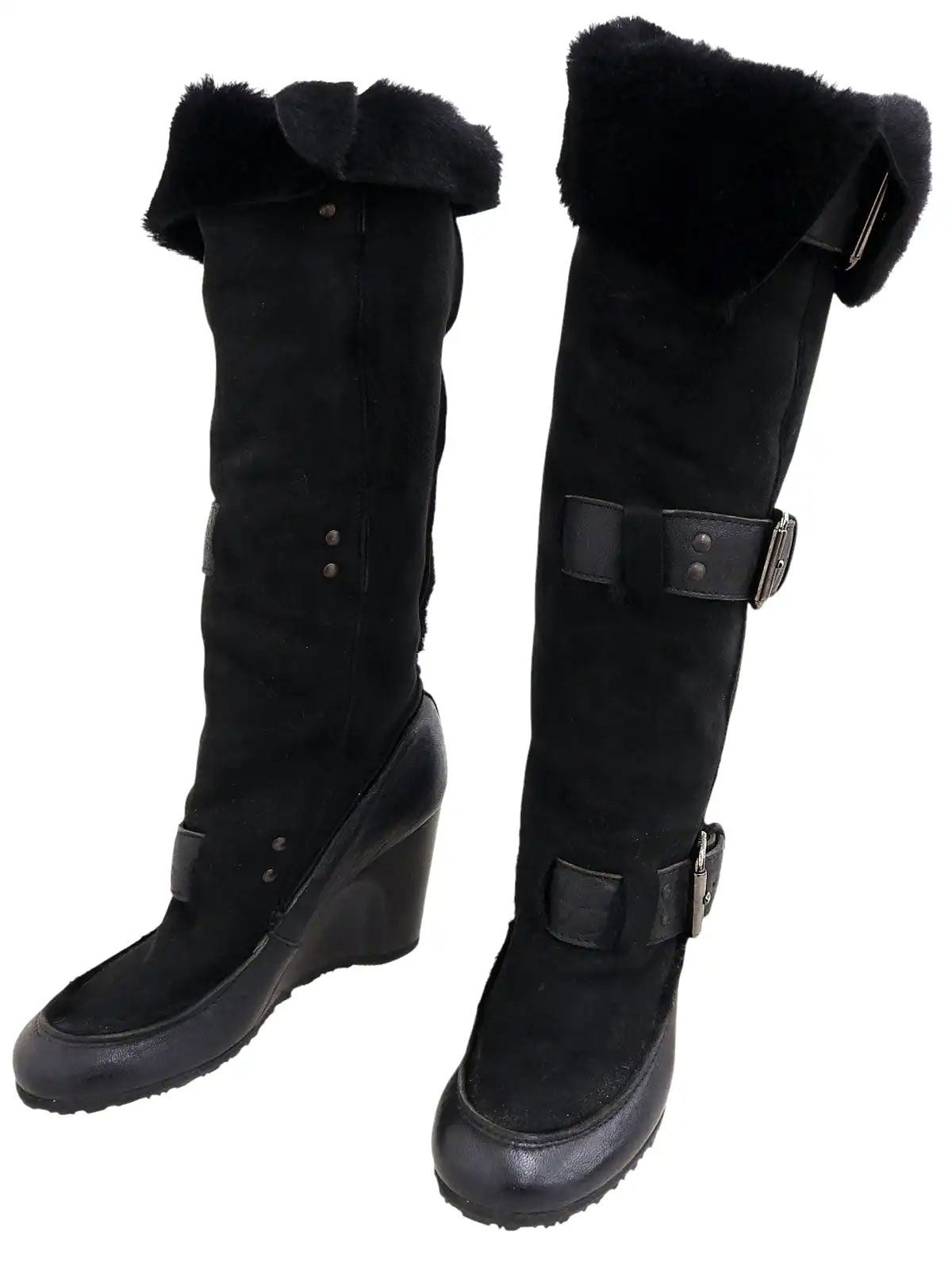 ムートンロゴバックルウェッジソールブーツ ブラック