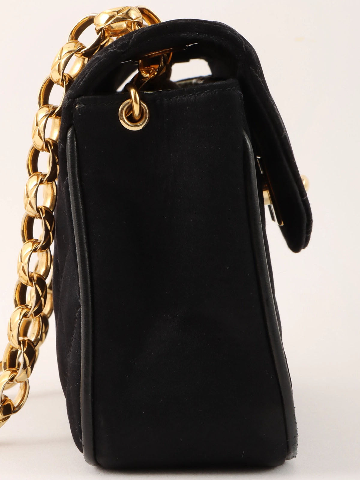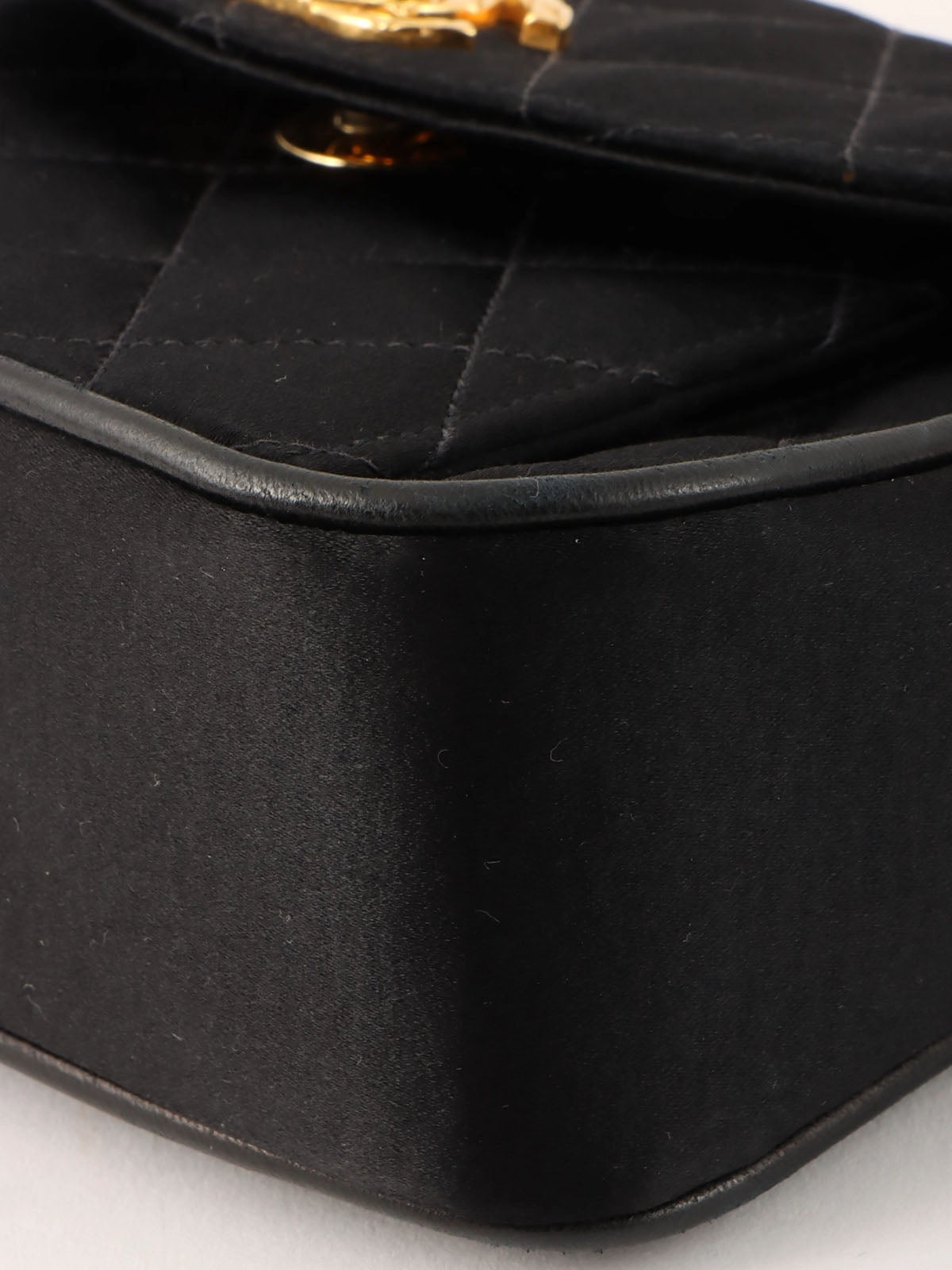 1992年頃製 シルクサテンCCターンロックビジューチェーンバッグミニ ブラック