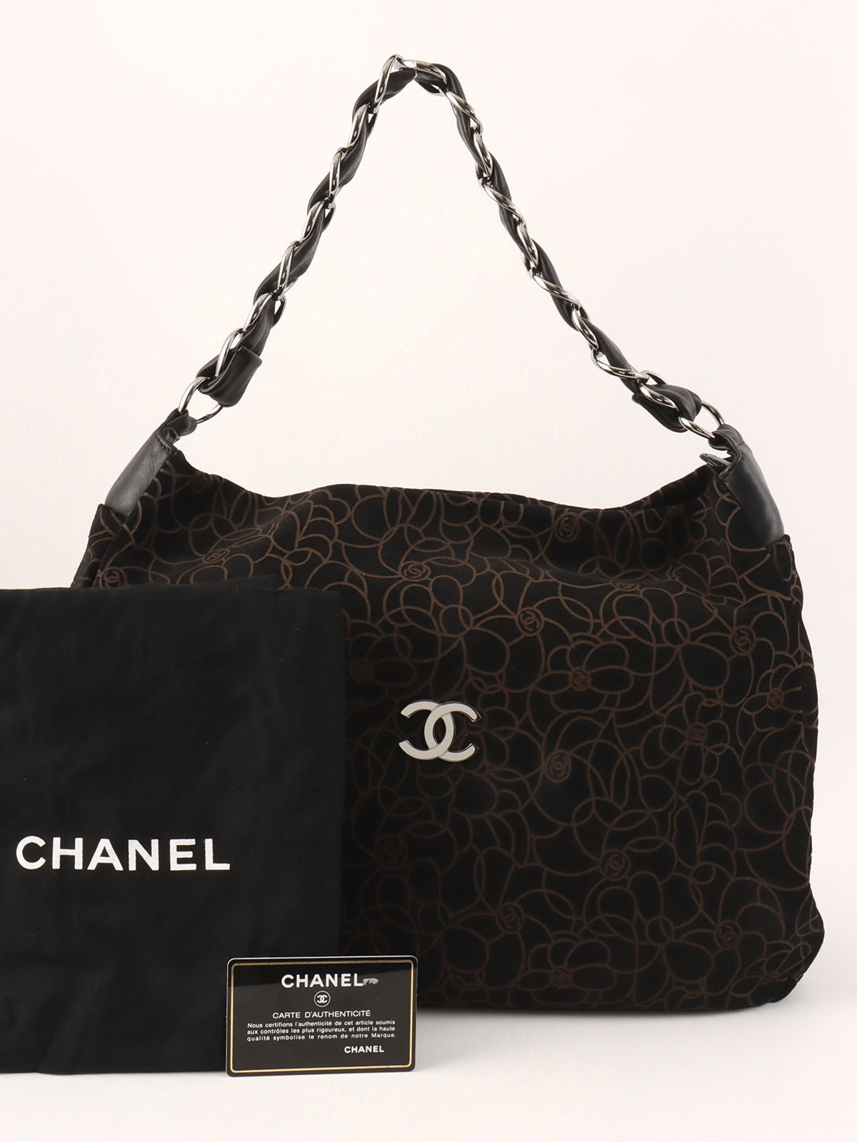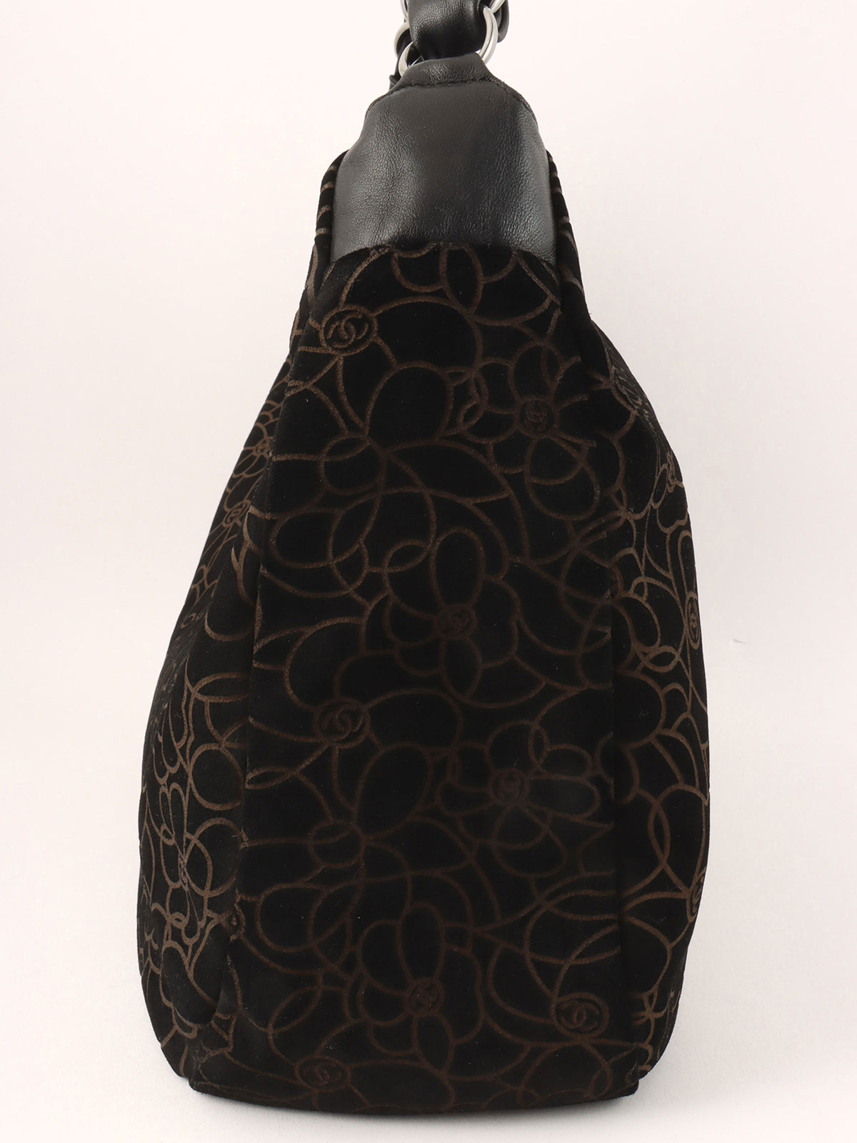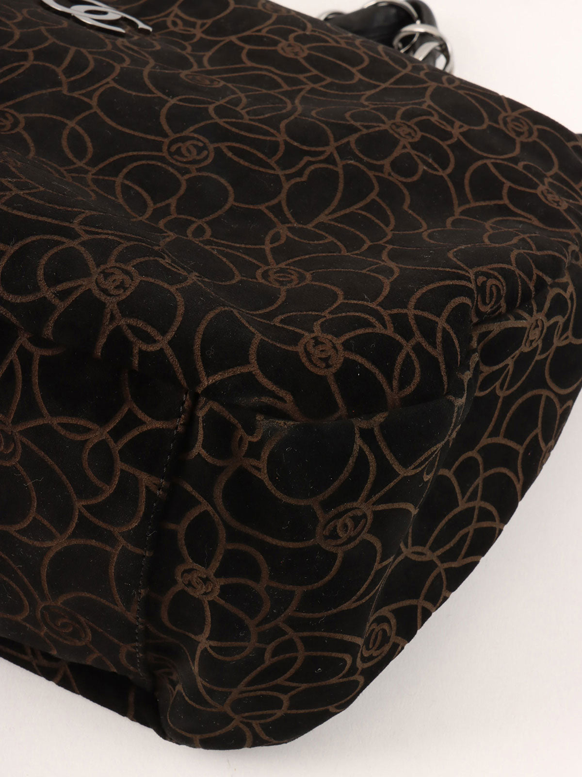 2004年頃製 スエードカメリアパターンCCマークプレートチェーンショルダーバッグ ブラック