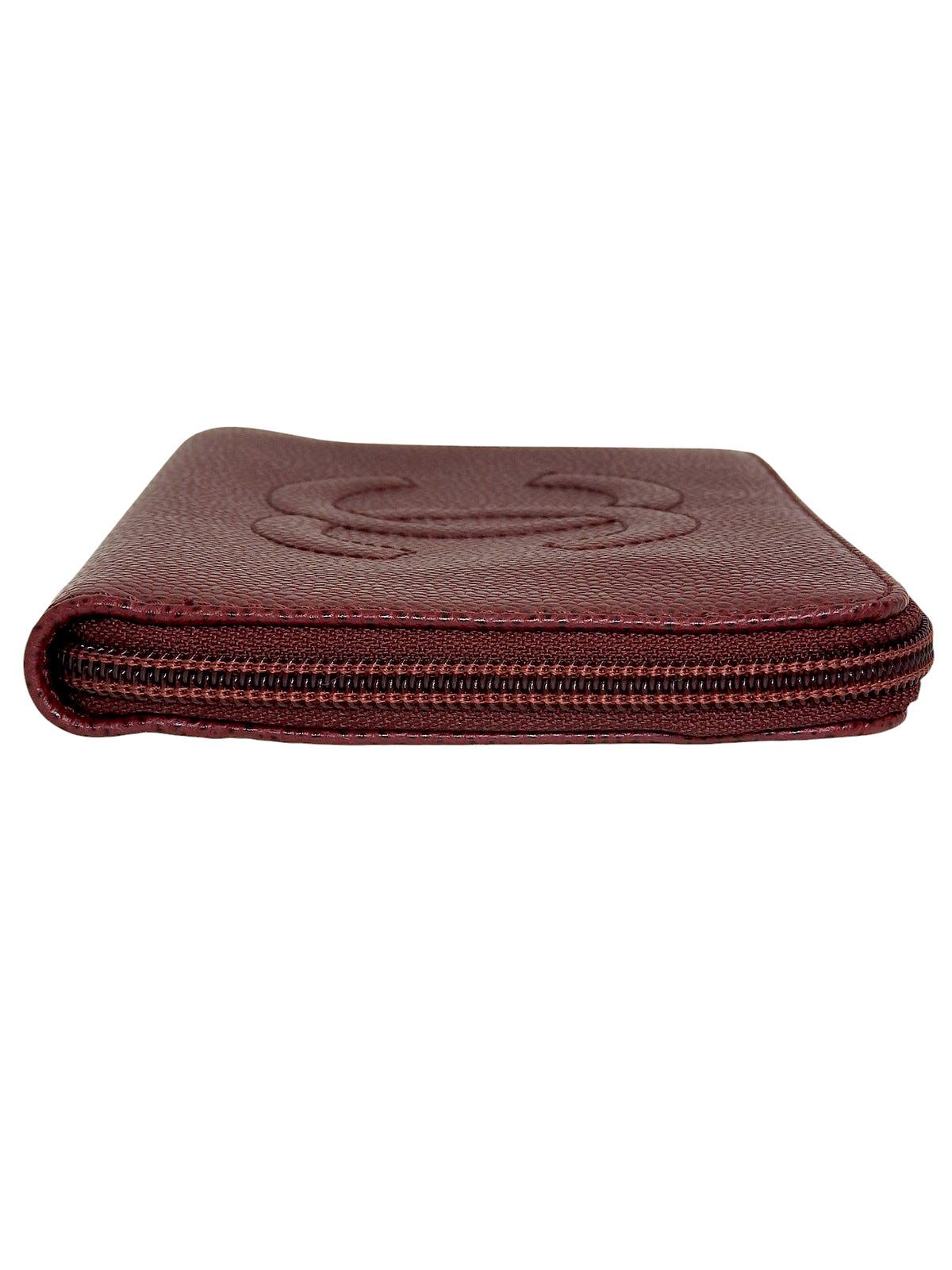 2000年頃製 キャビアスキンCCマークステッチジップロングウォレット ボルドー