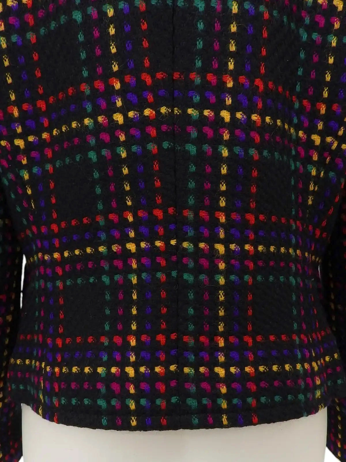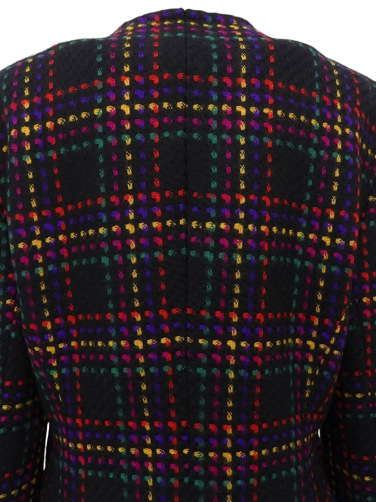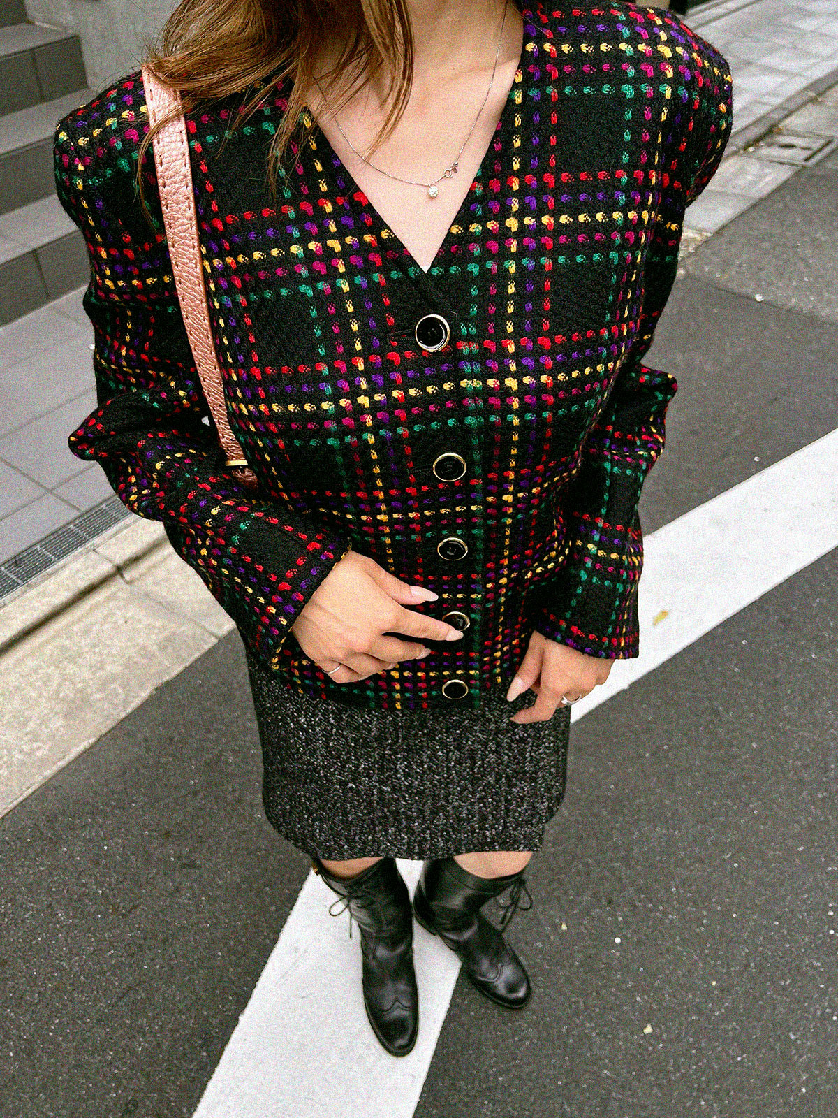 ウールチェックパターンノーカラージャケット ブラック/マルチ