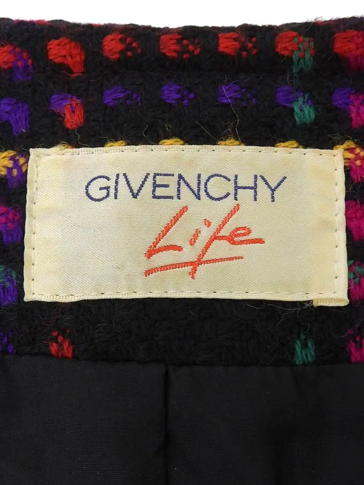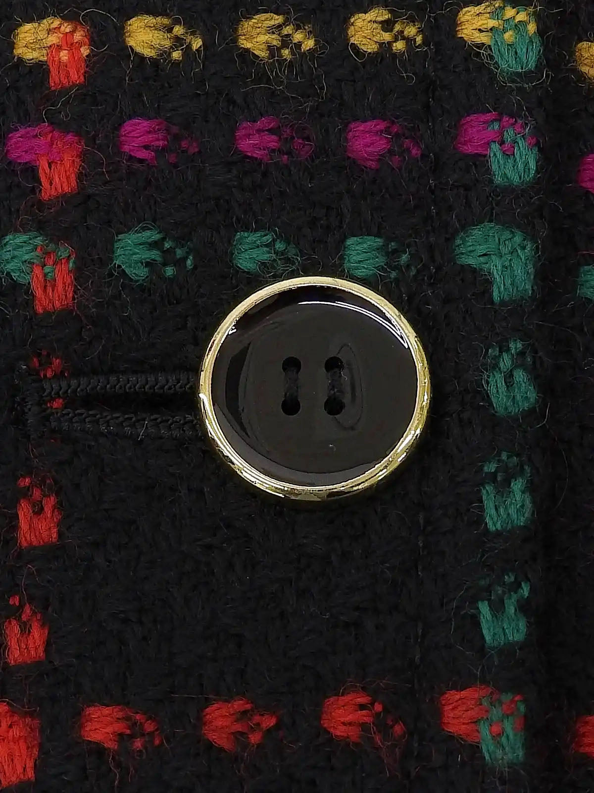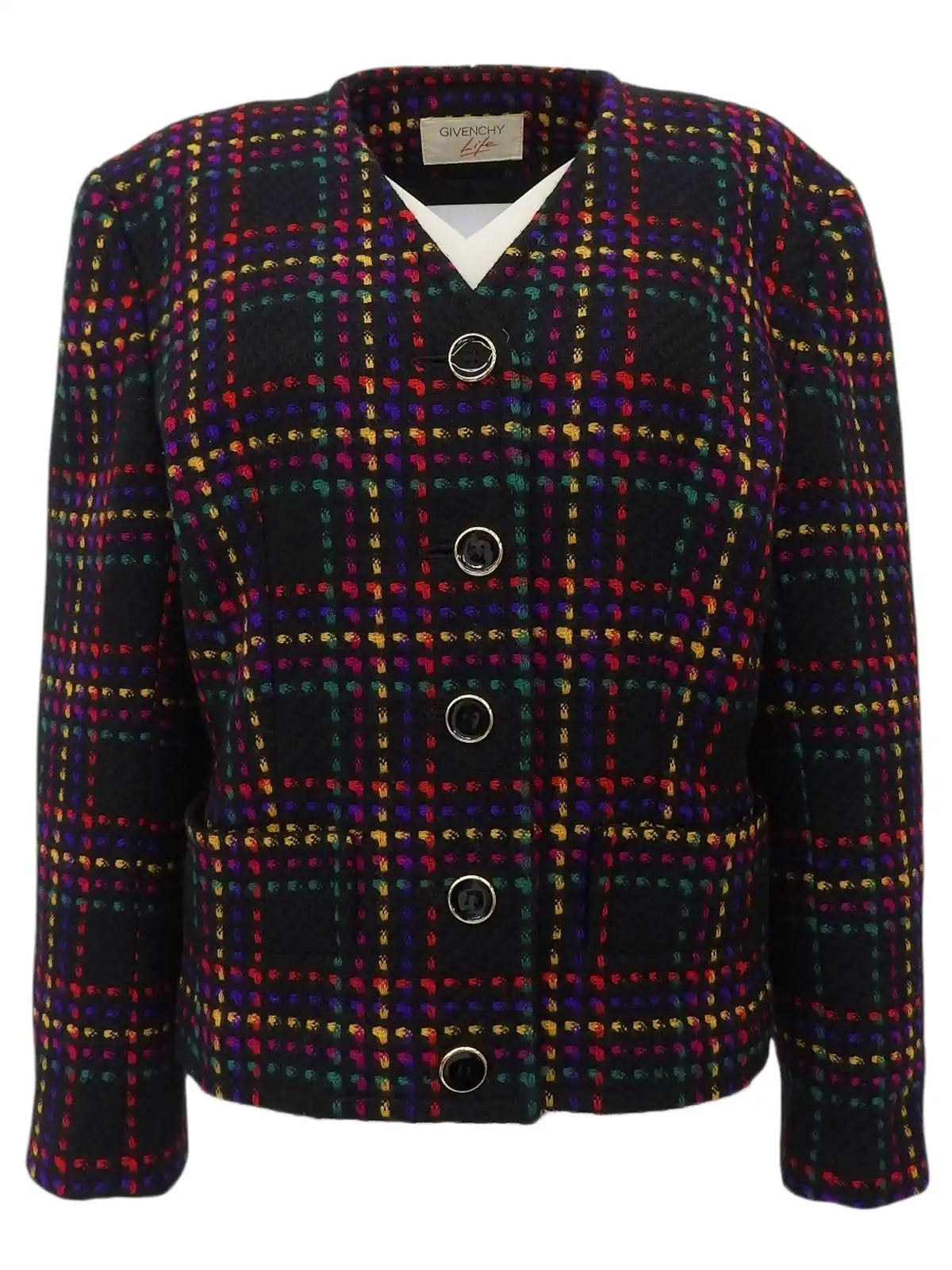 ウールチェックパターンノーカラージャケット ブラック/マルチ