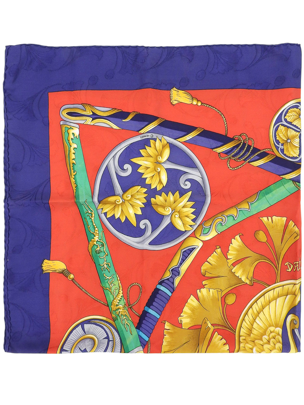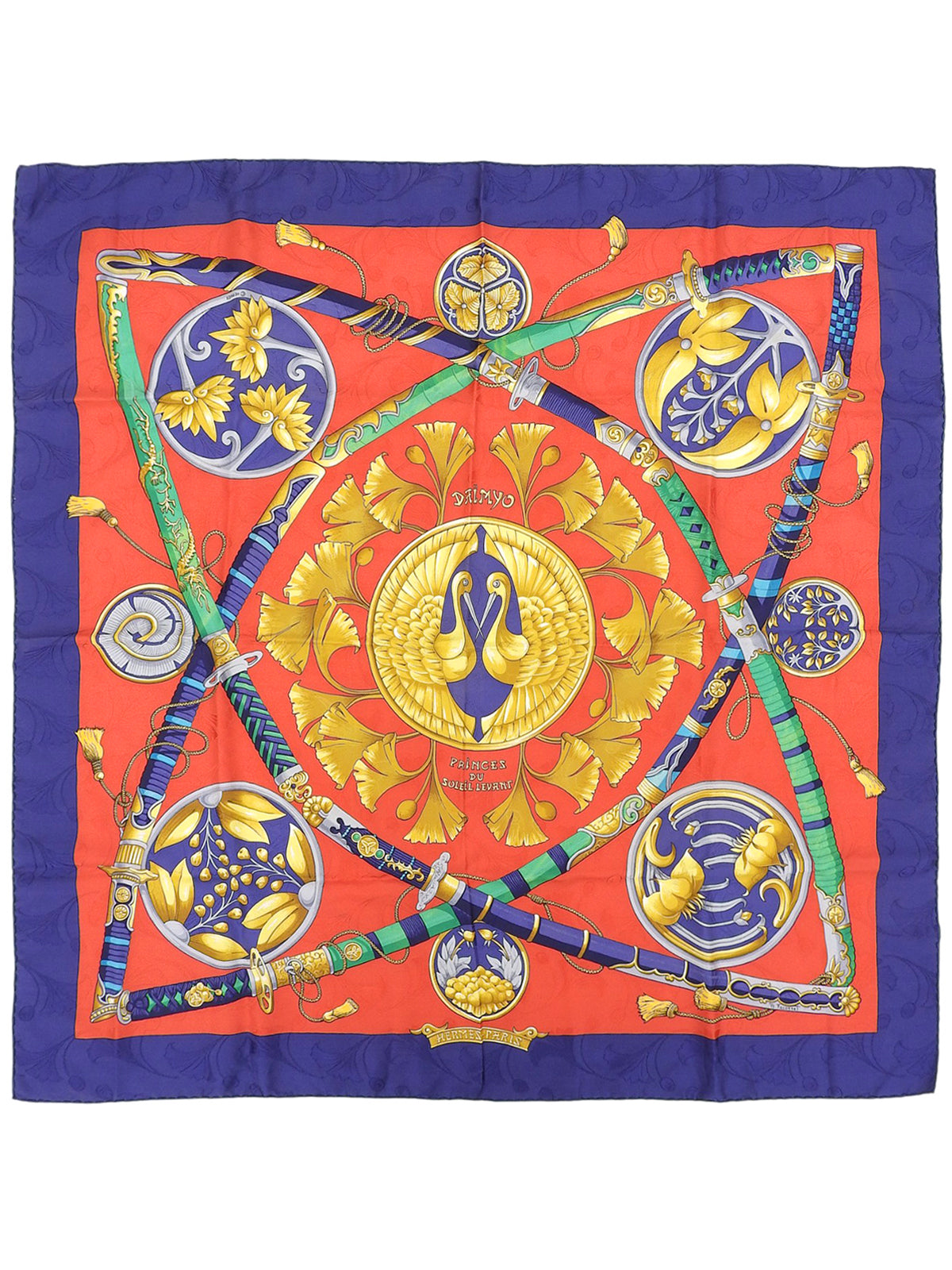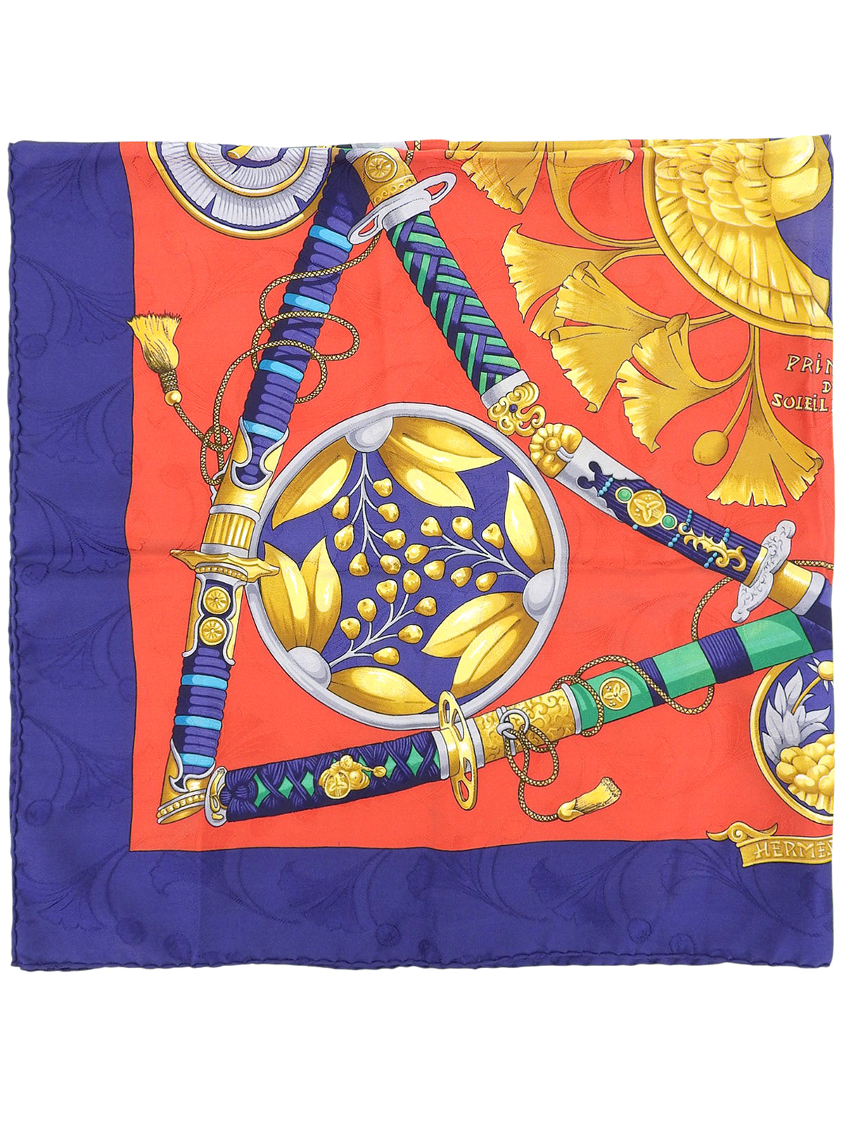 カレ90 Princes Du Soleil Levantパターンスカーフ レッド/ネイビー/マルチ