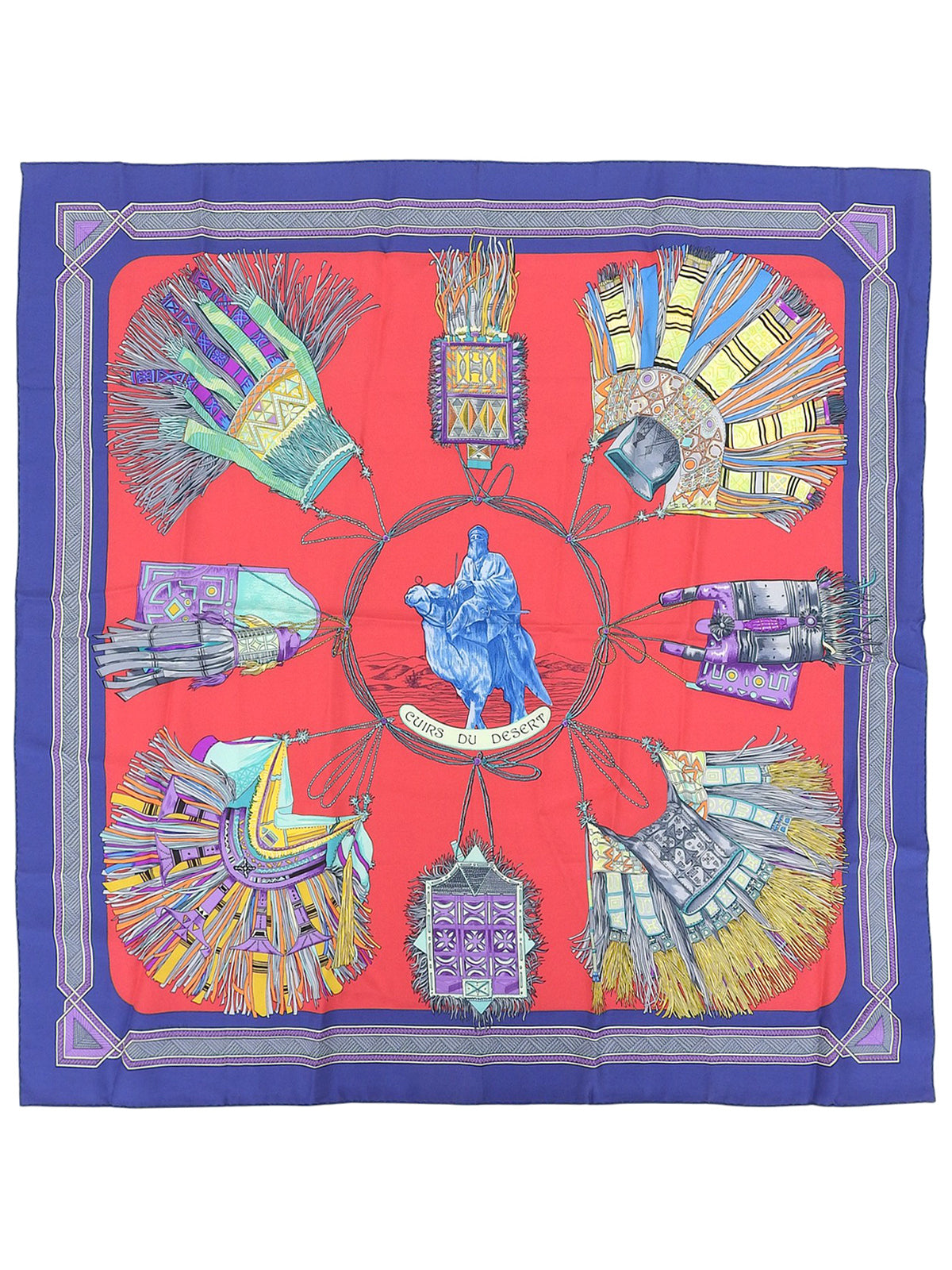 カレ90 cuirs du desertパターンスカーフ レッド/マルチ