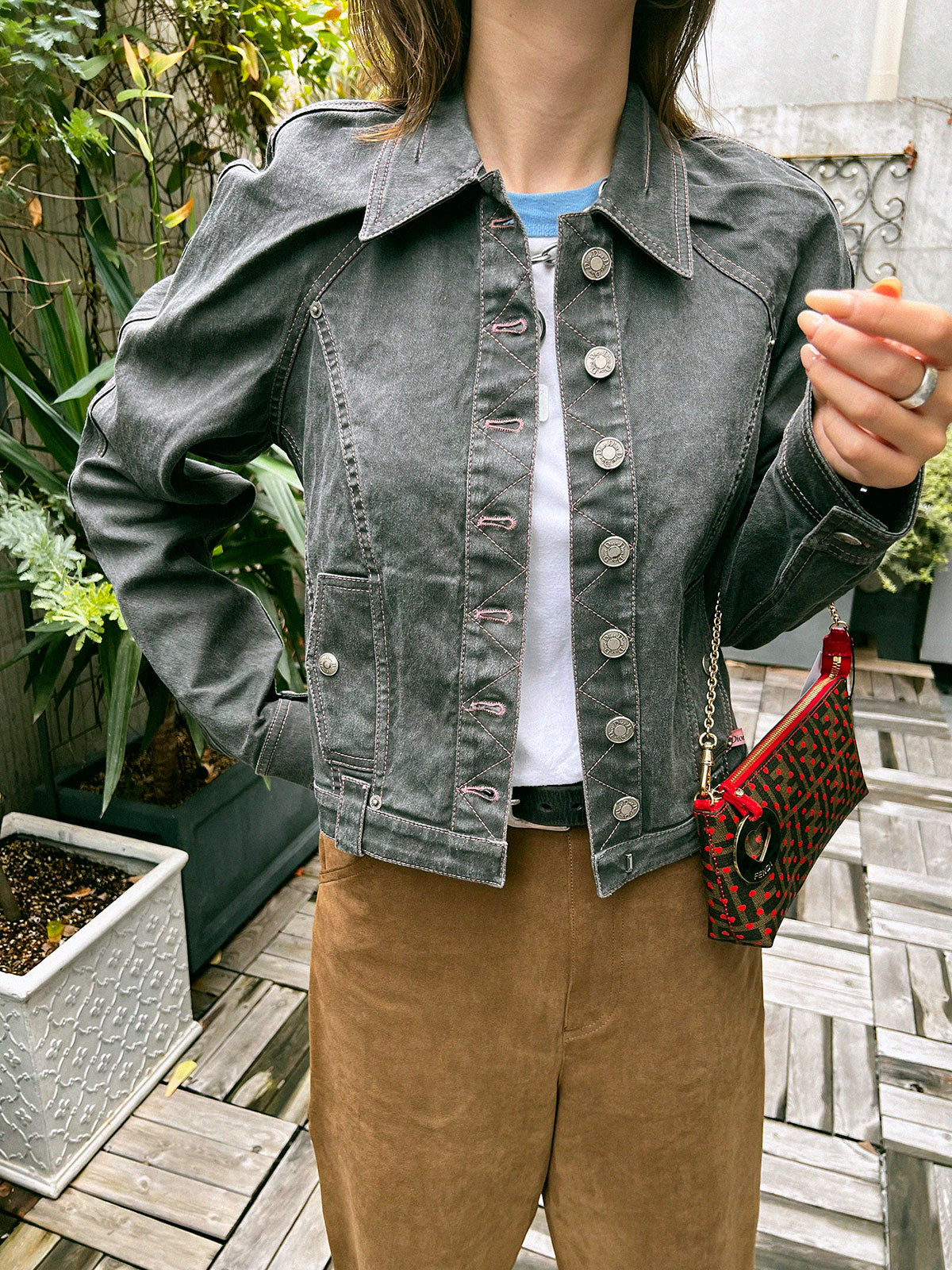 デニムロゴボタンジャケット グレー