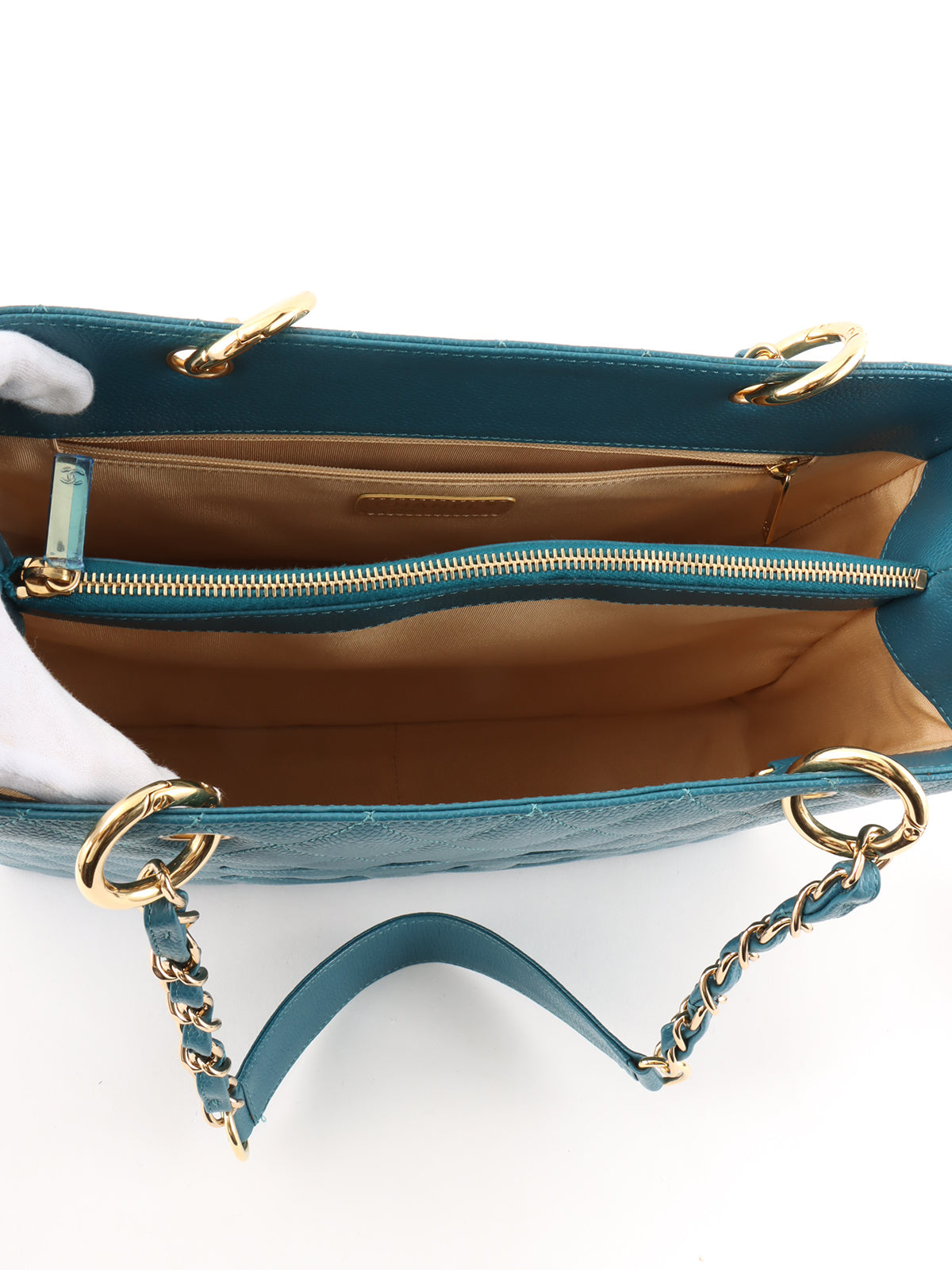 2004年頃製 キャビアスキンCCマークステッチチェーントートバッグ インディゴブルー