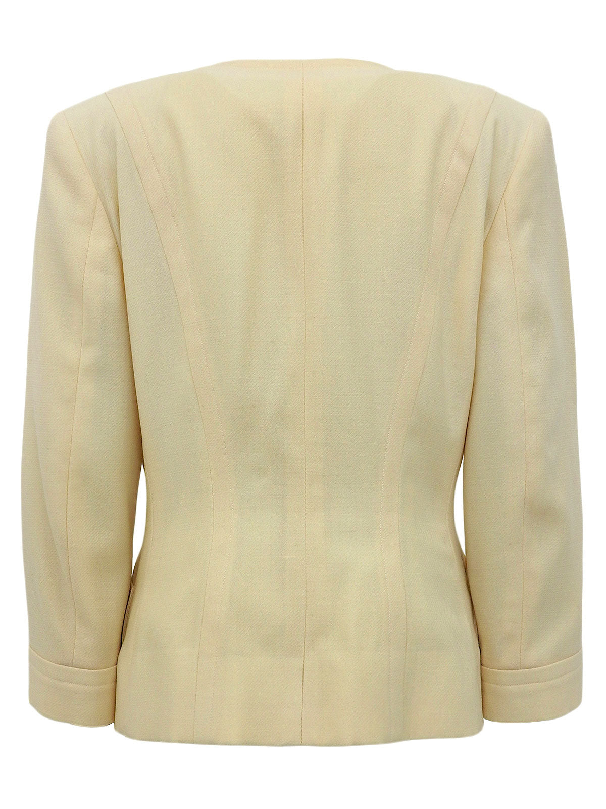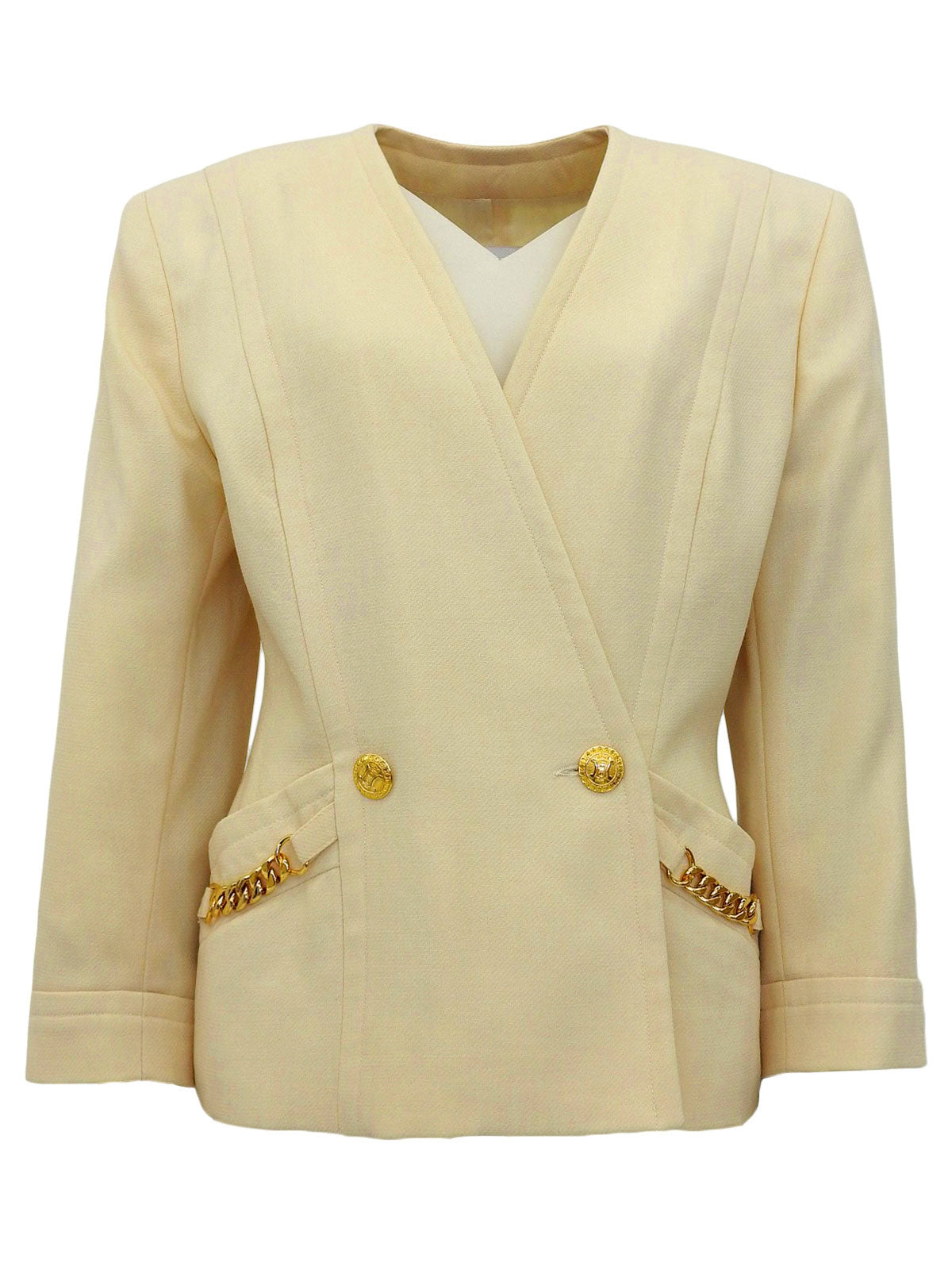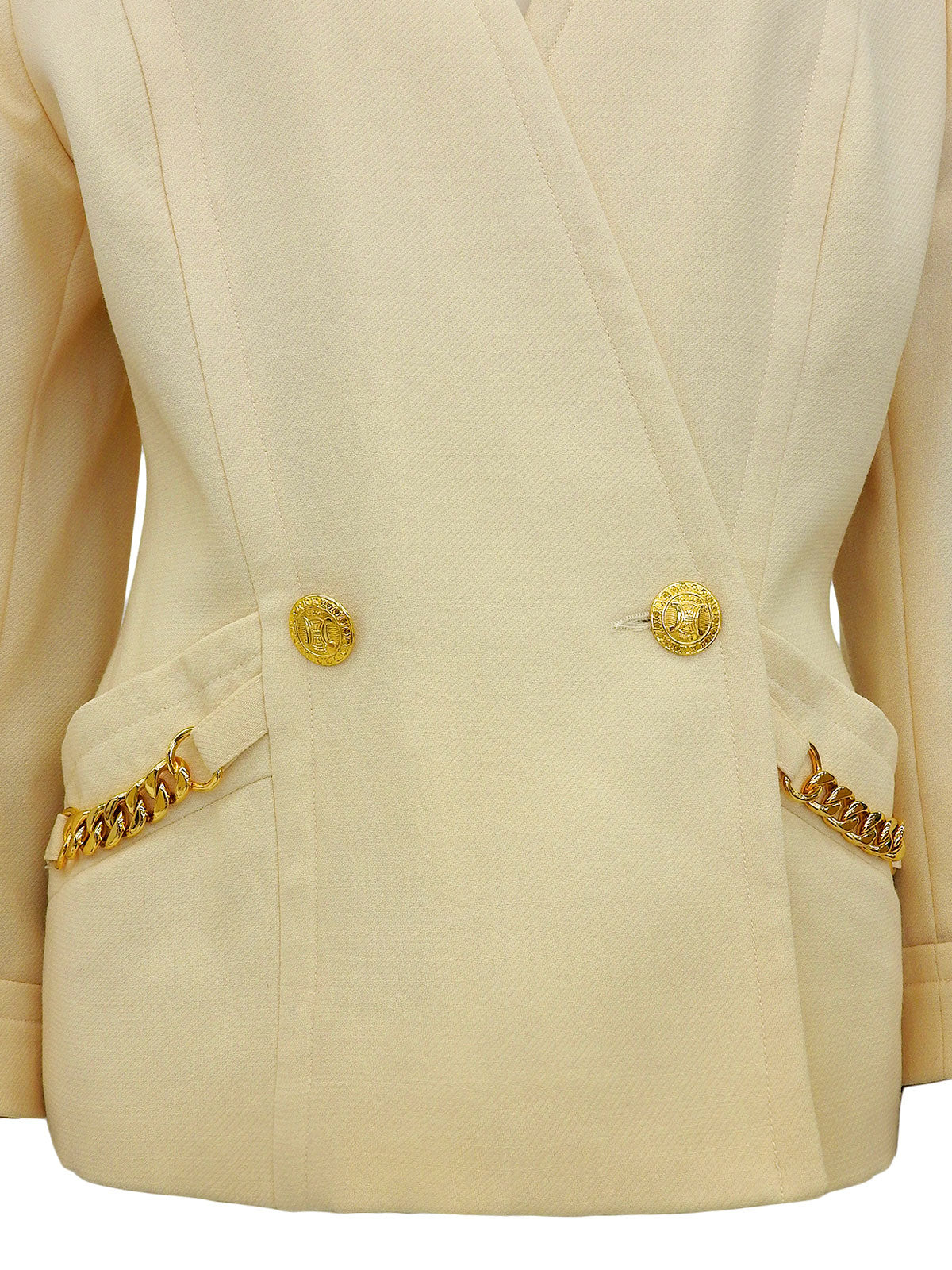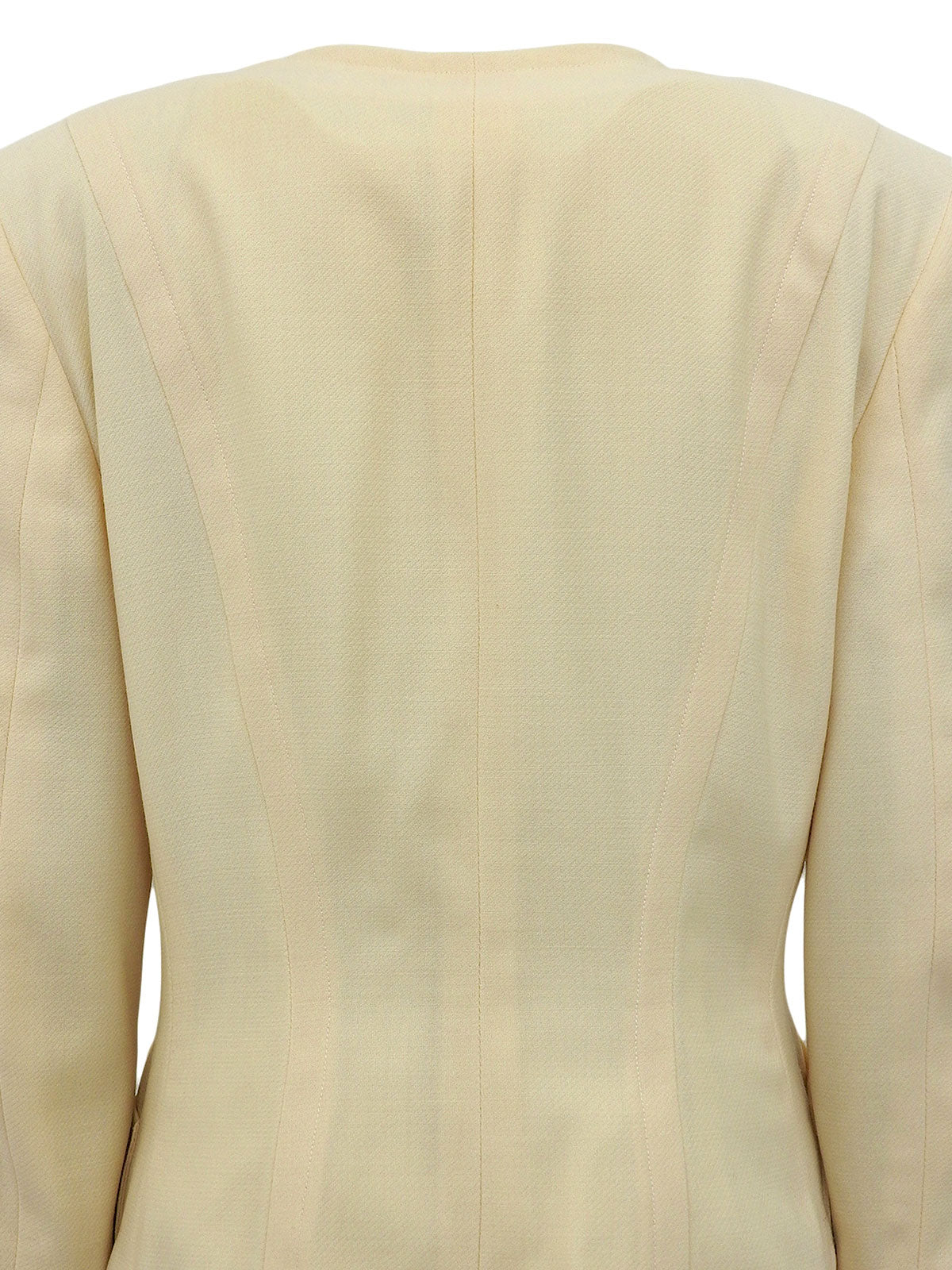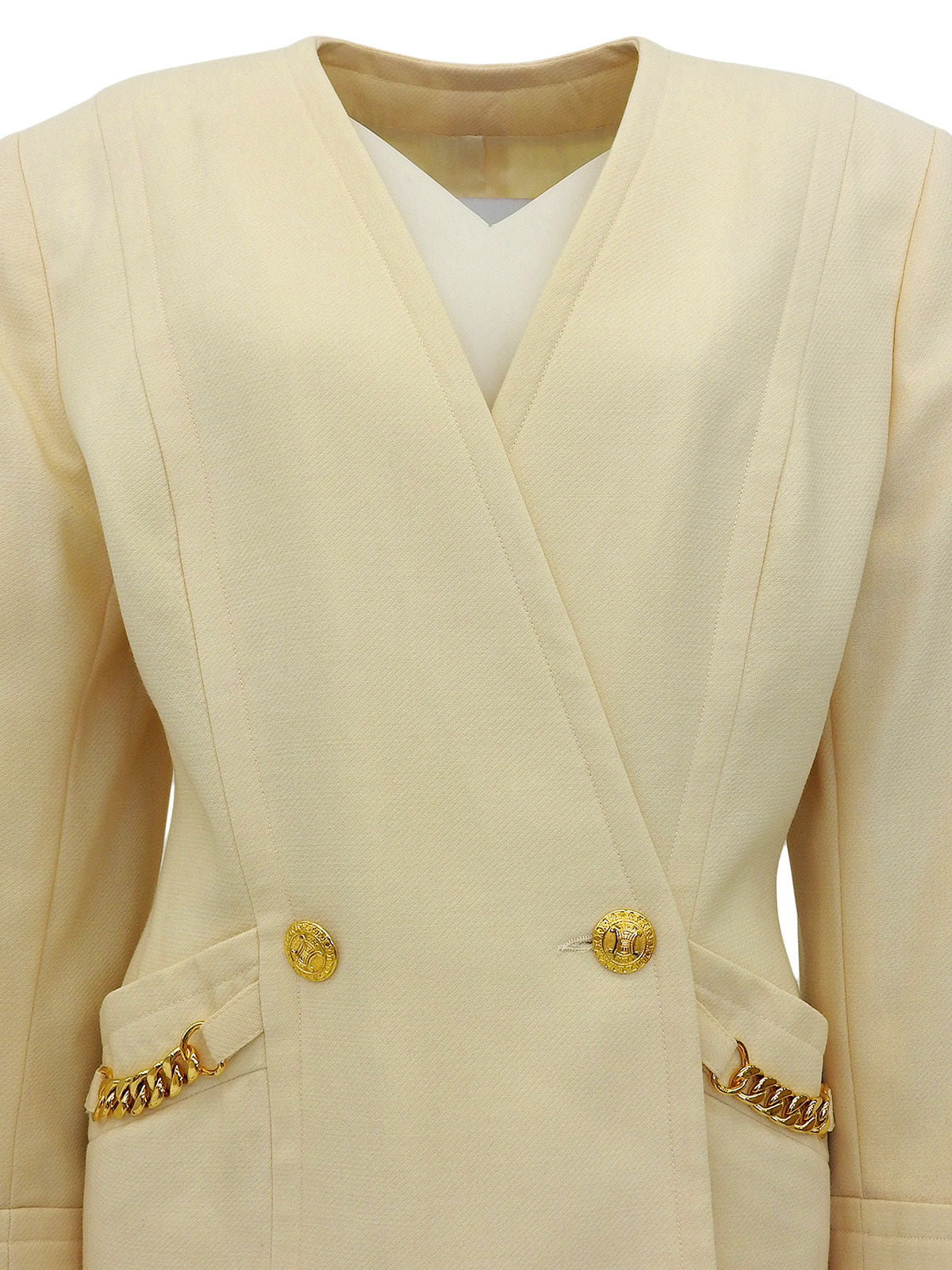 マカダムボタンチェーンデザインノーカラージャケット クリームイエロー