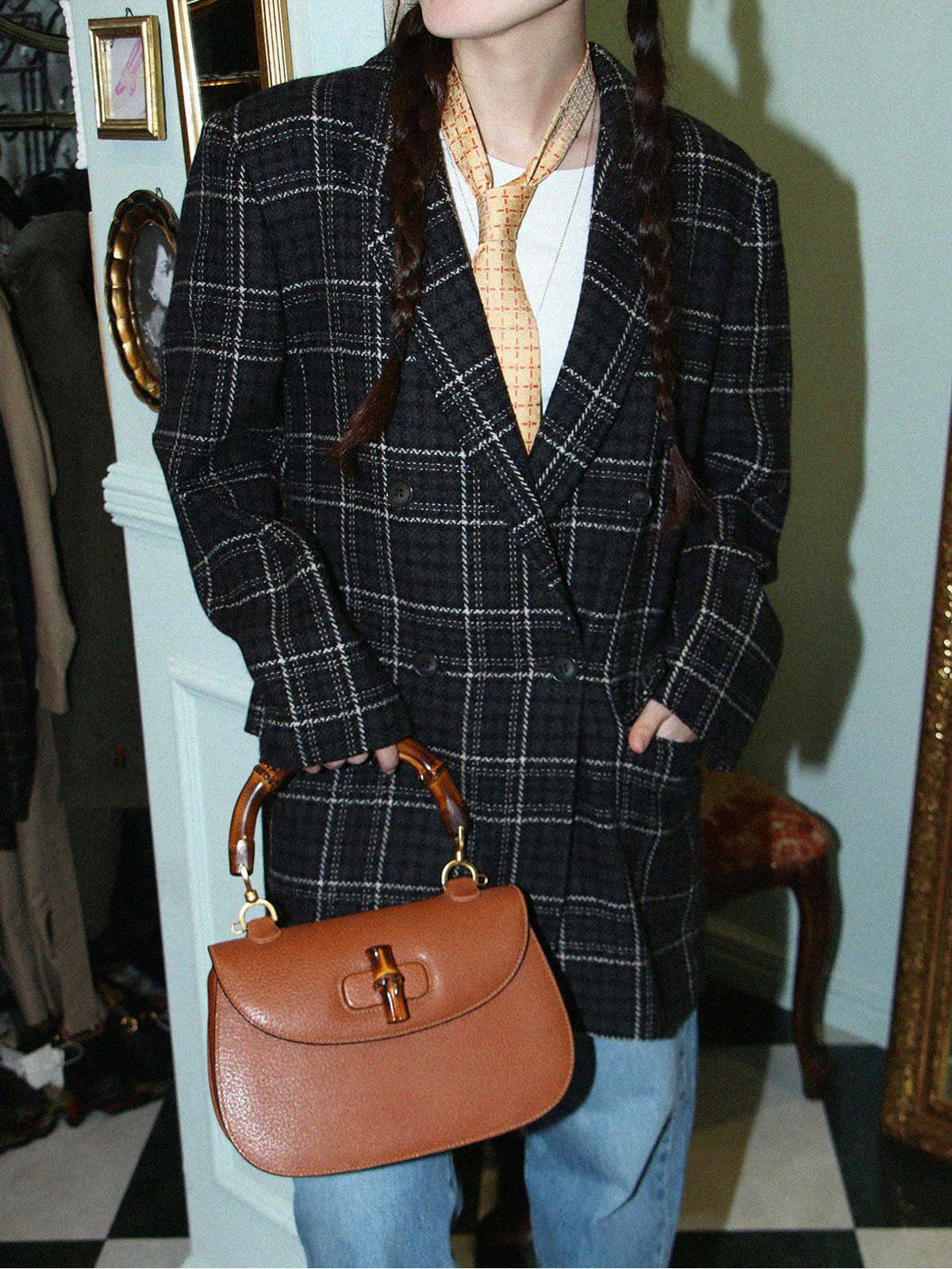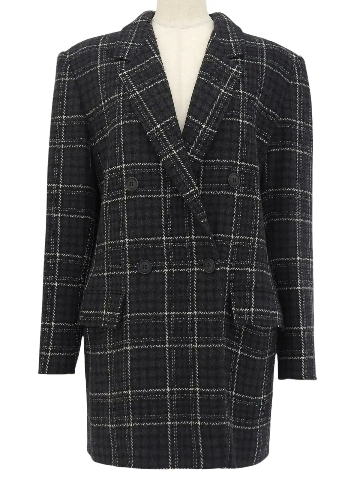 チェックパターンダブルブレストジャケット チャコールグレー/ホワイト/ブラック